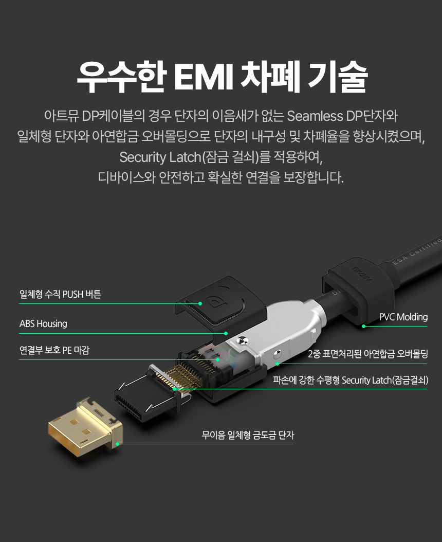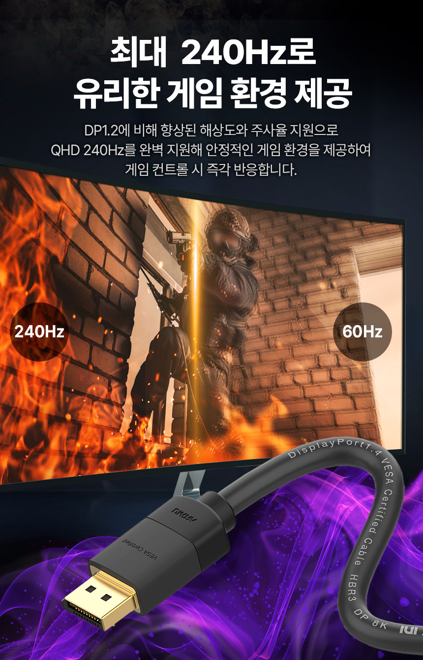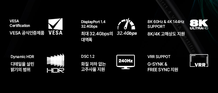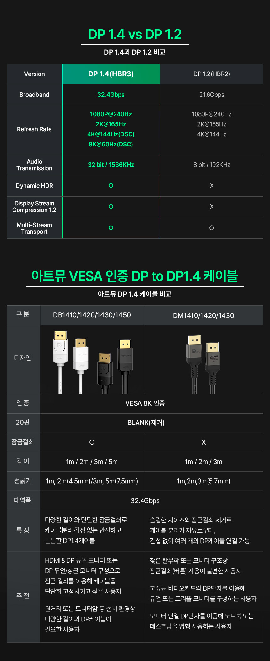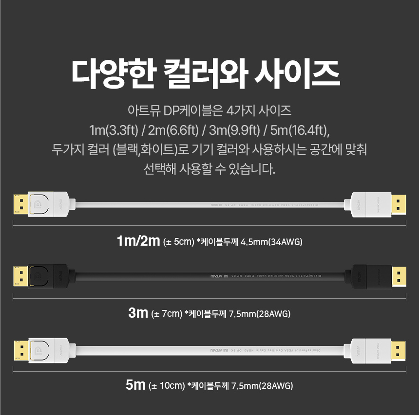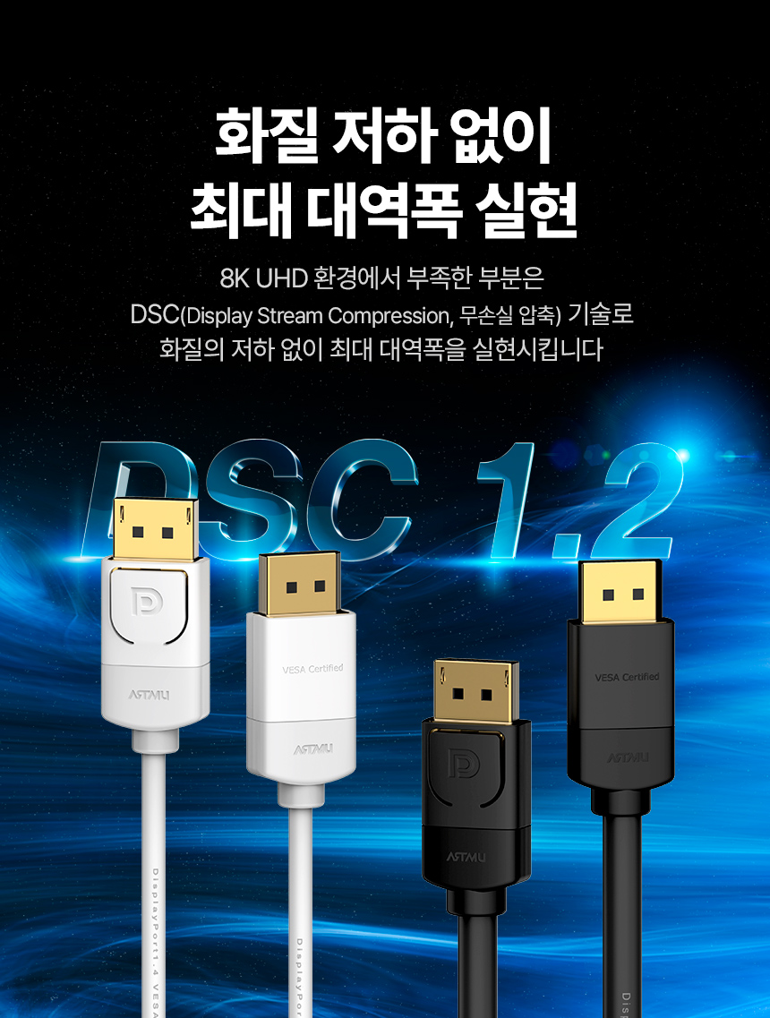 VESA 인증 DP to DP 1.4 8K DisplayPort 케이블 버튼 3m