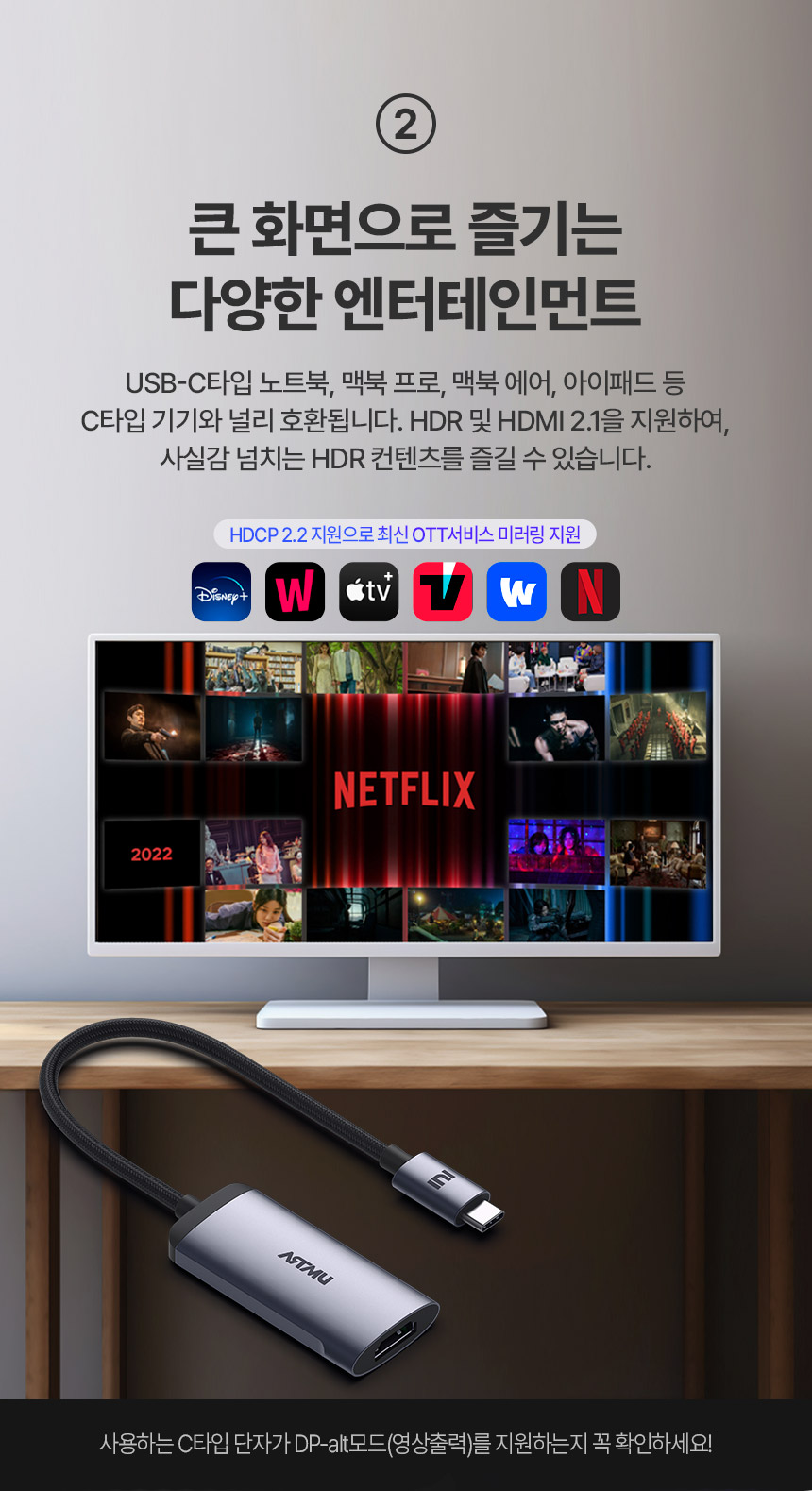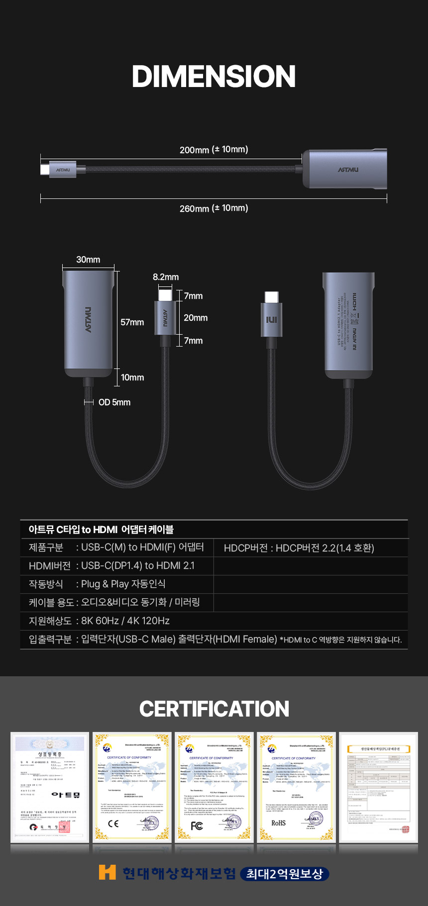 C타입 to HDMI2.1 미러링 HDR 어댑터 케이블