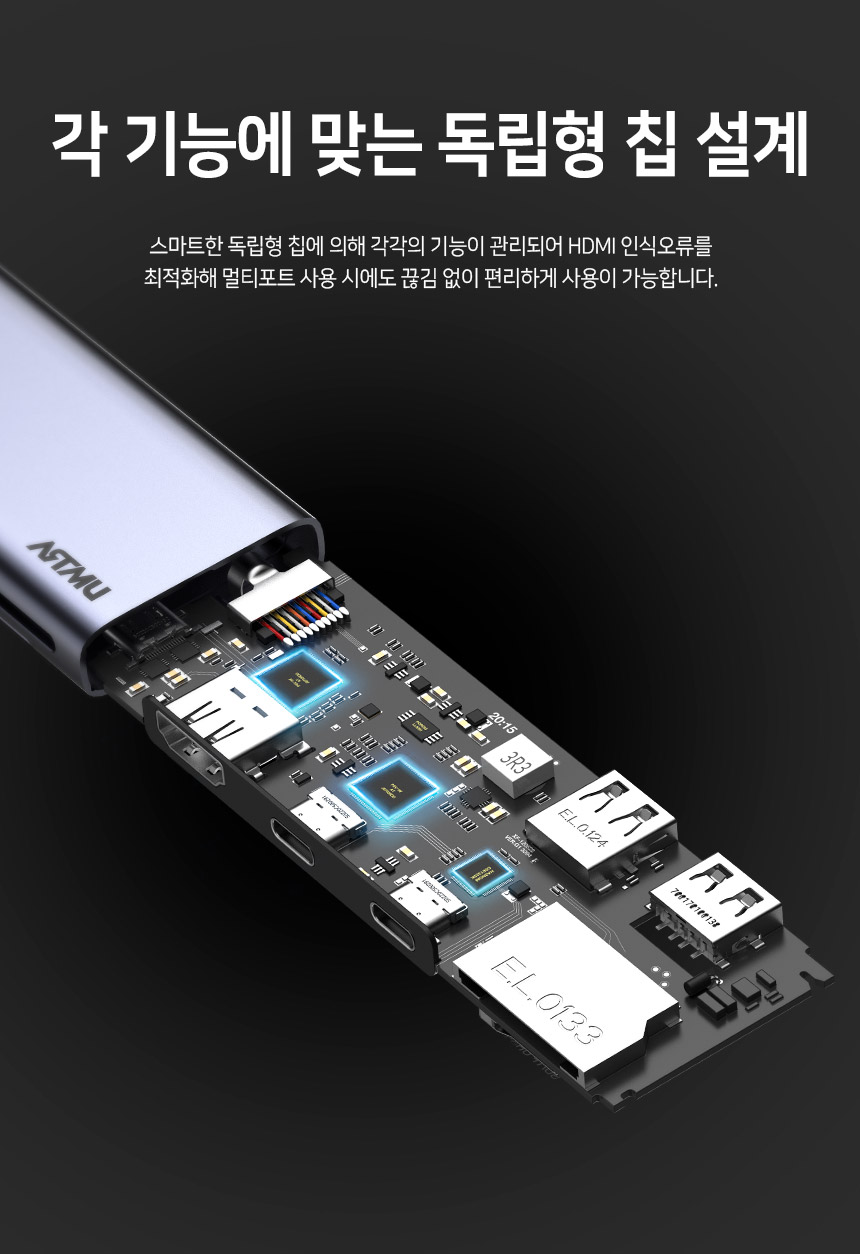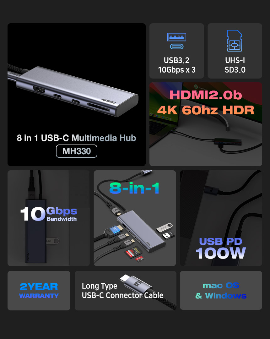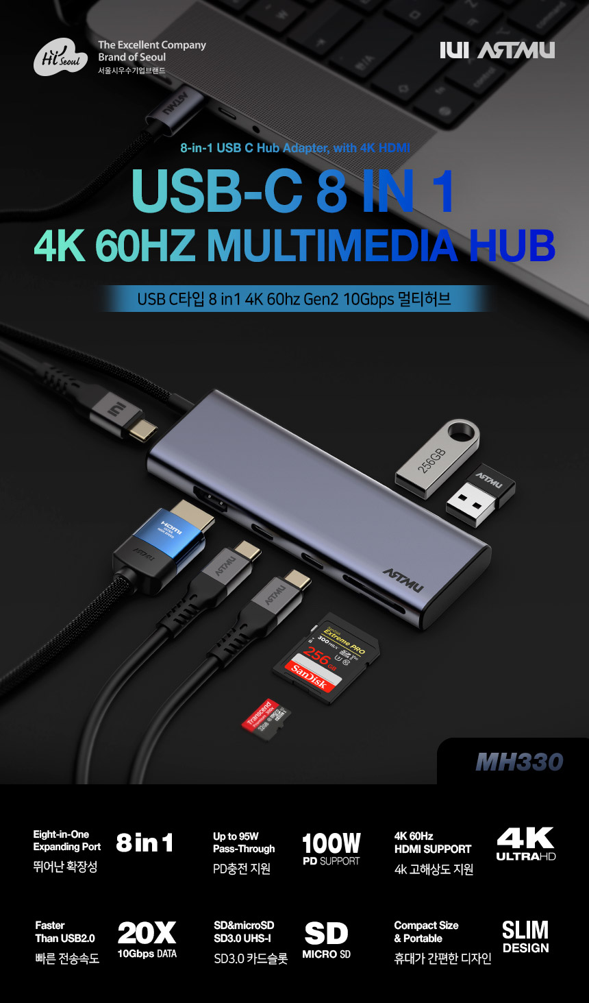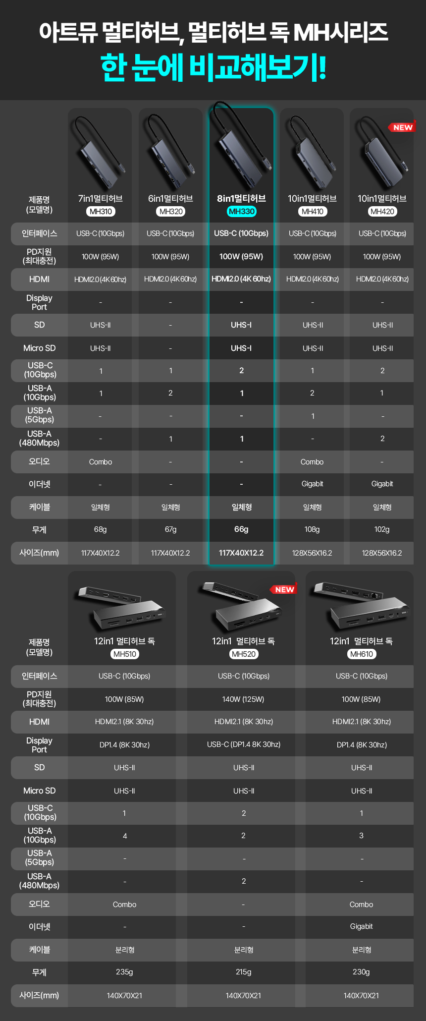 아트박스아트뮤 USB C타입 8in1 4K 60hz Gen2 10Gbps 멀티 허브 MH330