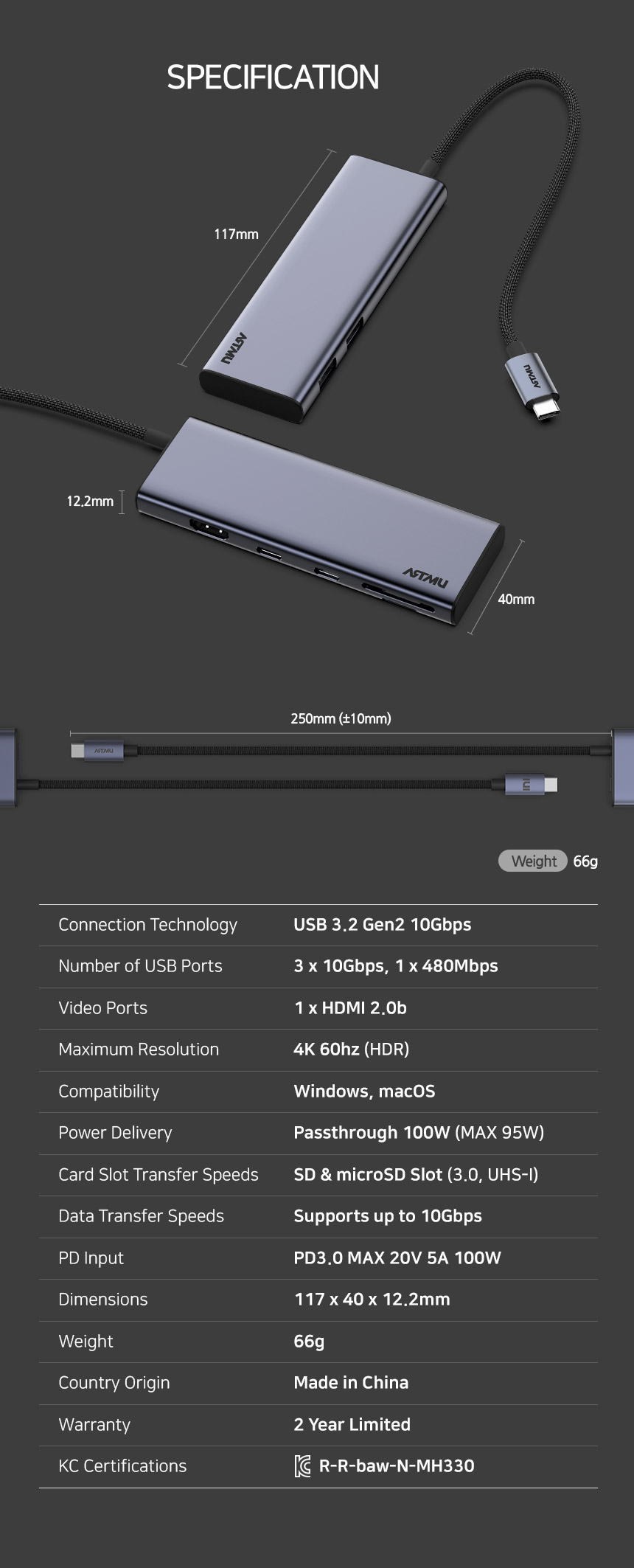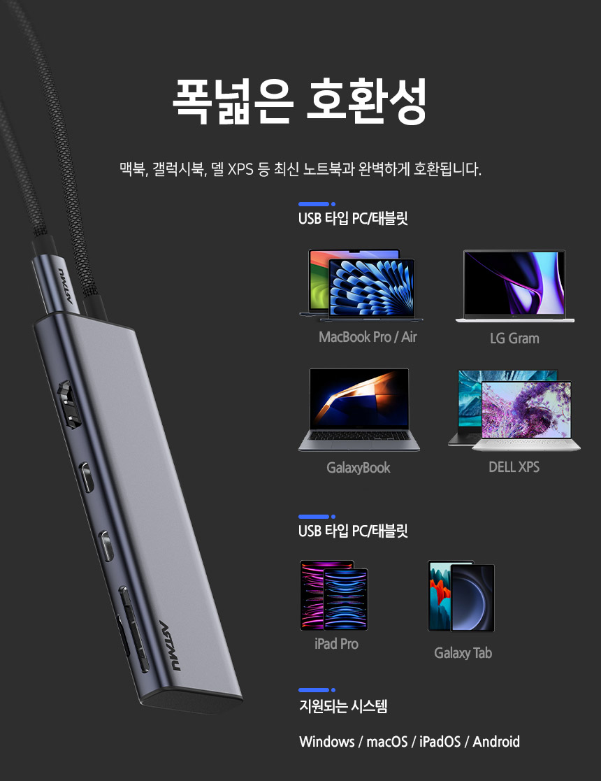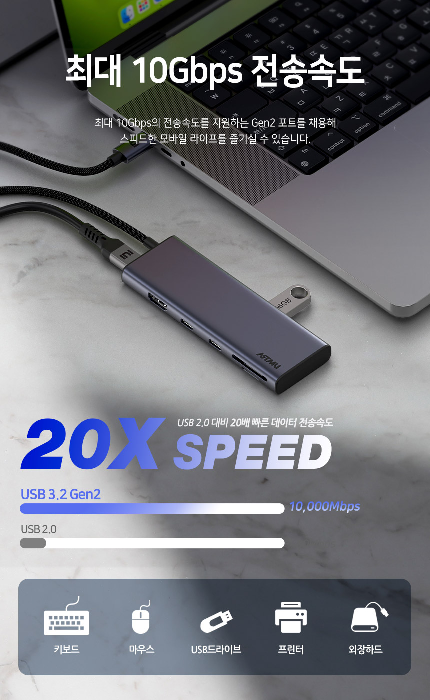 아트박스아트뮤 USB C타입 8in1 4K 60hz Gen2 10Gbps 멀티 허브 MH330