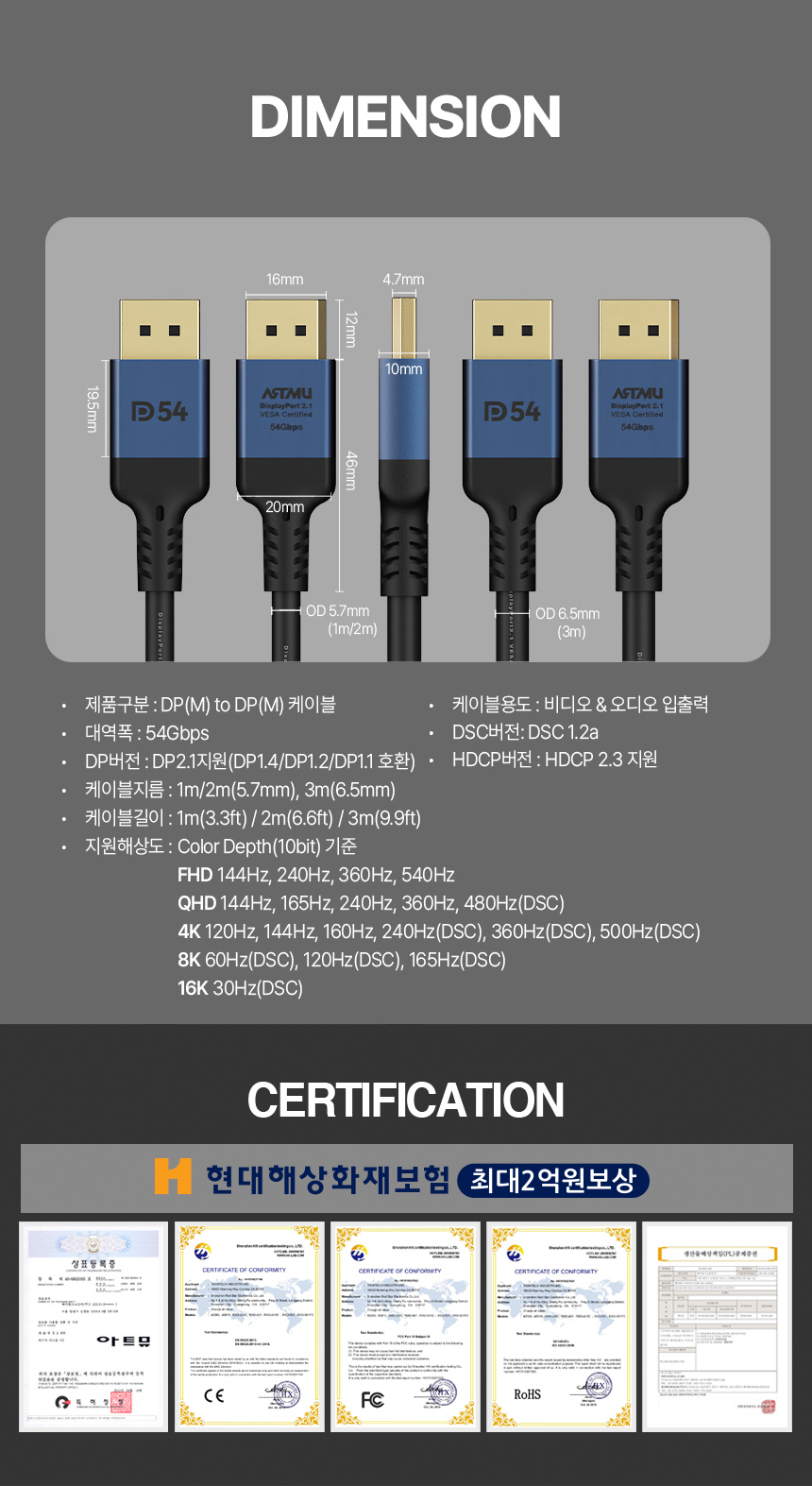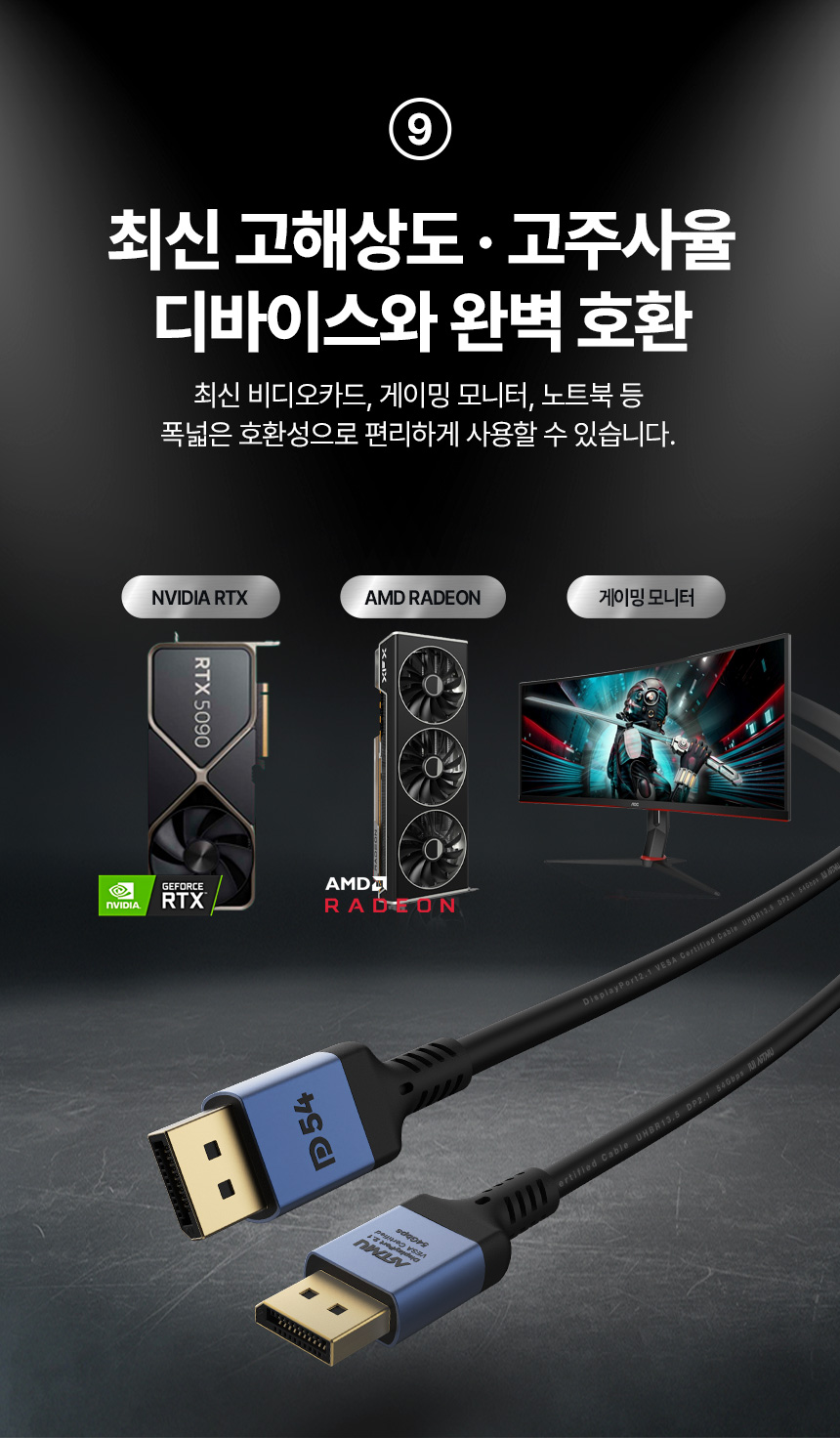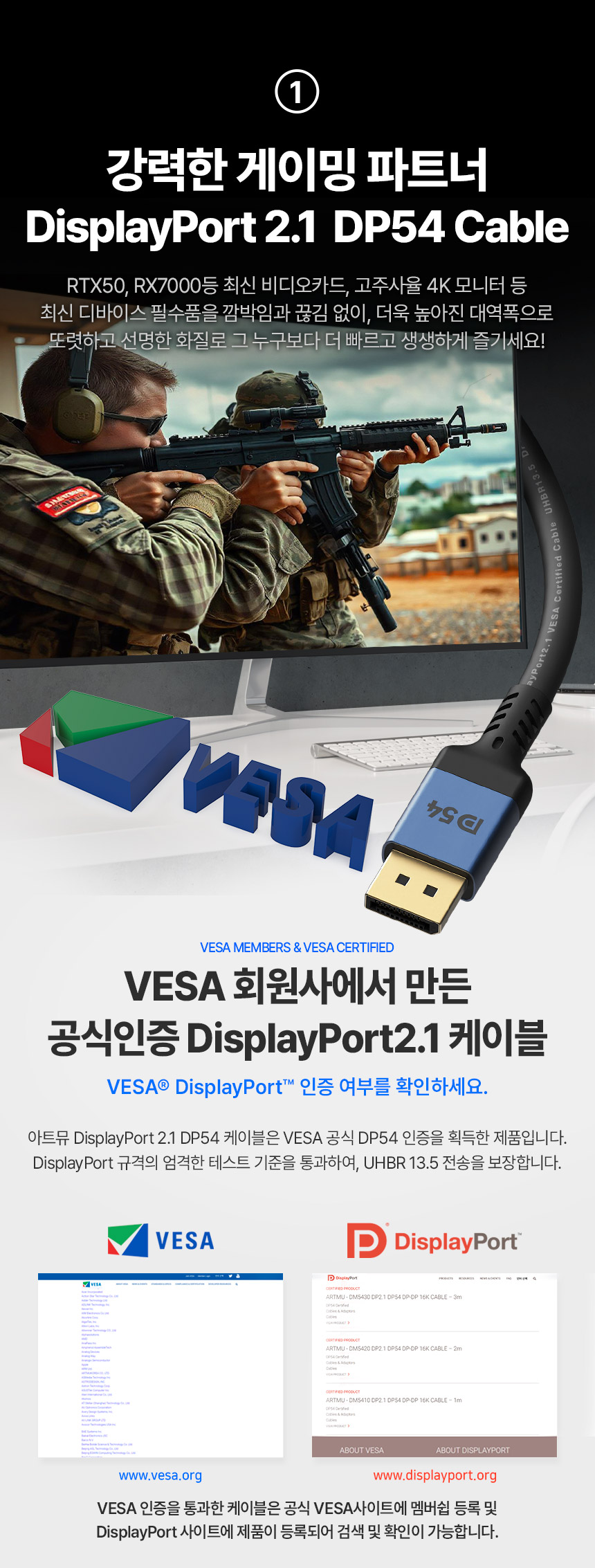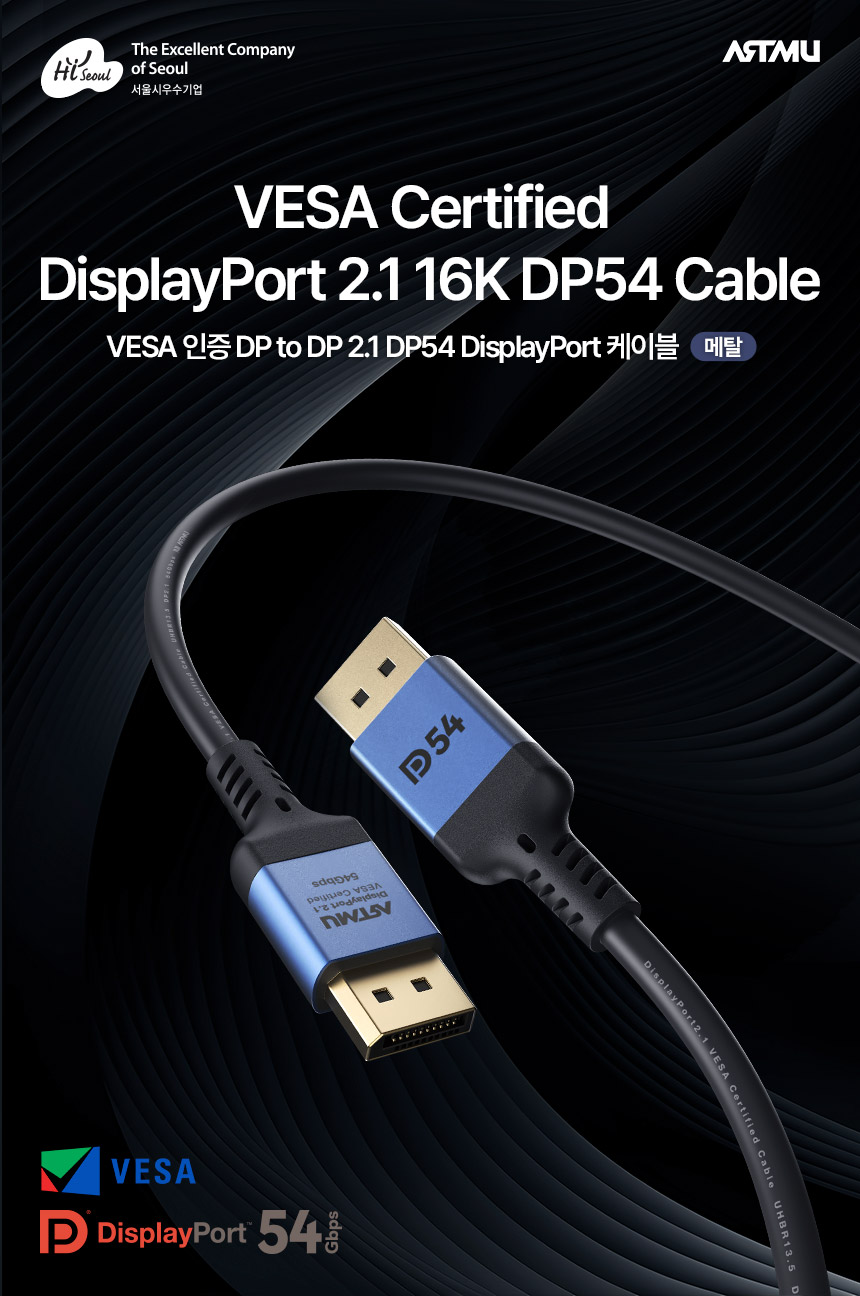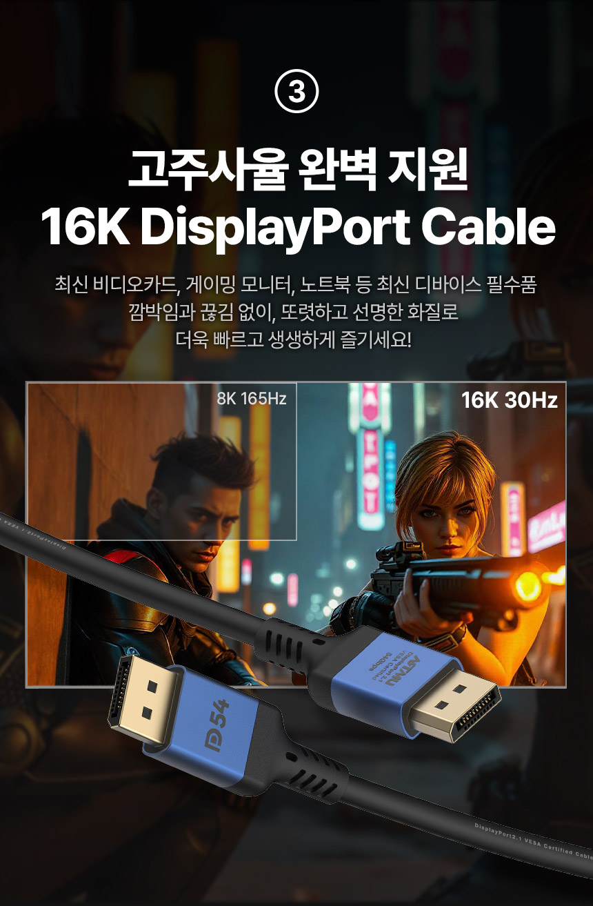 VESA 인증 DP to DP 2.1 DP54 16K DisplayPort 케이블 메탈 1m