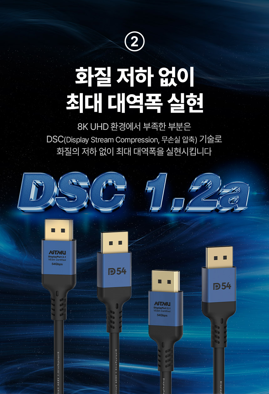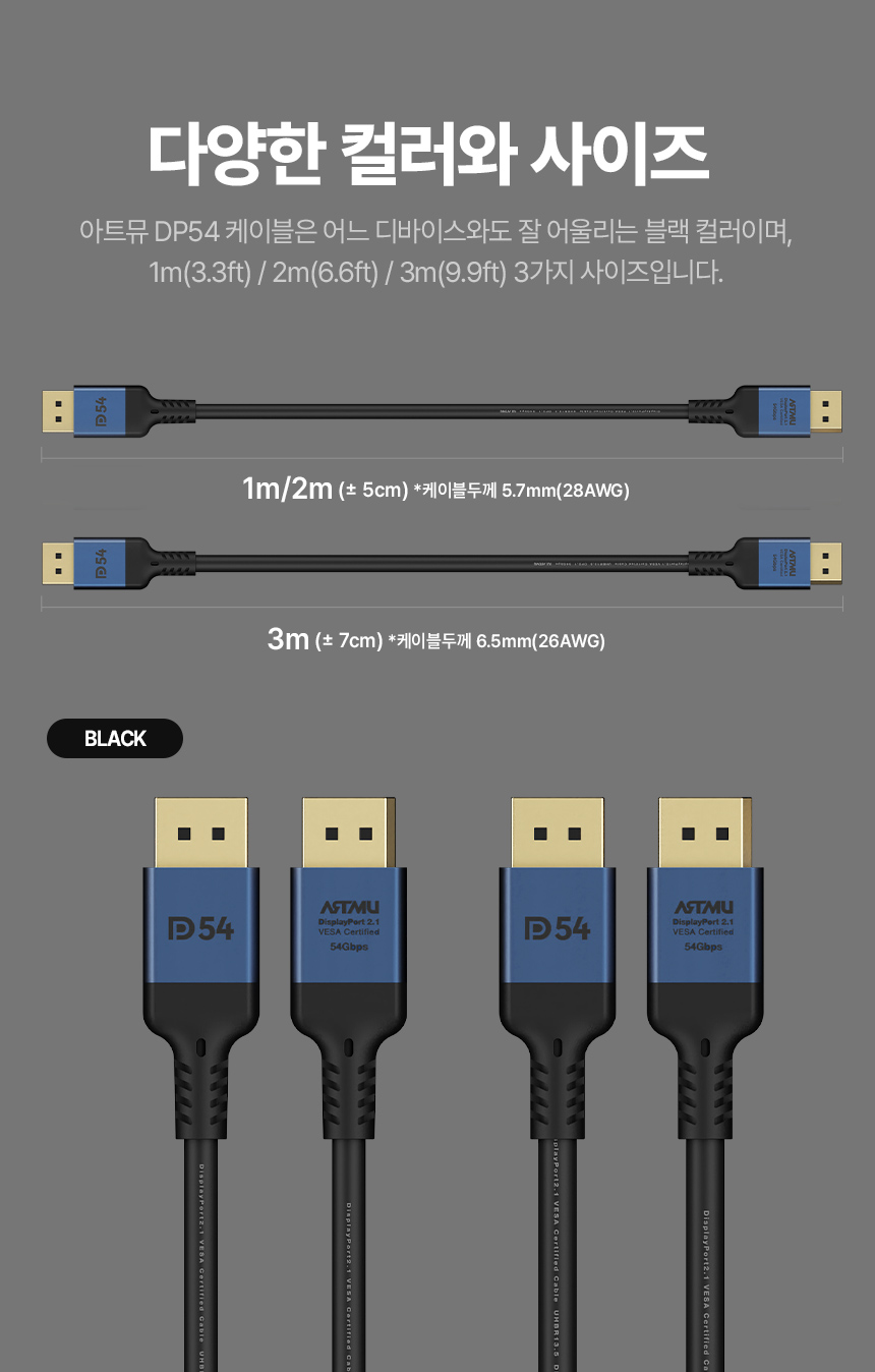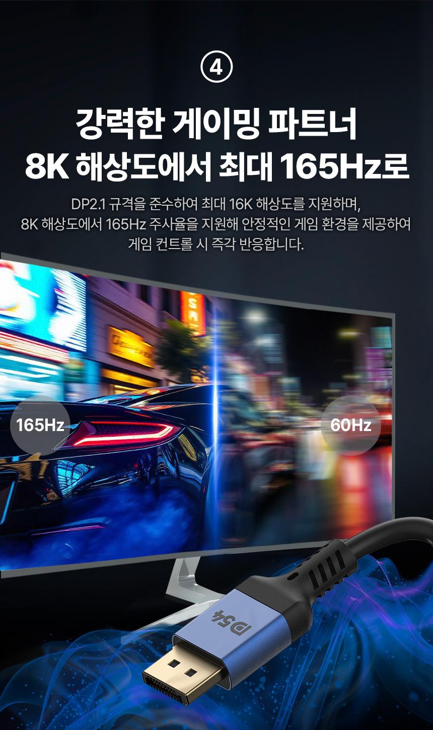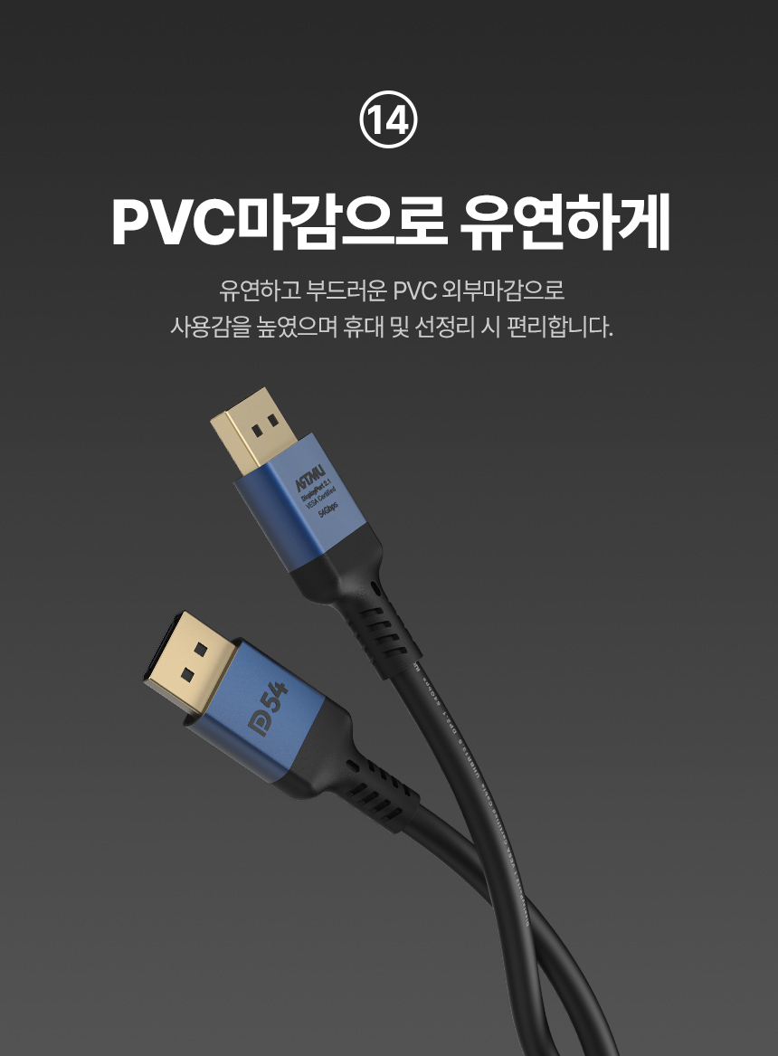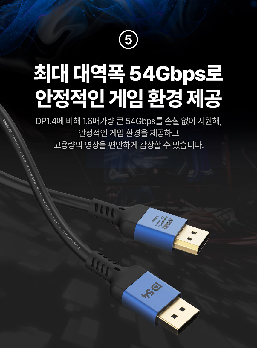 VESA 인증 DP to DP 2.1 DP54 16K DisplayPort 케이블 메탈 1m