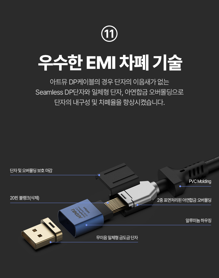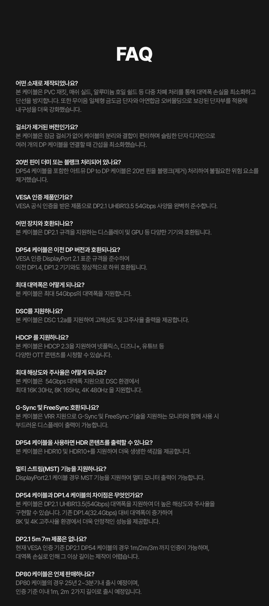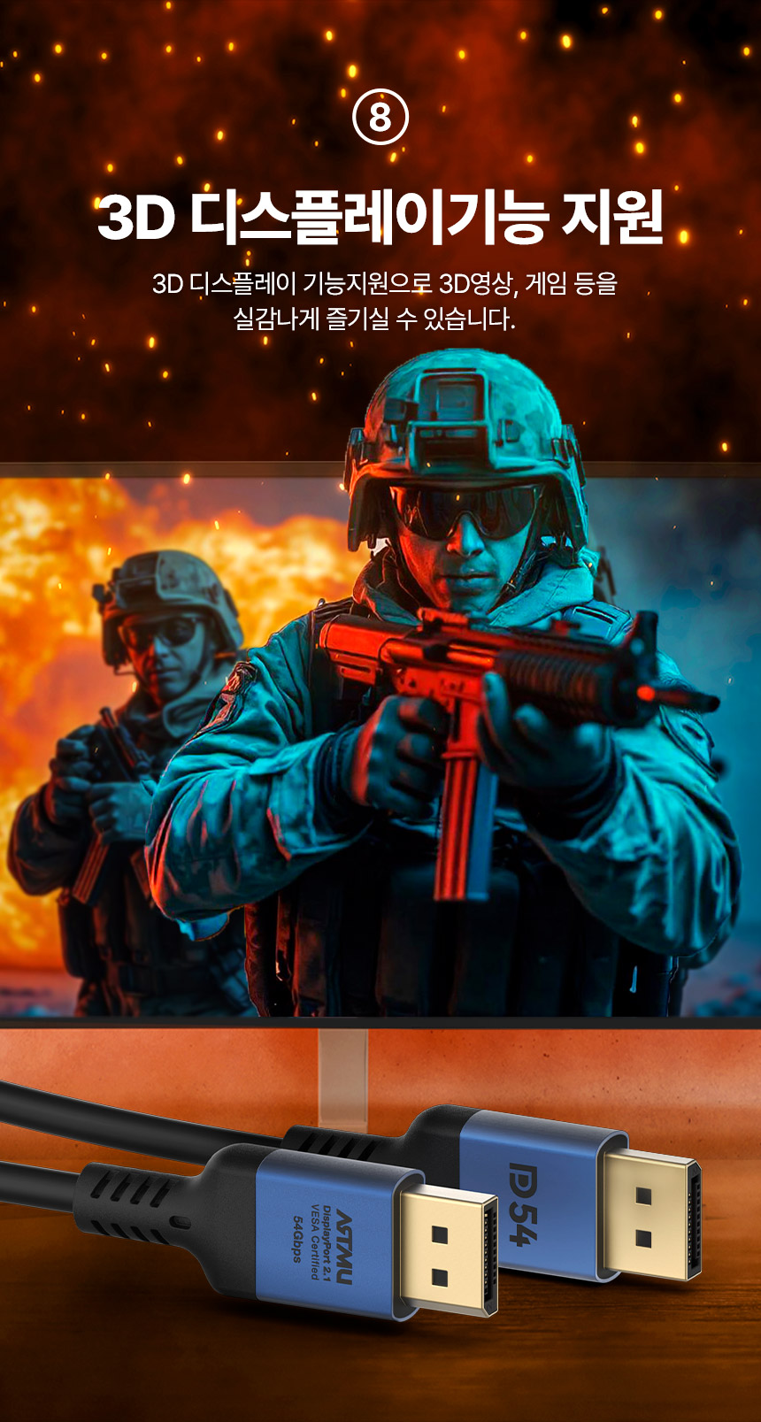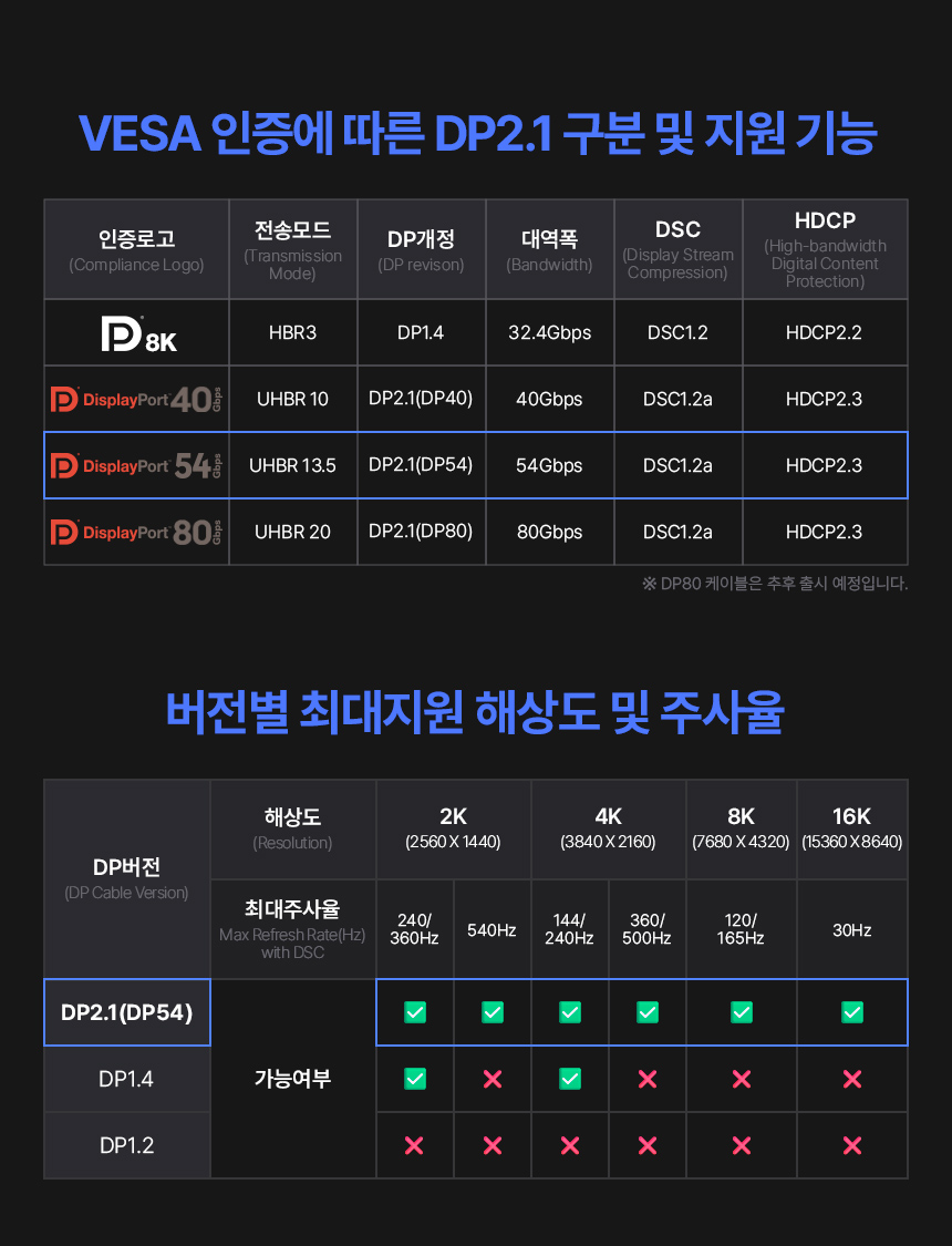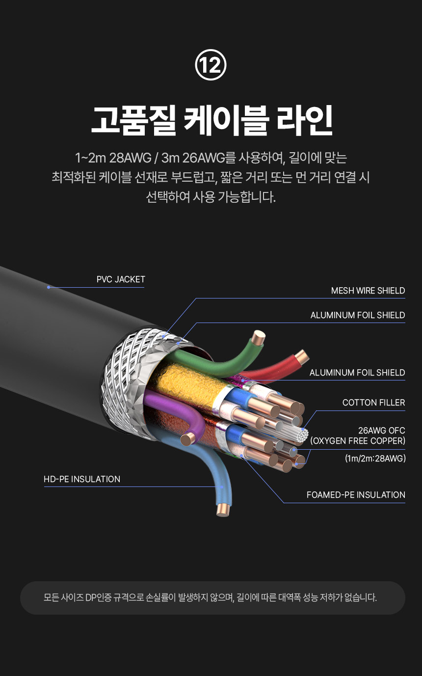 VESA 인증 DP to DP 2.1 DP54 16K DisplayPort 케이블 메탈 1m