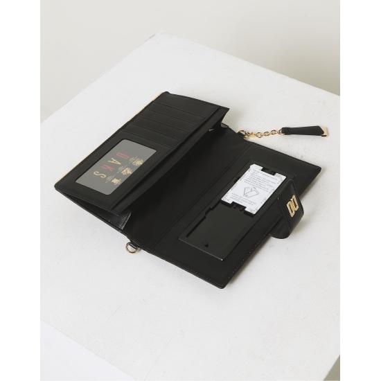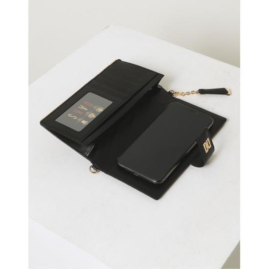 퀼팅 패턴의 DD 로고 장식을 포인트로 주어 세련된 외관을 연출한 지갑형 핸드폰 케이스입니다.