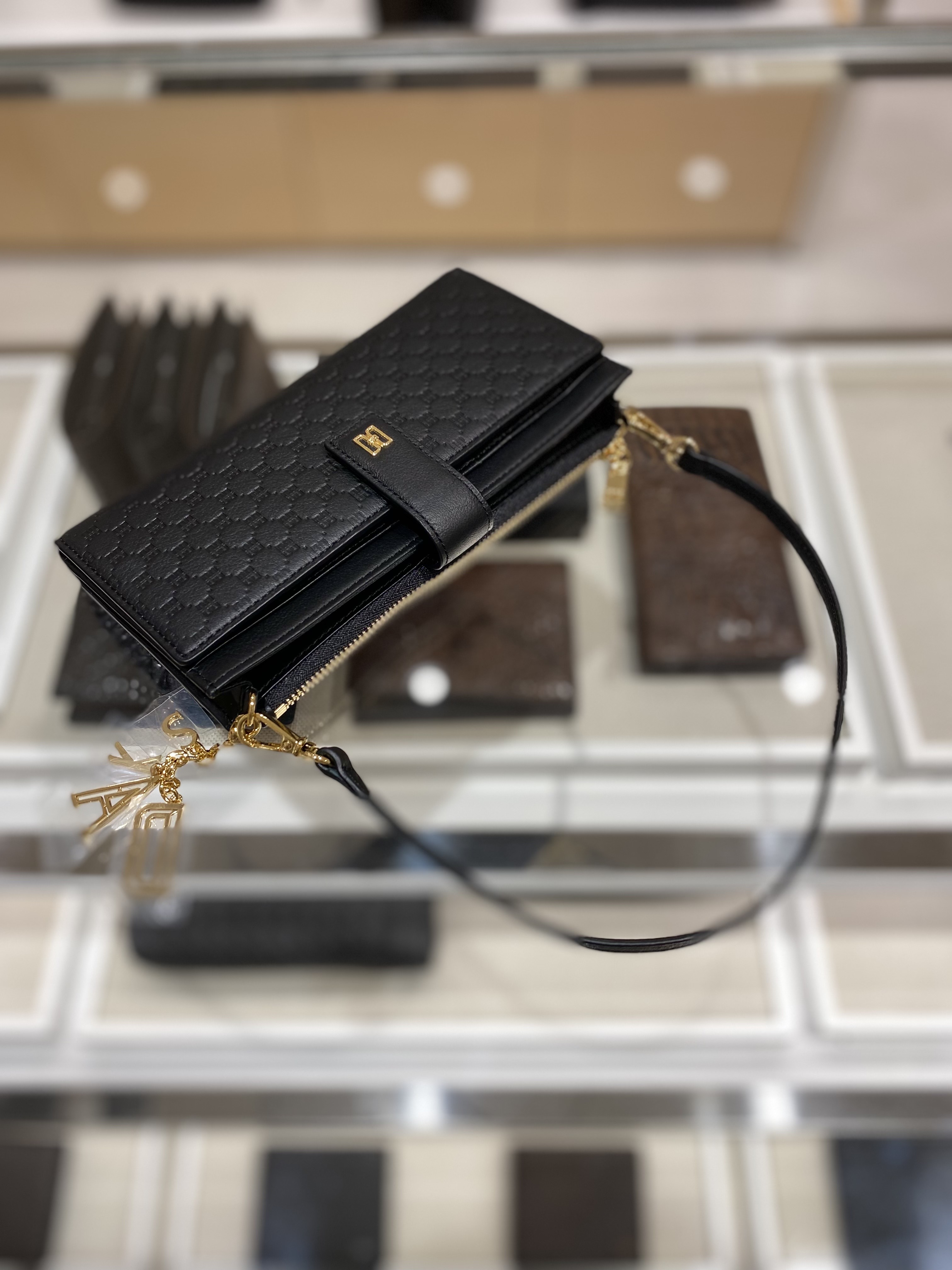 (롯데백화점)YD 블랙 DD경판로고 매트 가죽 핸드폰 지갑 DCWA2F515