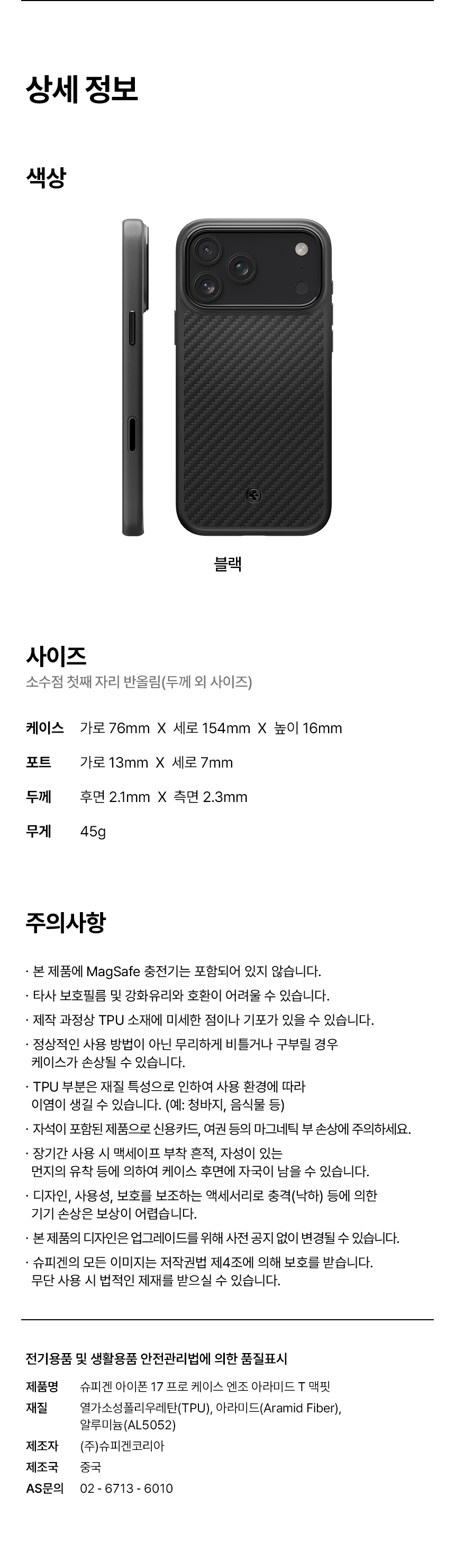 슈피겐 아이폰17 프로 카본 패턴 맥세이프 케이스 엔조아라미드T맥핏 케이스