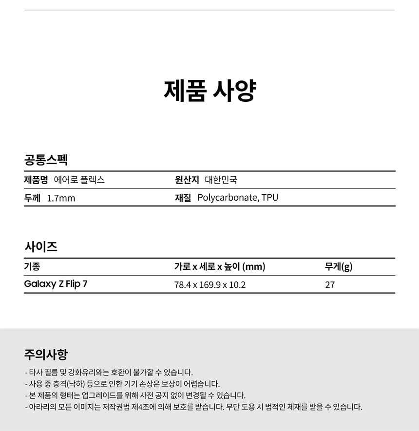 갤럭시 Z플립7 케이스 슬림 힌지보호 에어로 플렉스