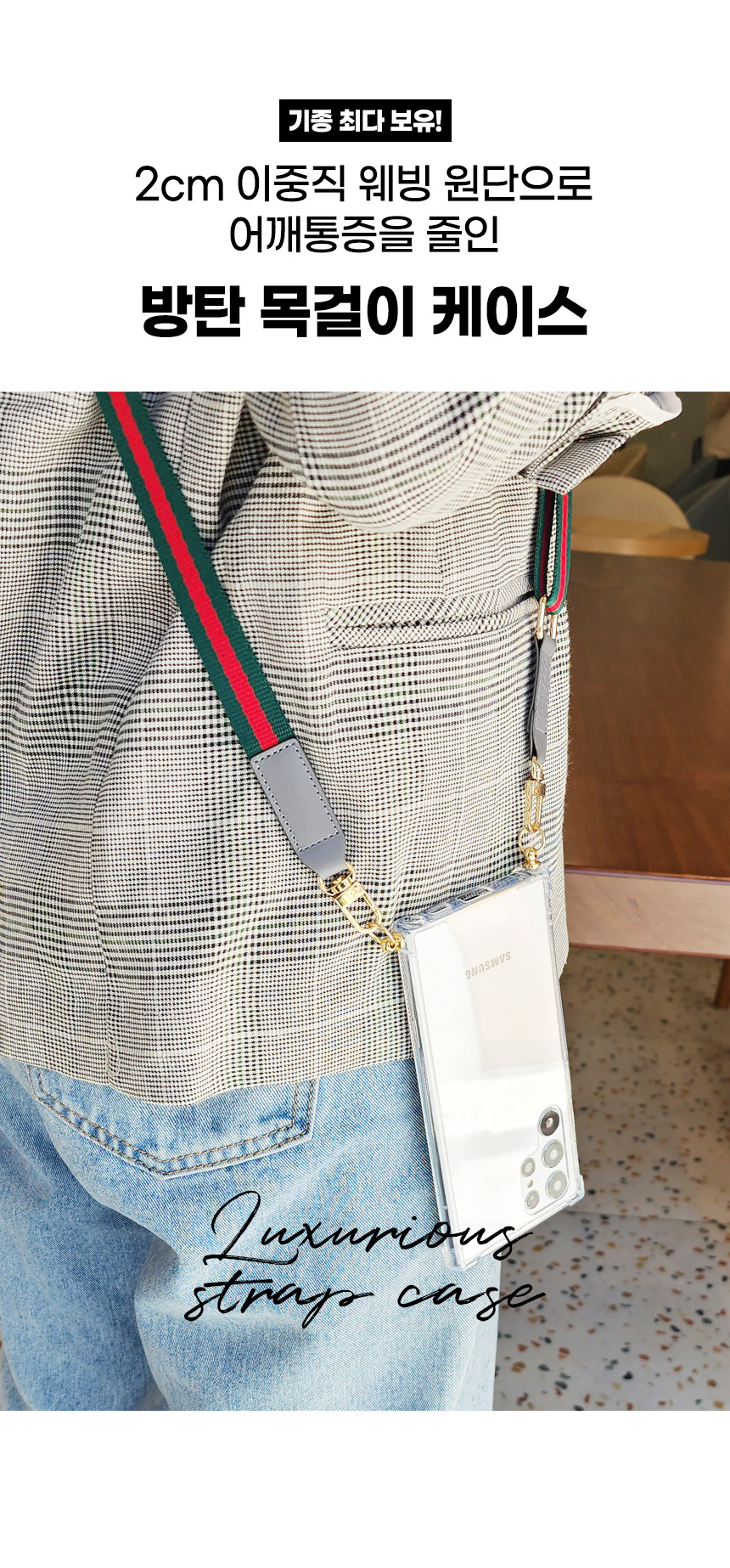 (Mui)갤럭시 A15 버디3 핸드폰 목걸이 웨빙 스트랩 케이스 투명 젤리 방탄 범퍼 폰줄 A155 A156