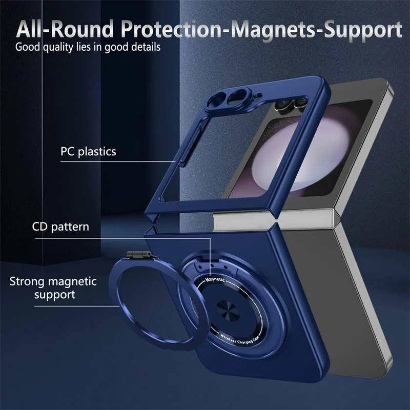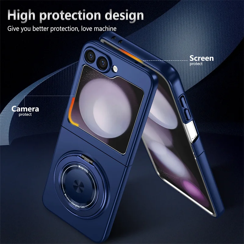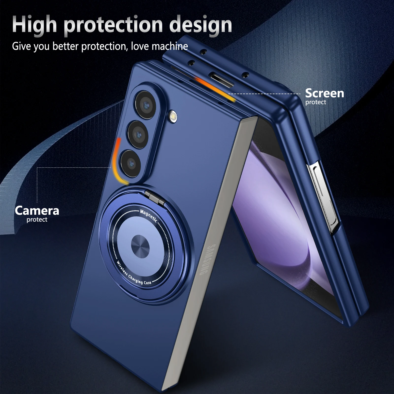 새로운 럭셔리 마그네틱 360 ° 링 홀더 전화 케이스 삼성 갤럭시 Z 플립 폴드 3 4 5 6 드롭 방지 Magsafe 무선 충전 커버