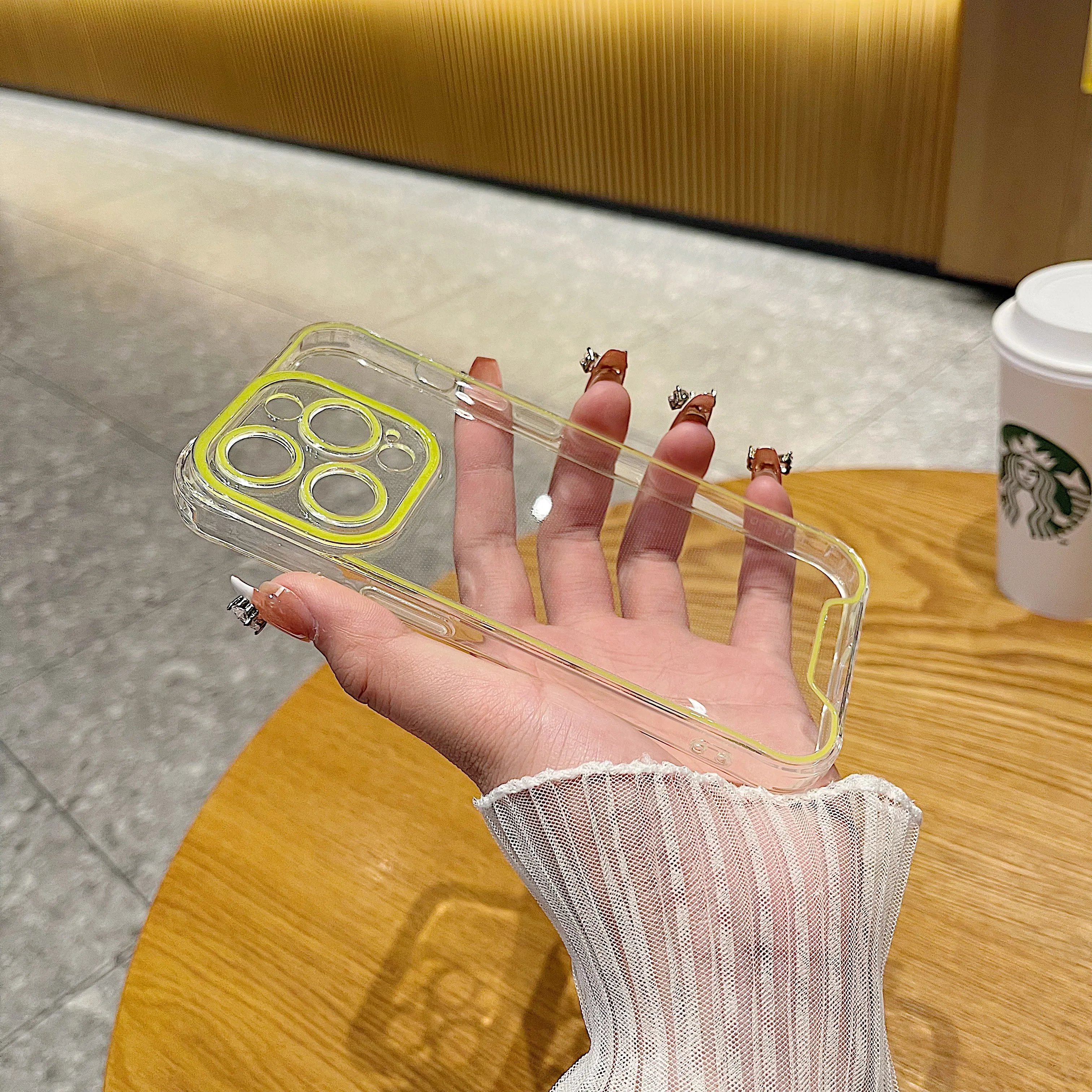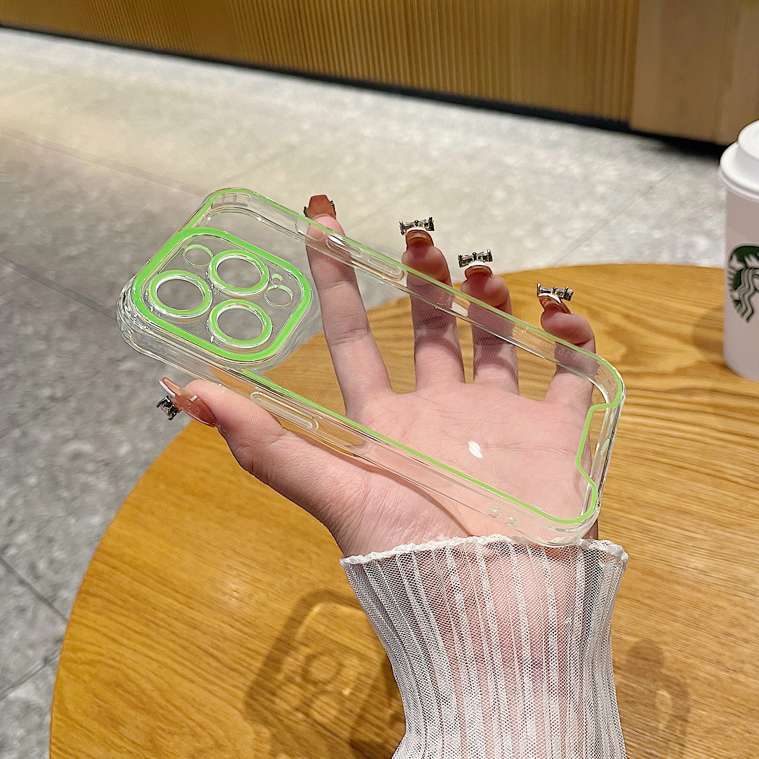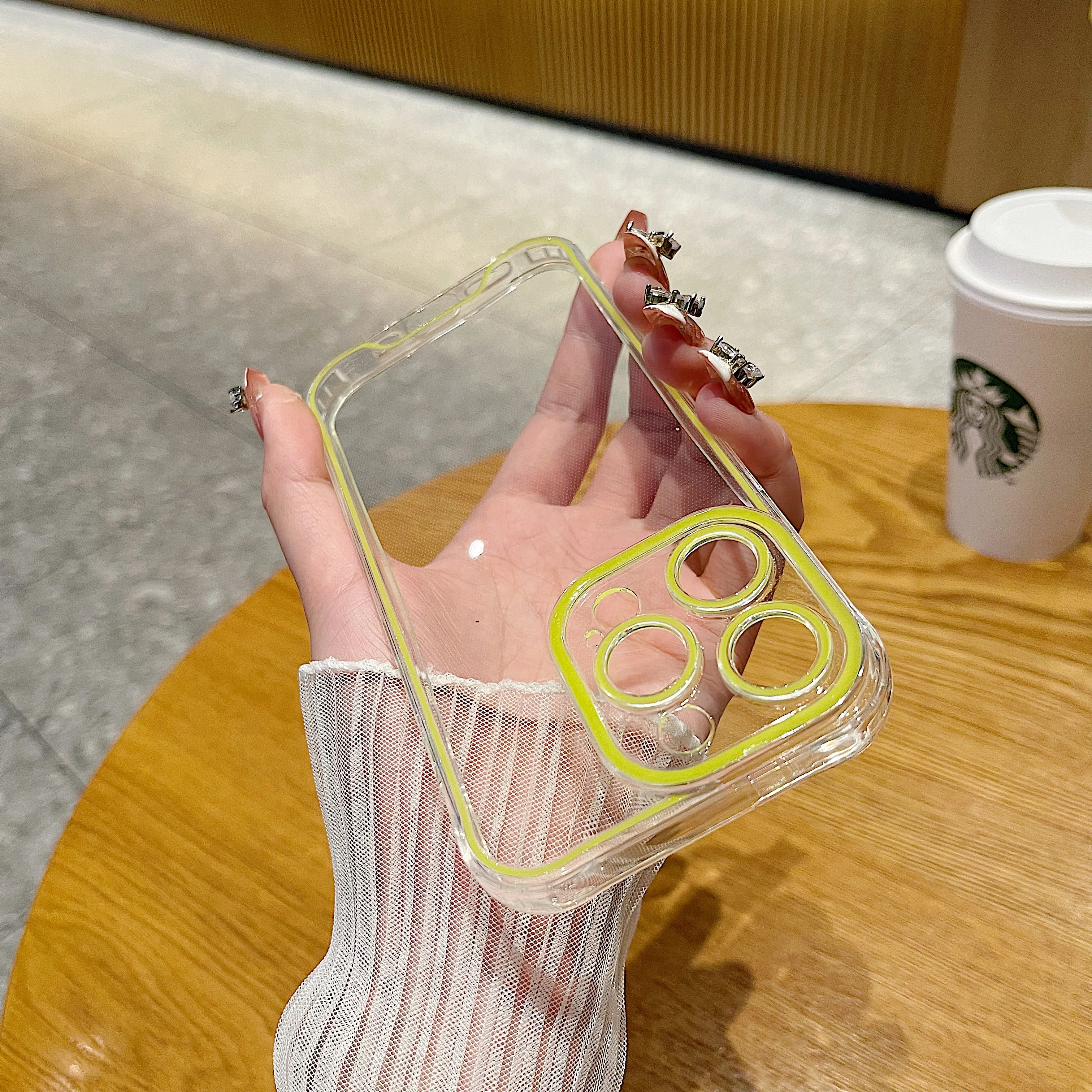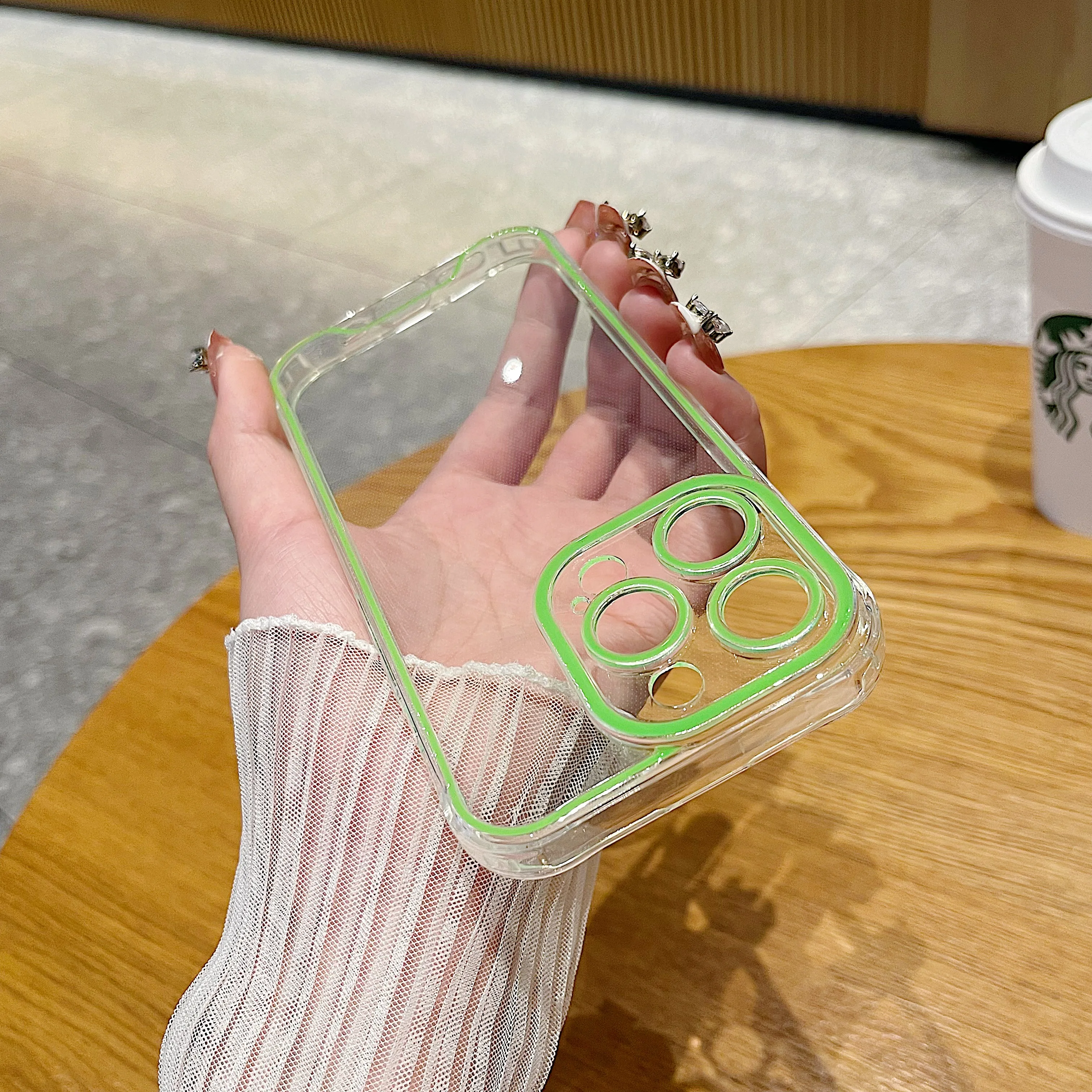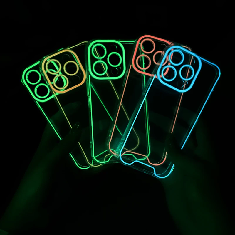 럭셔리 발광 크로마 투명 케이스 아이폰 14 15 프로 맥스 12 13 네온 형광 투명 실리콘 커버