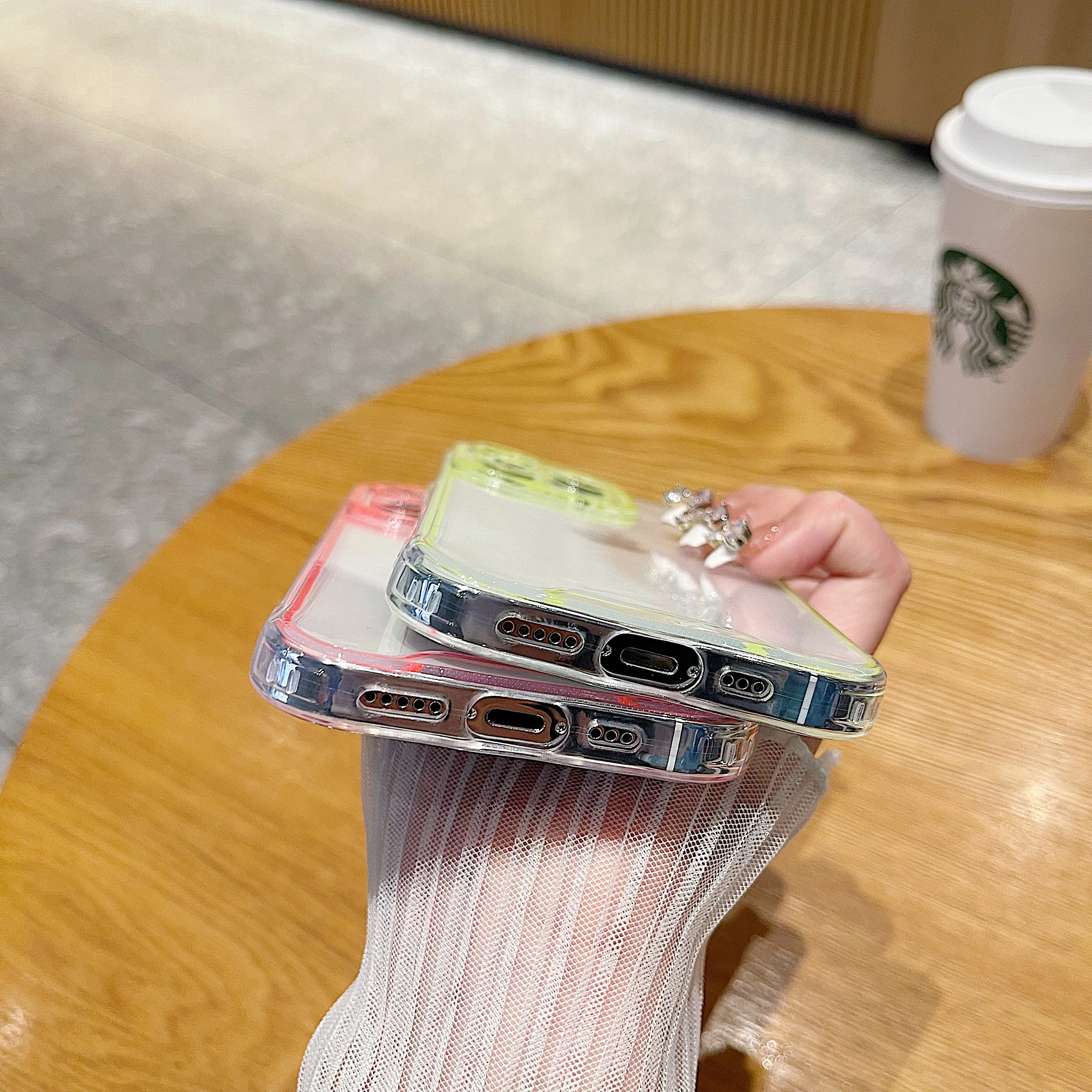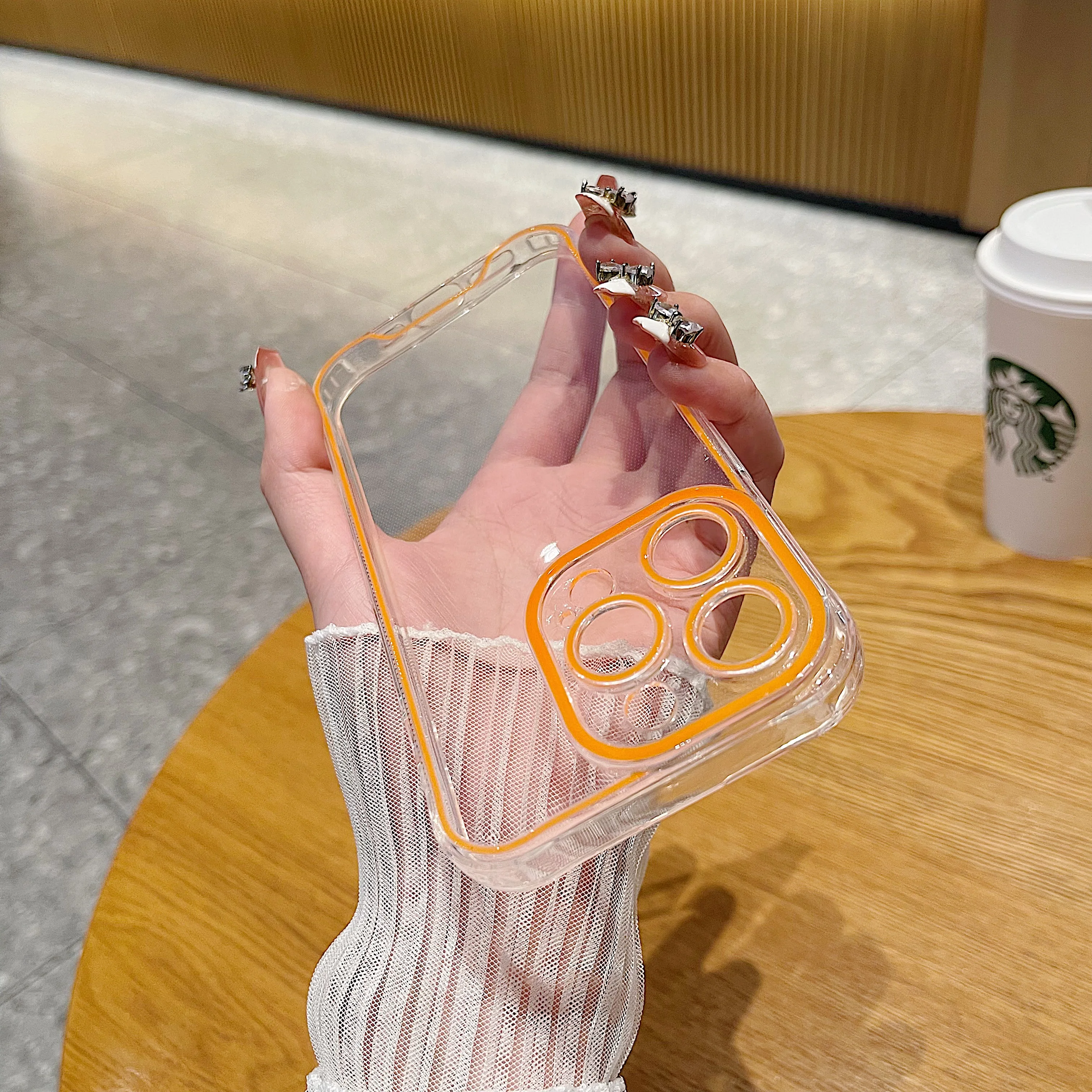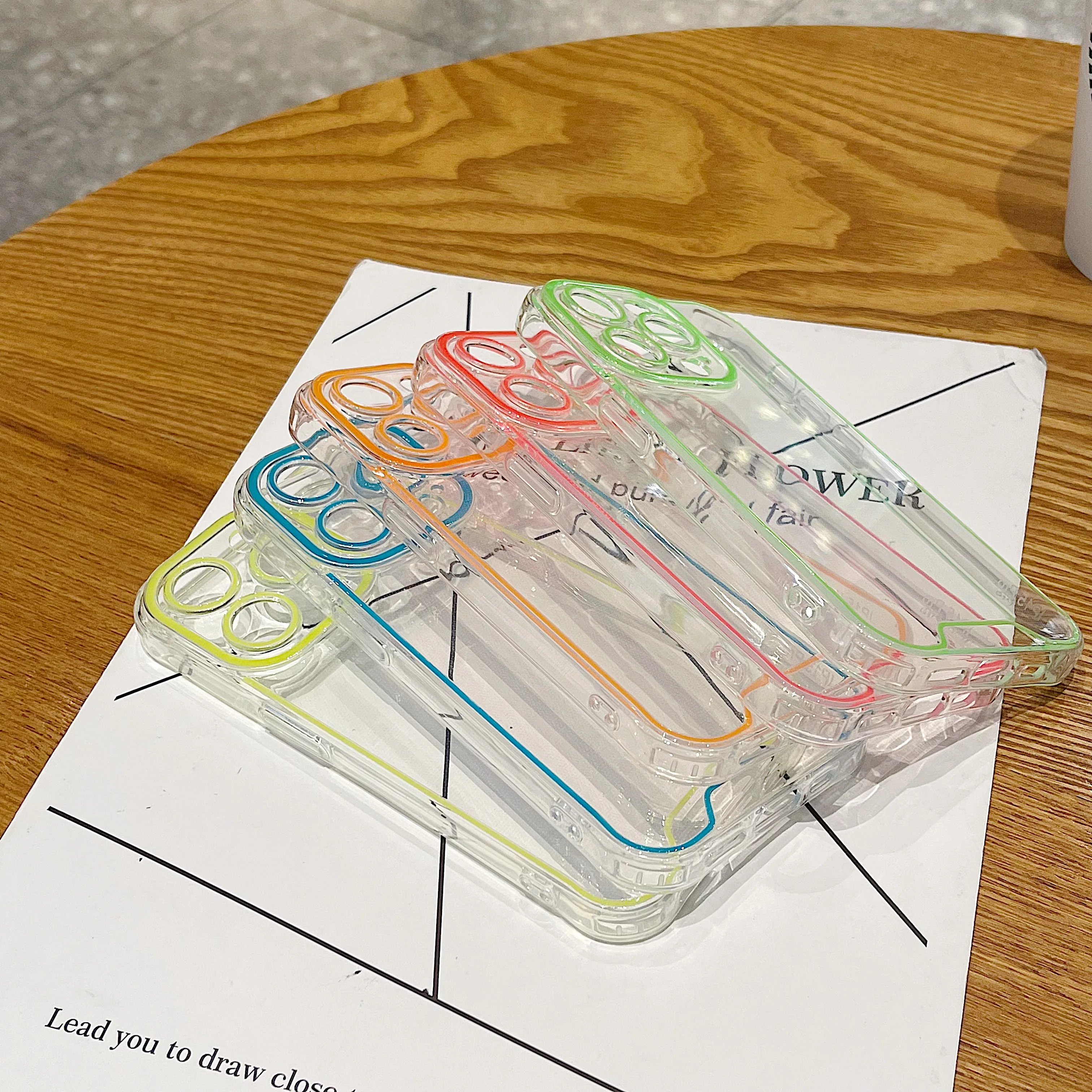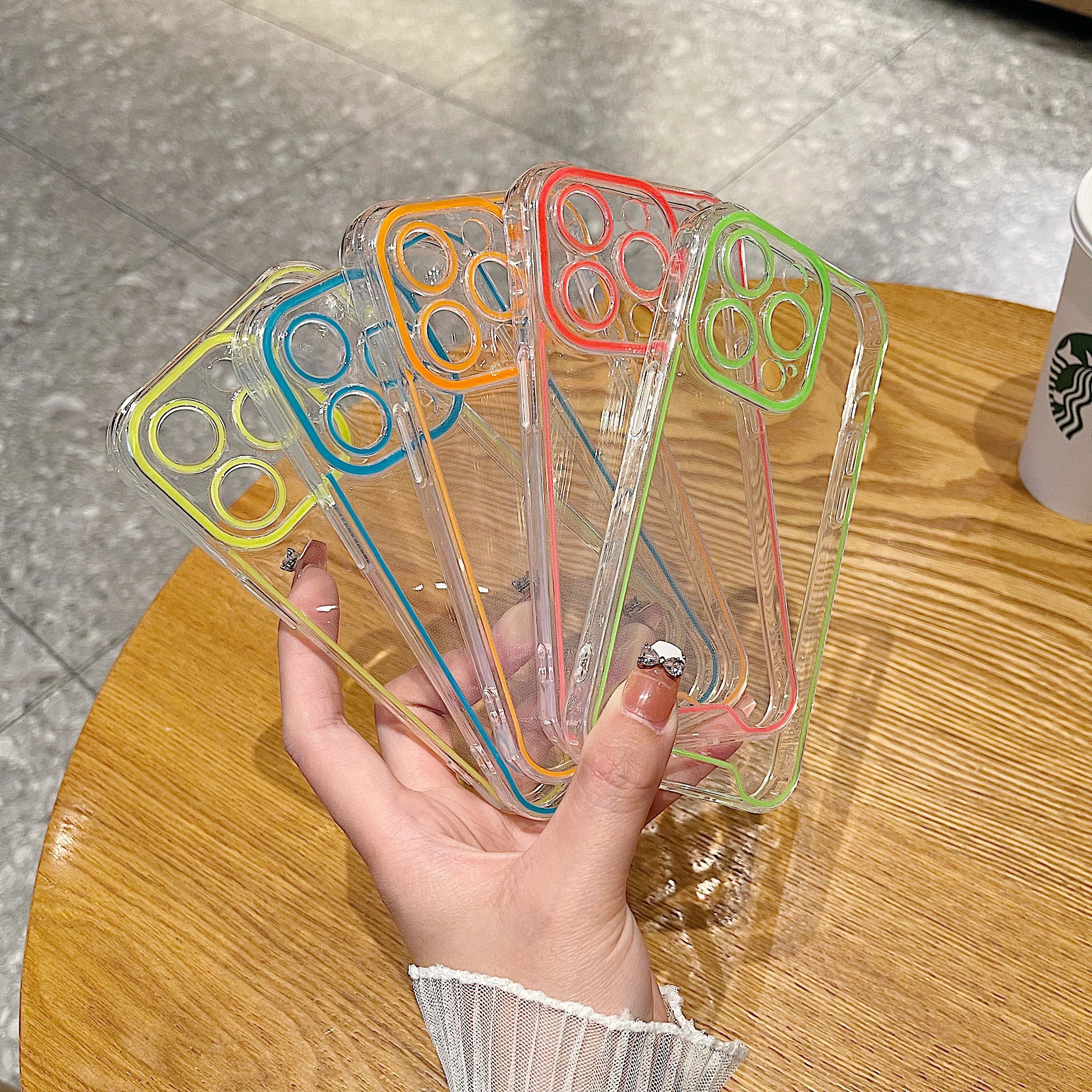 럭셔리 발광 크로마 투명 케이스 아이폰 14 15 프로 맥스 12 13 네온 형광 투명 실리콘 커버
