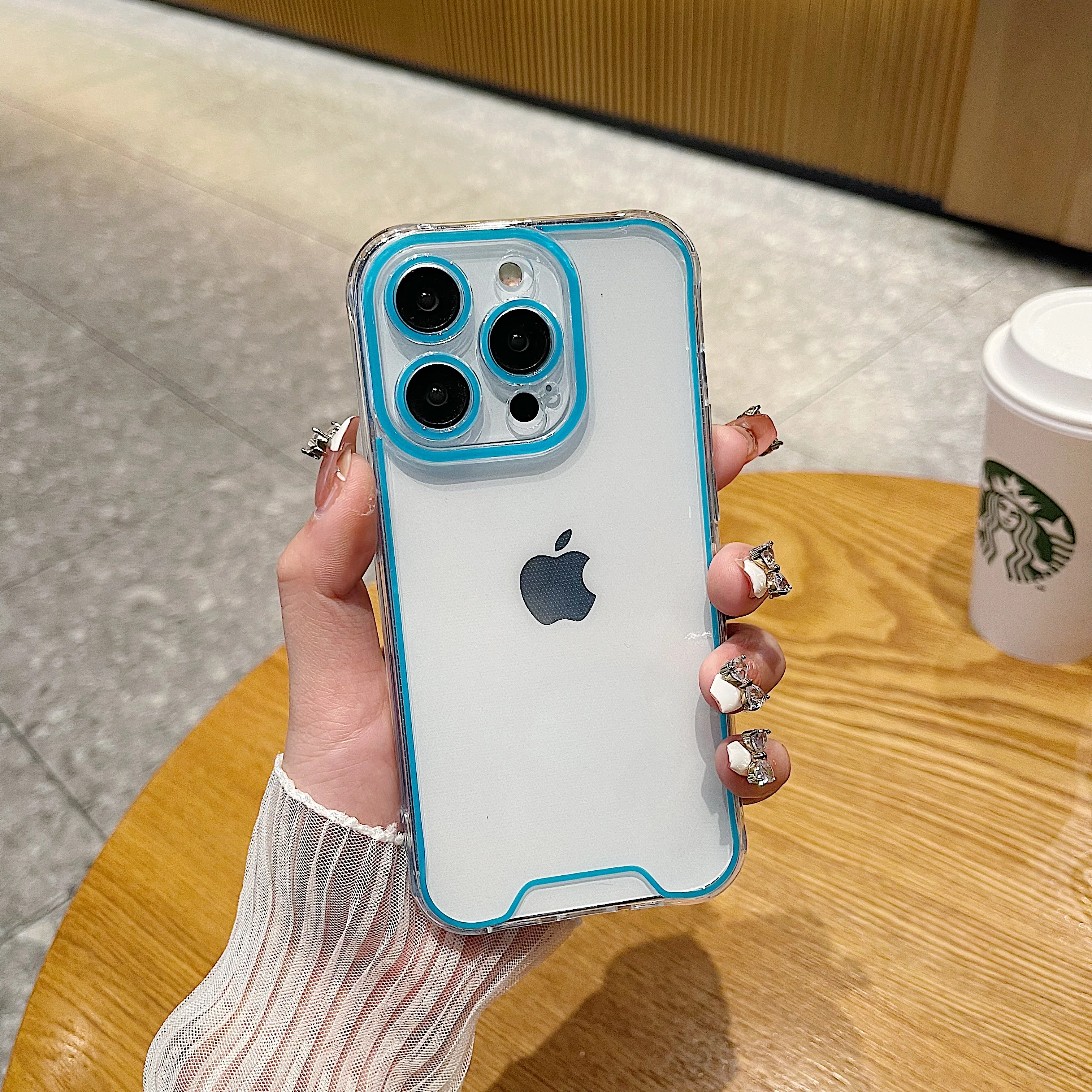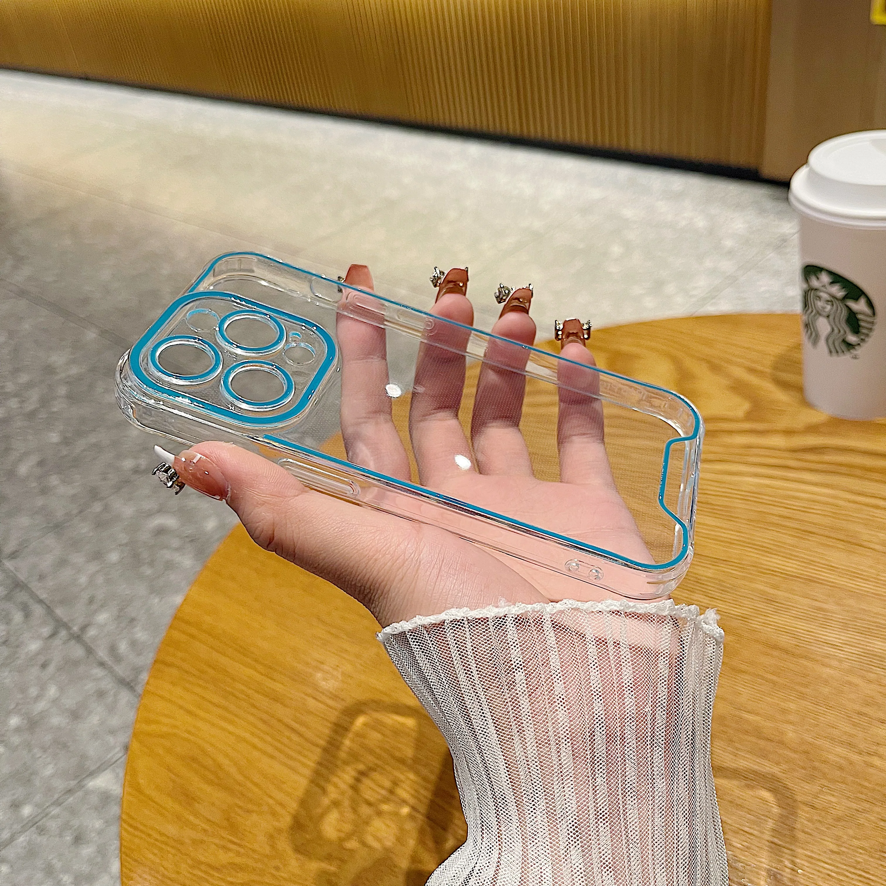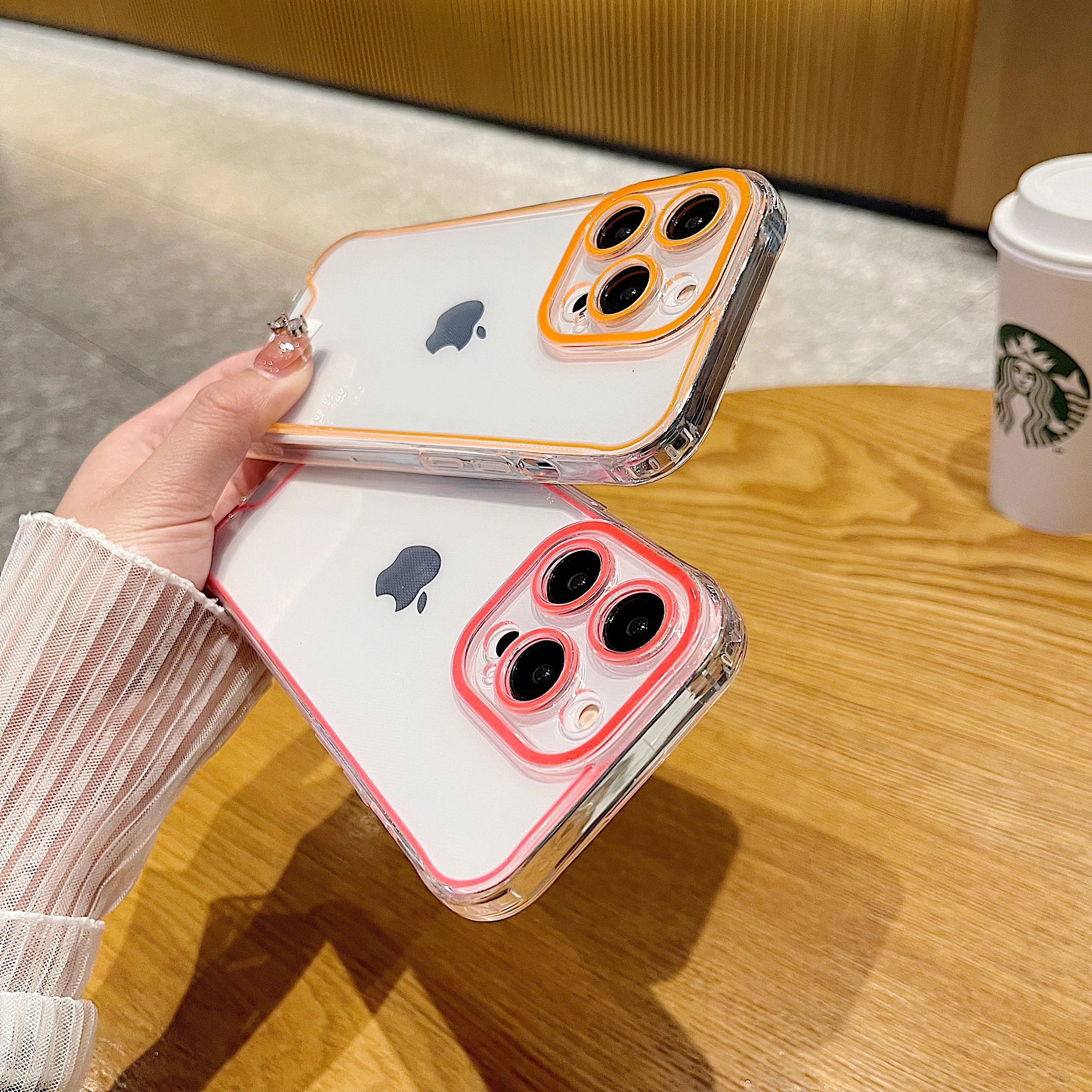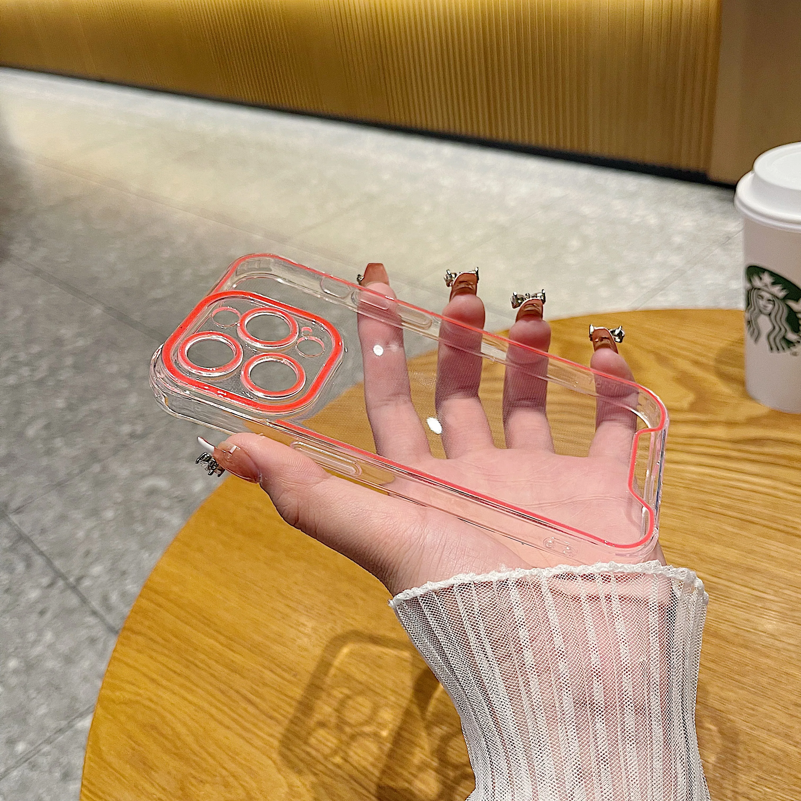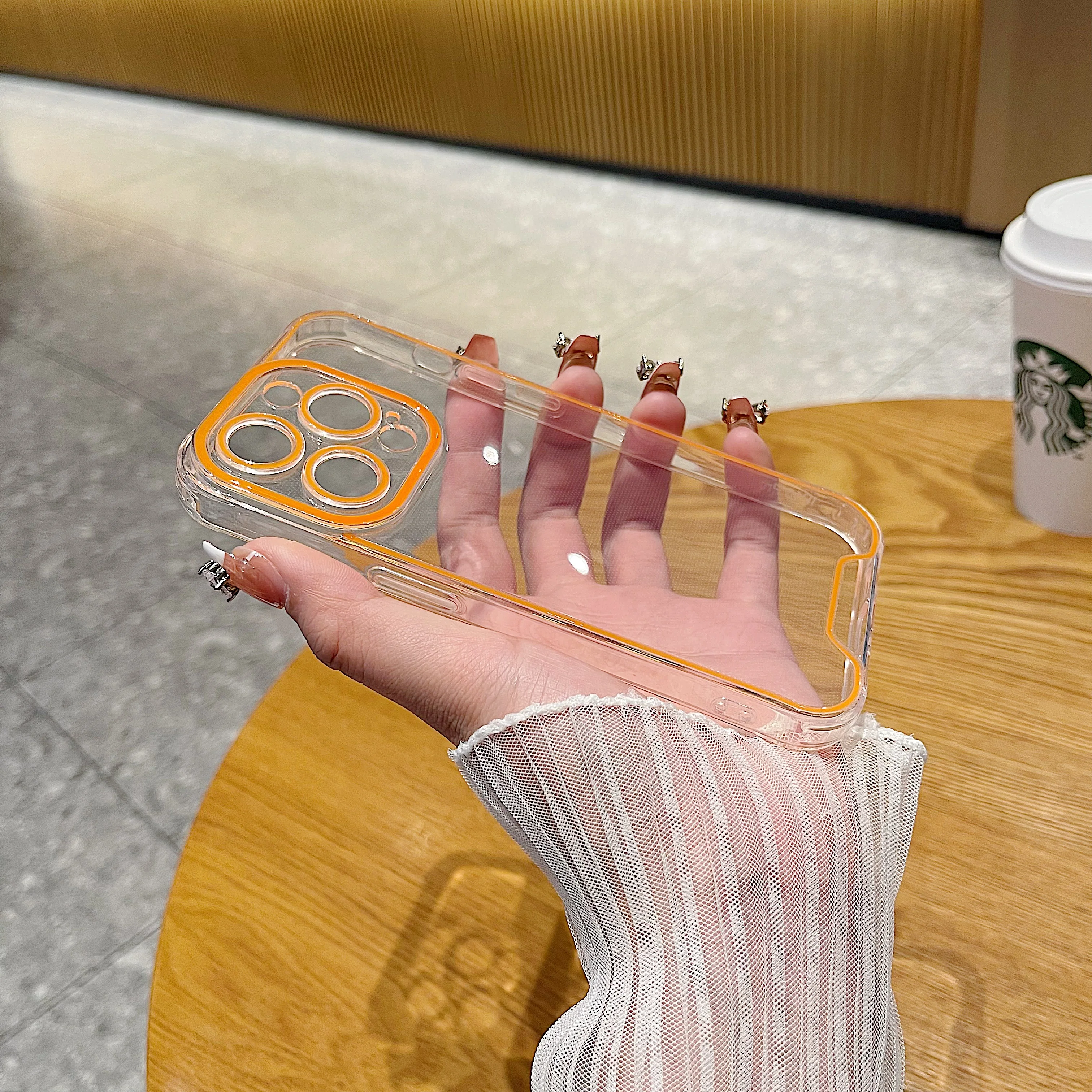 럭셔리 발광 크로마 투명 케이스 아이폰 14 15 프로 맥스 12 13 네온 형광 투명 실리콘 커버