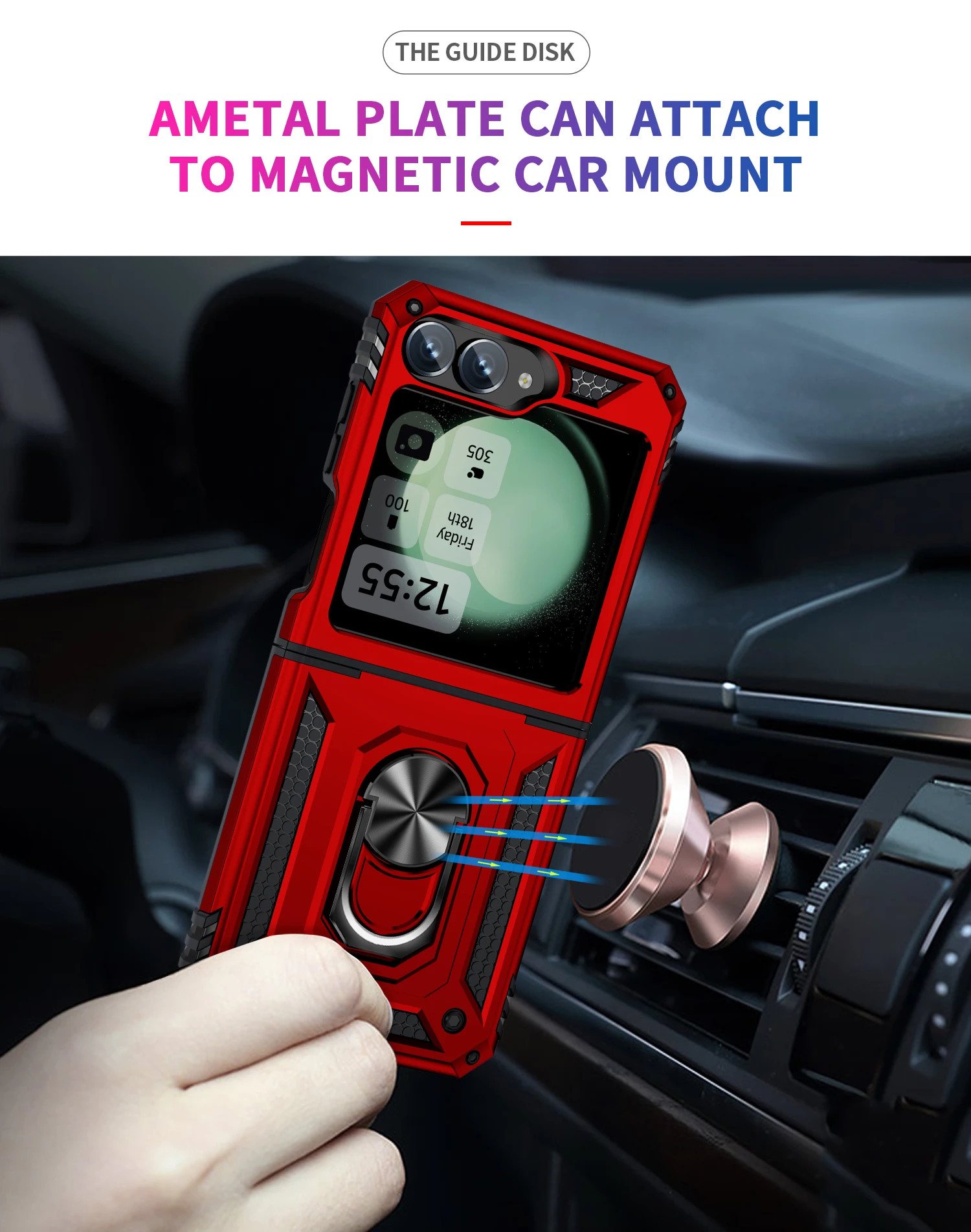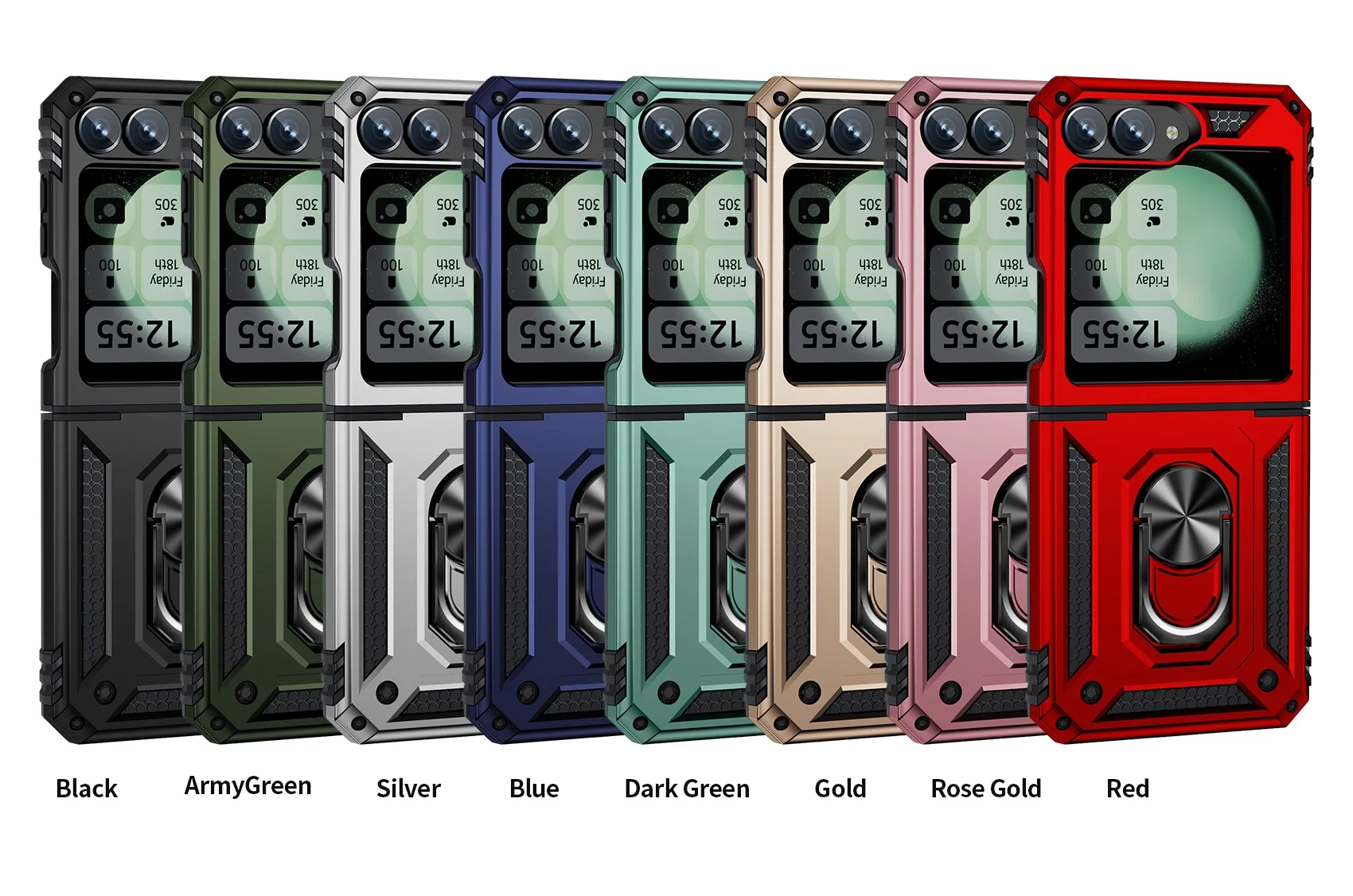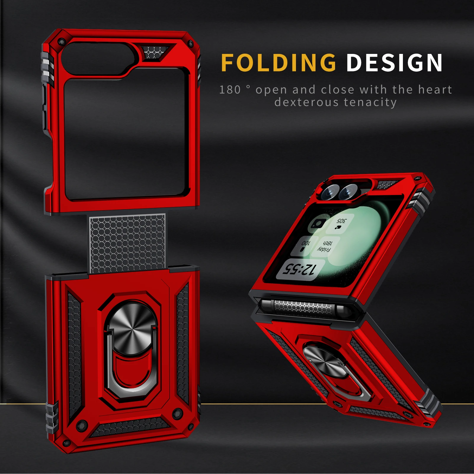 군용 등급 보호 금속 링 거치대 접이식 케이스 갤럭시 Z 플립 6 플립 5 편안한 그립 디펜더 견고한 힌지 케
