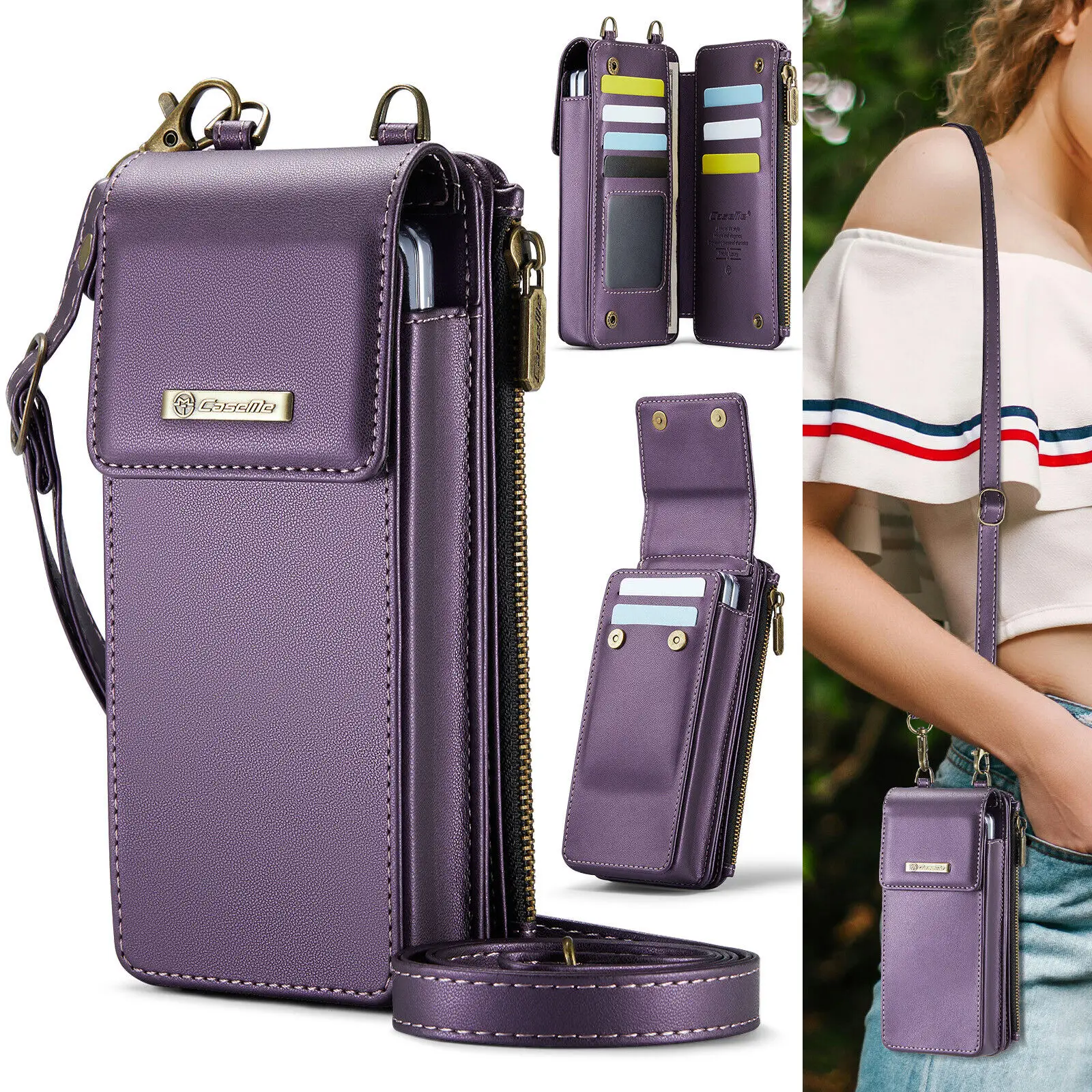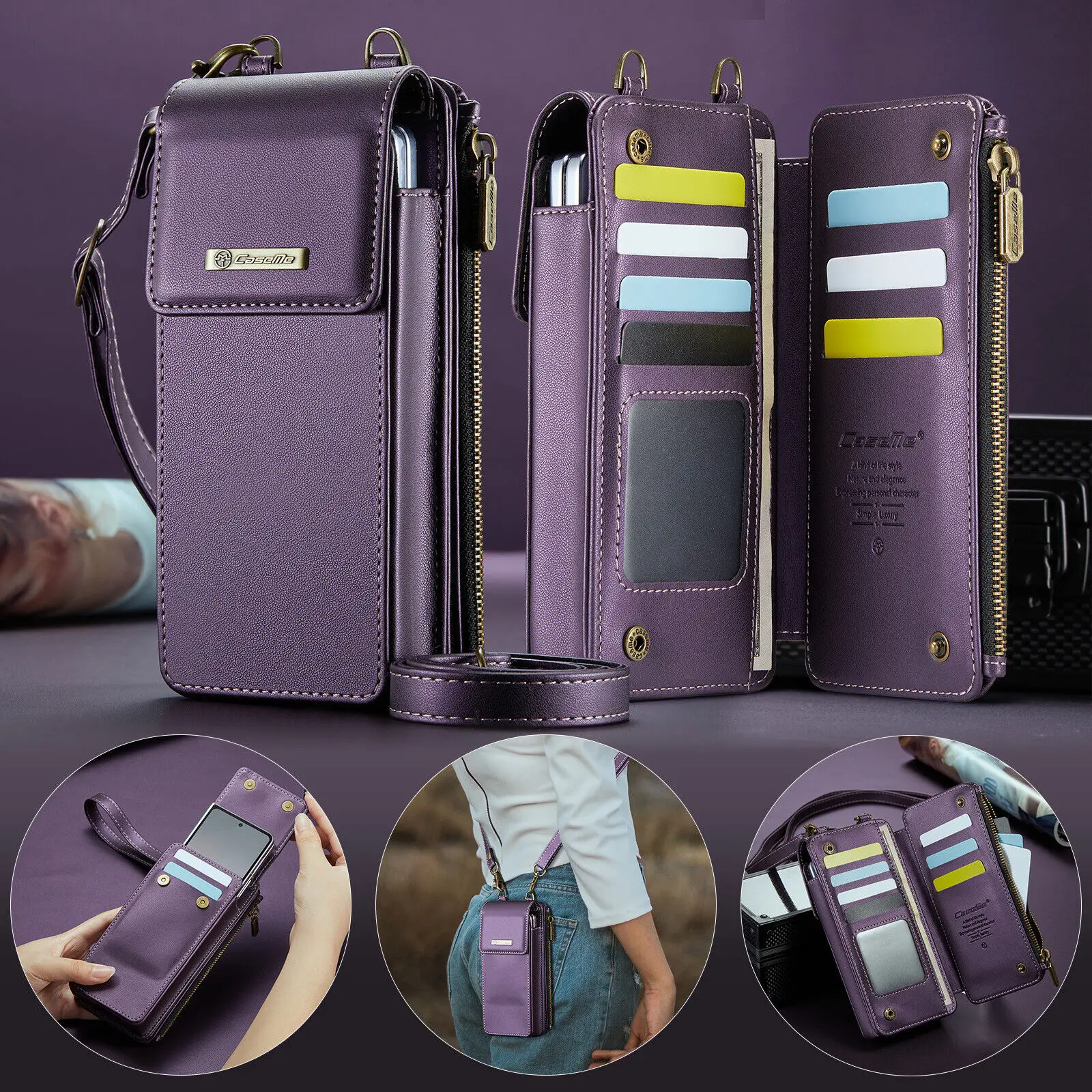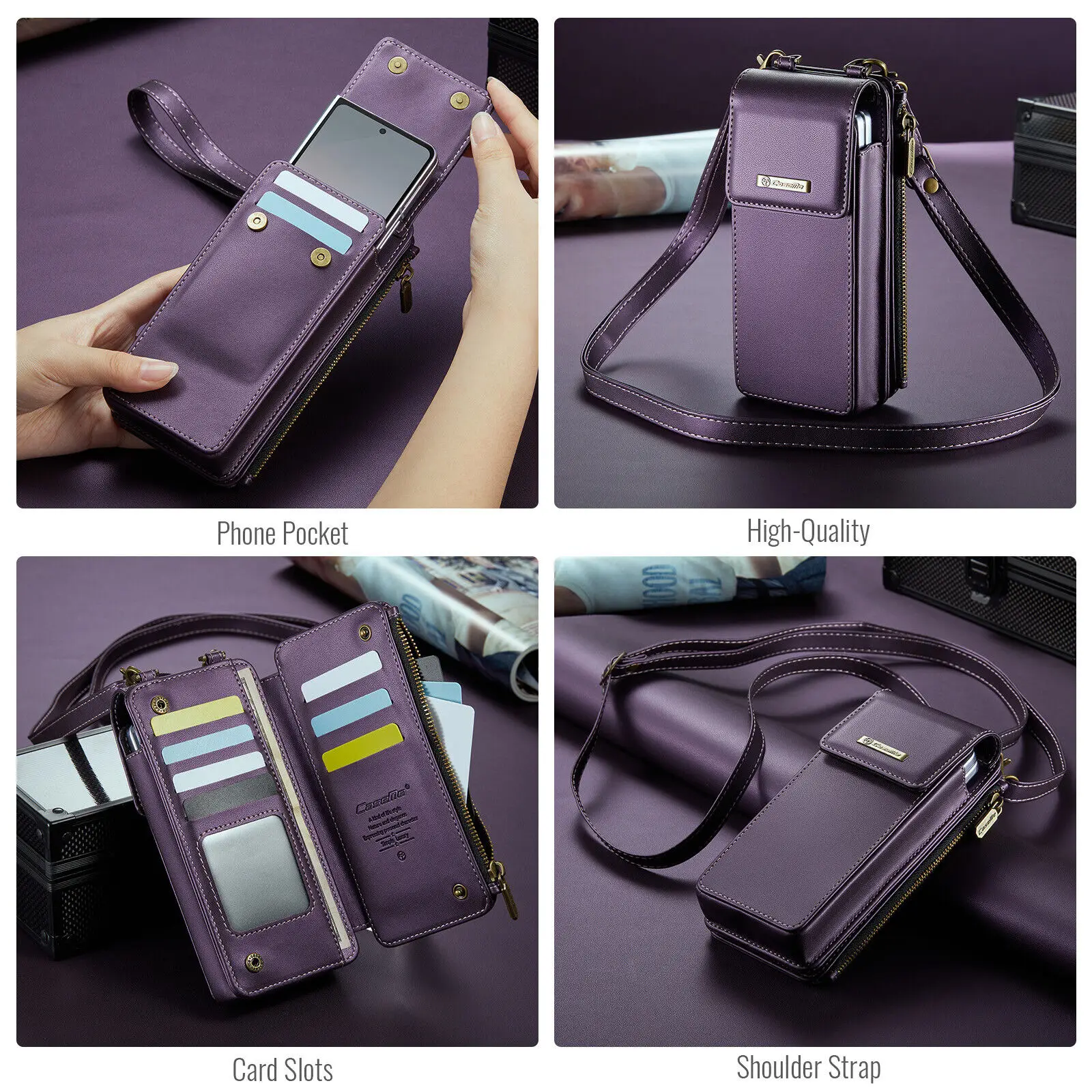 삼성 갤럭시 Z 폴드용 범용 차단 휴대폰 케이스 가죽 지갑 카드 슬롯 휴대폰 가방 크로스바디 하드 커버 2
