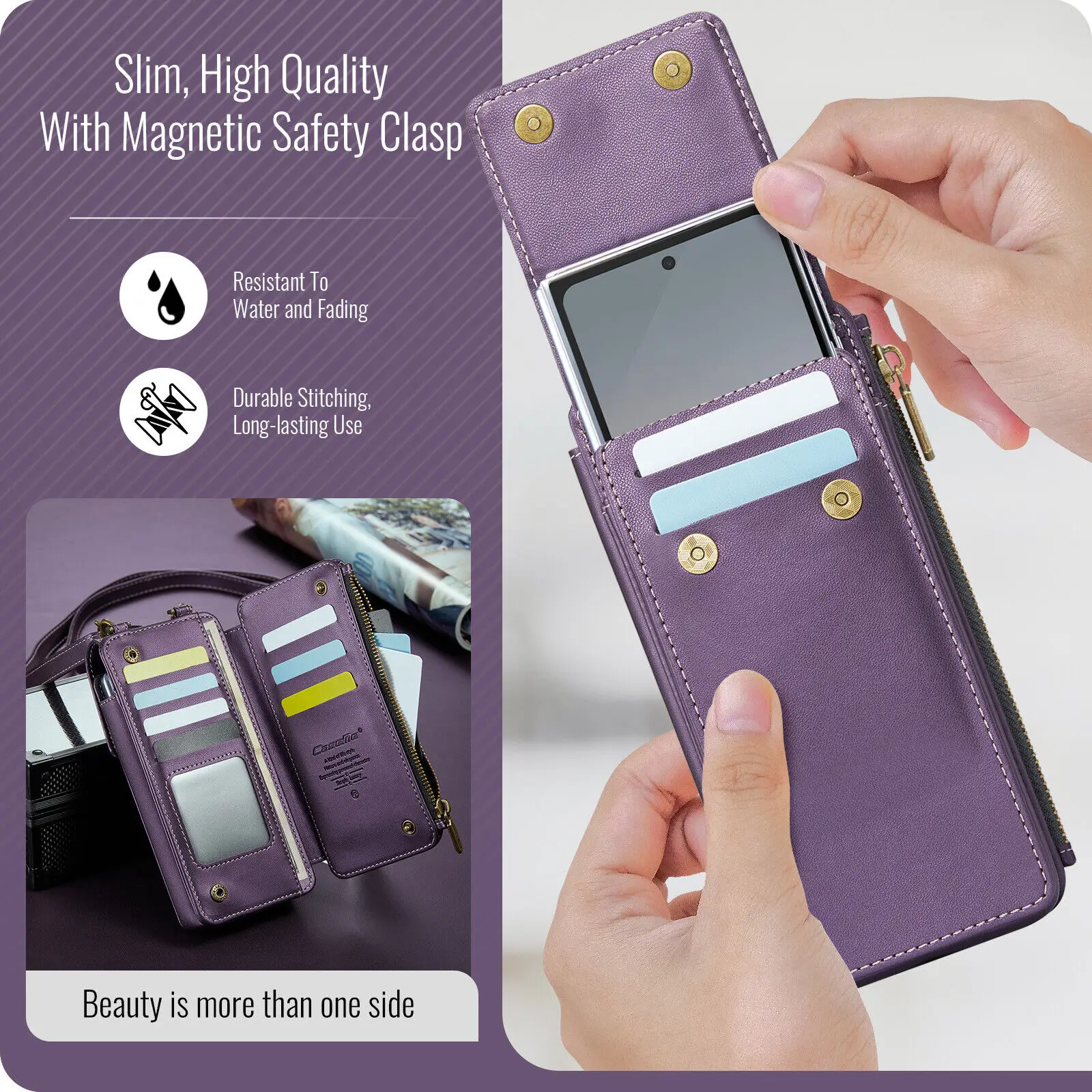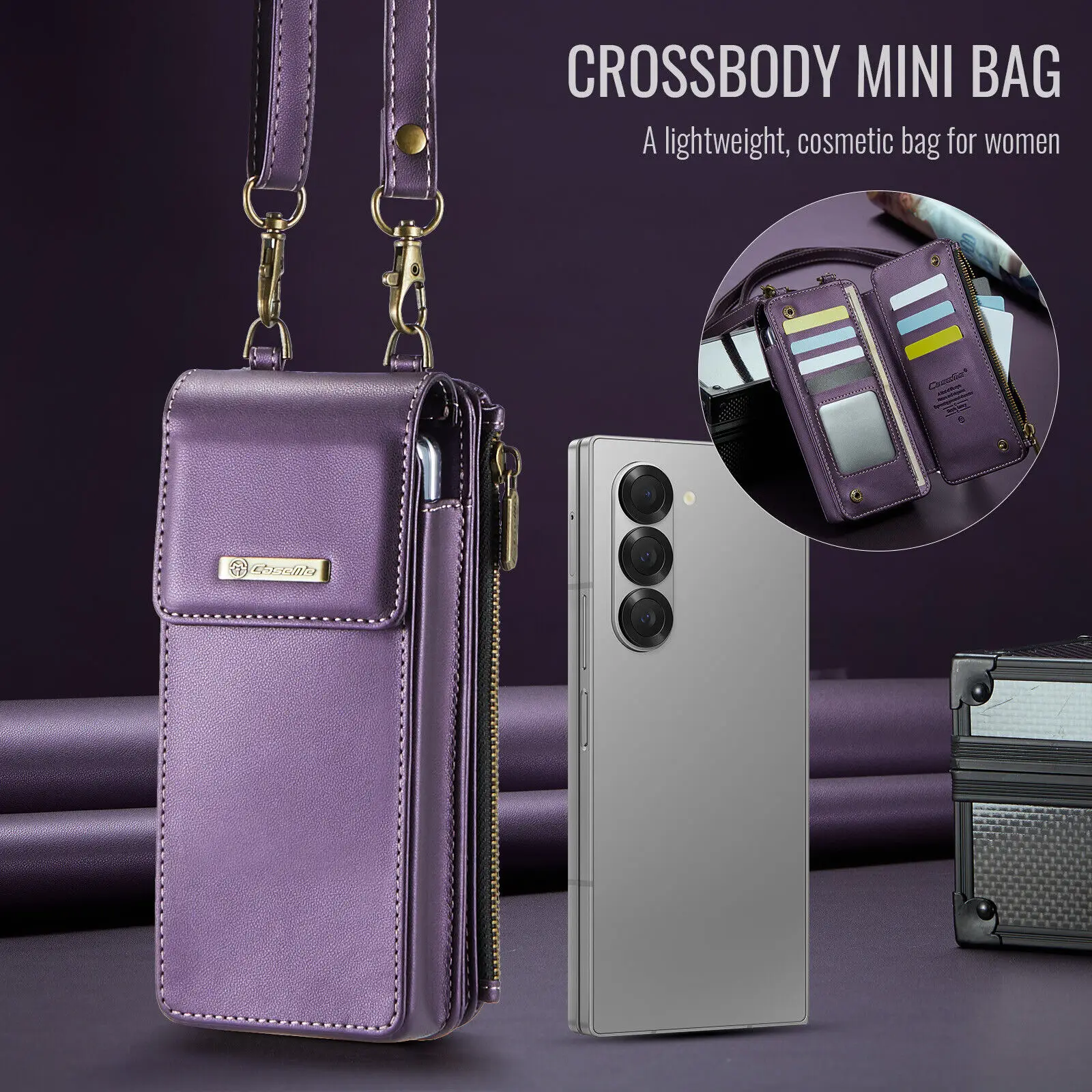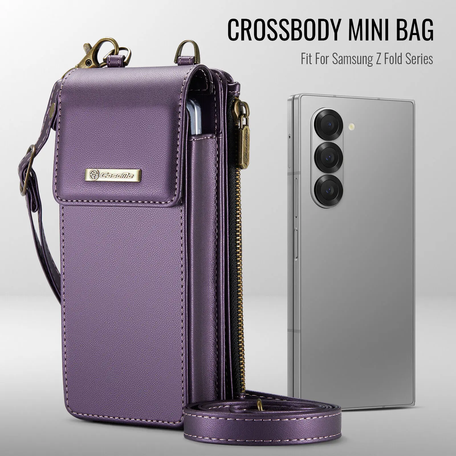 삼성 갤럭시 Z 폴드용 범용 차단 휴대폰 케이스 가죽 지갑 카드 슬롯 휴대폰 가방 크로스바디 하드 커버 2