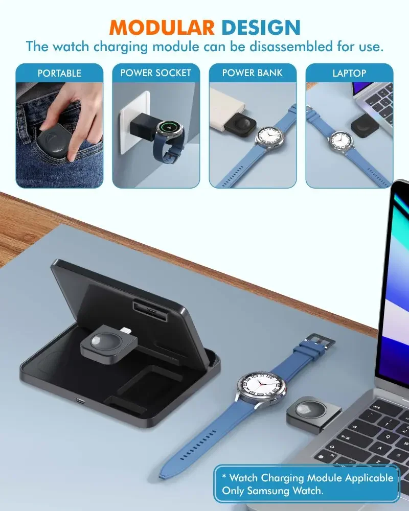 3 무선 충전을 지원하는 모든 삼성 시계/전화/이어폰을위한 1 무선 충전기.