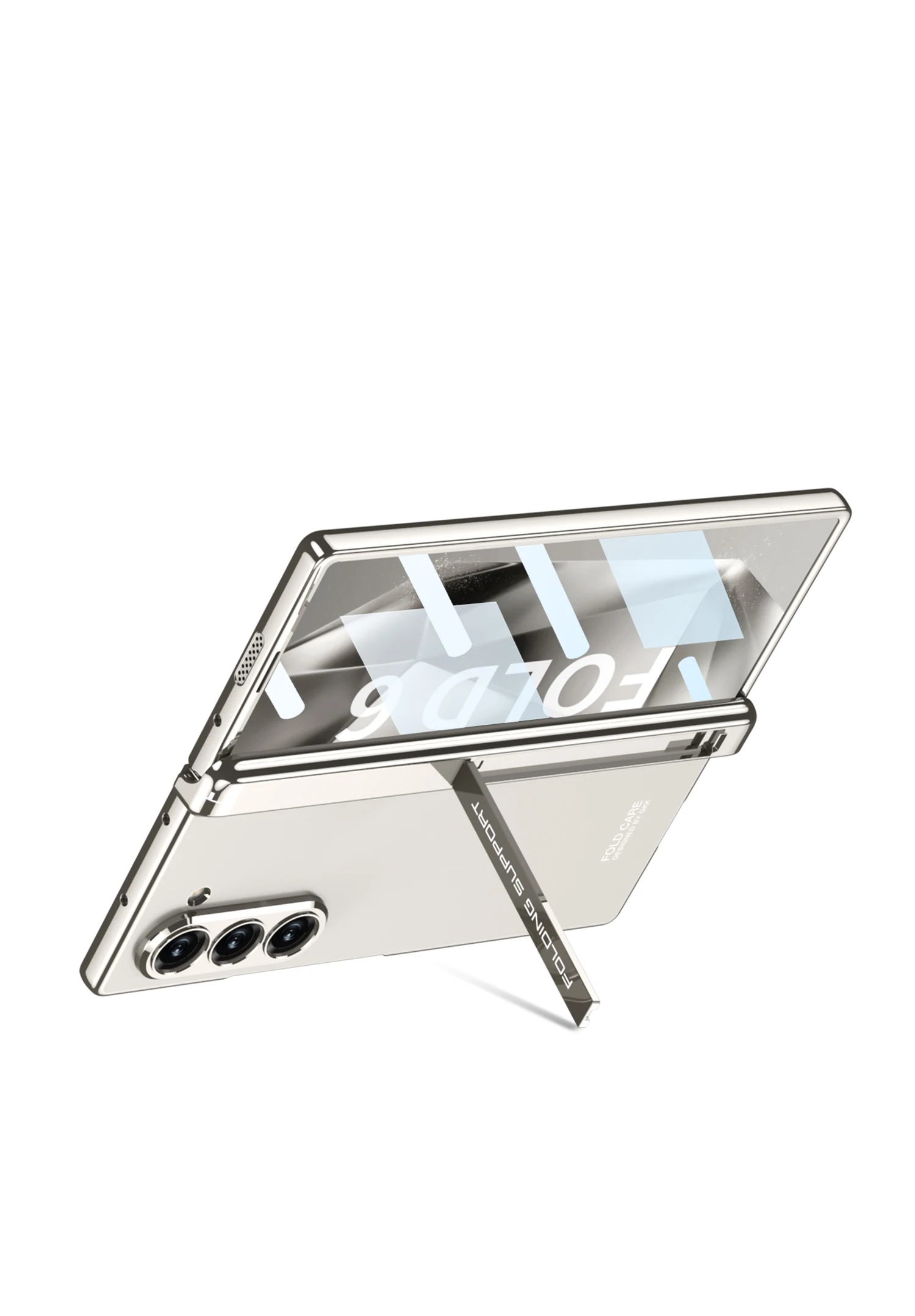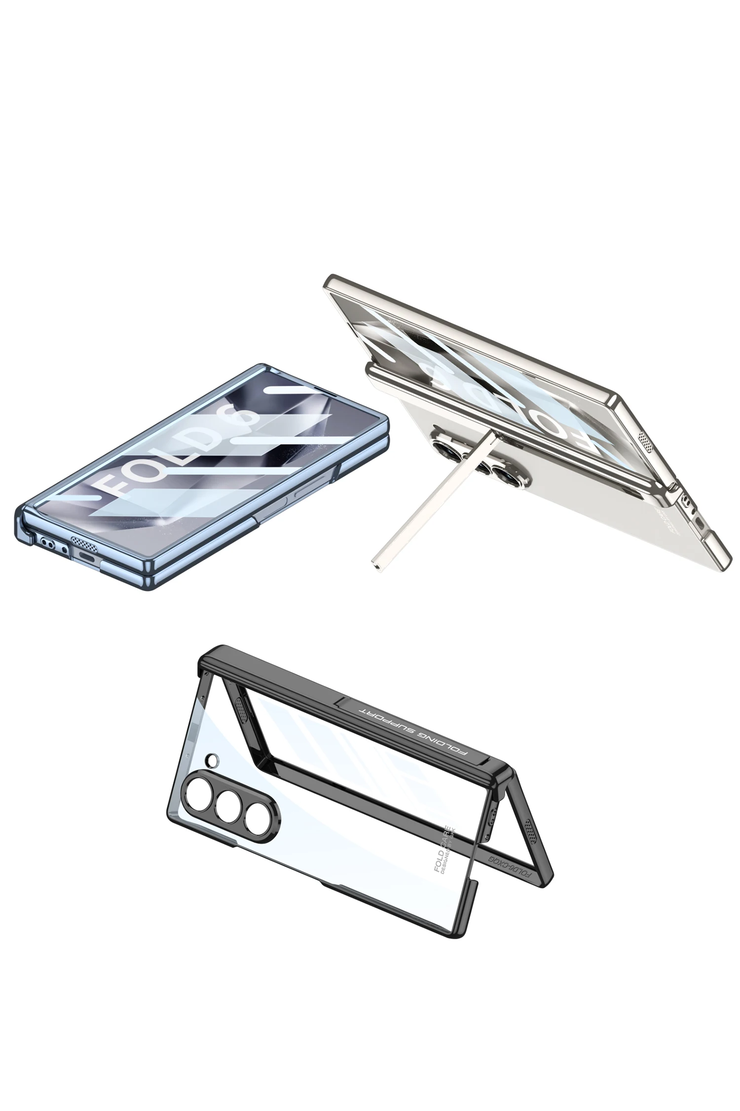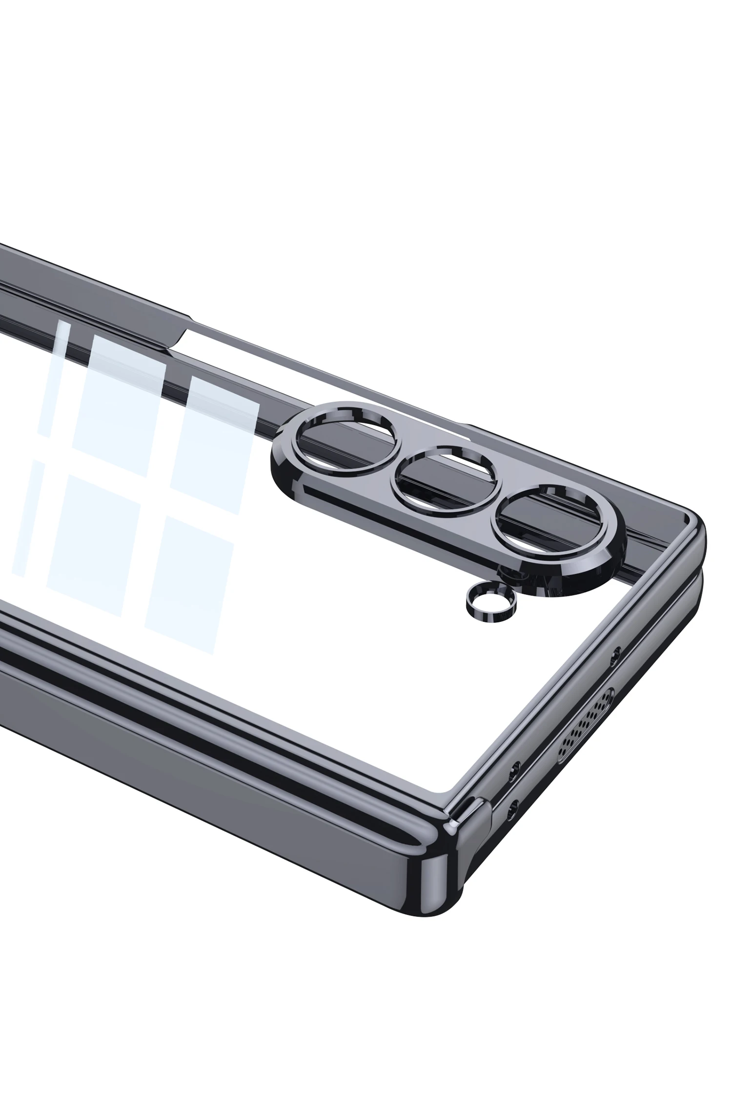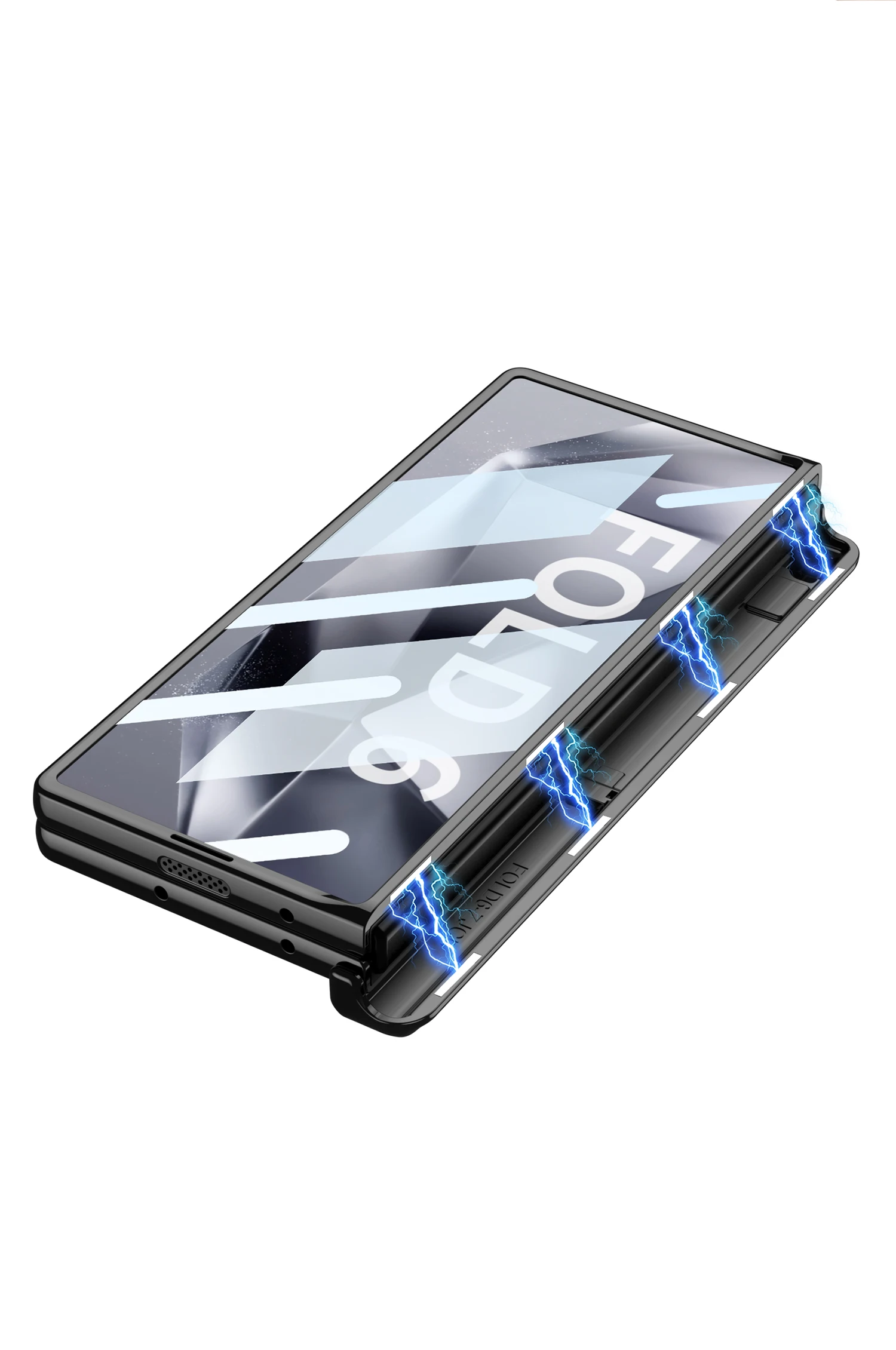 삼성 갤럭시 Z 폴드 6 외부 화면 유리 보호 홀더 커버 갤럭시 Z Fold6 케이스 용 마그네틱 힌지 도금 클리어 케이스