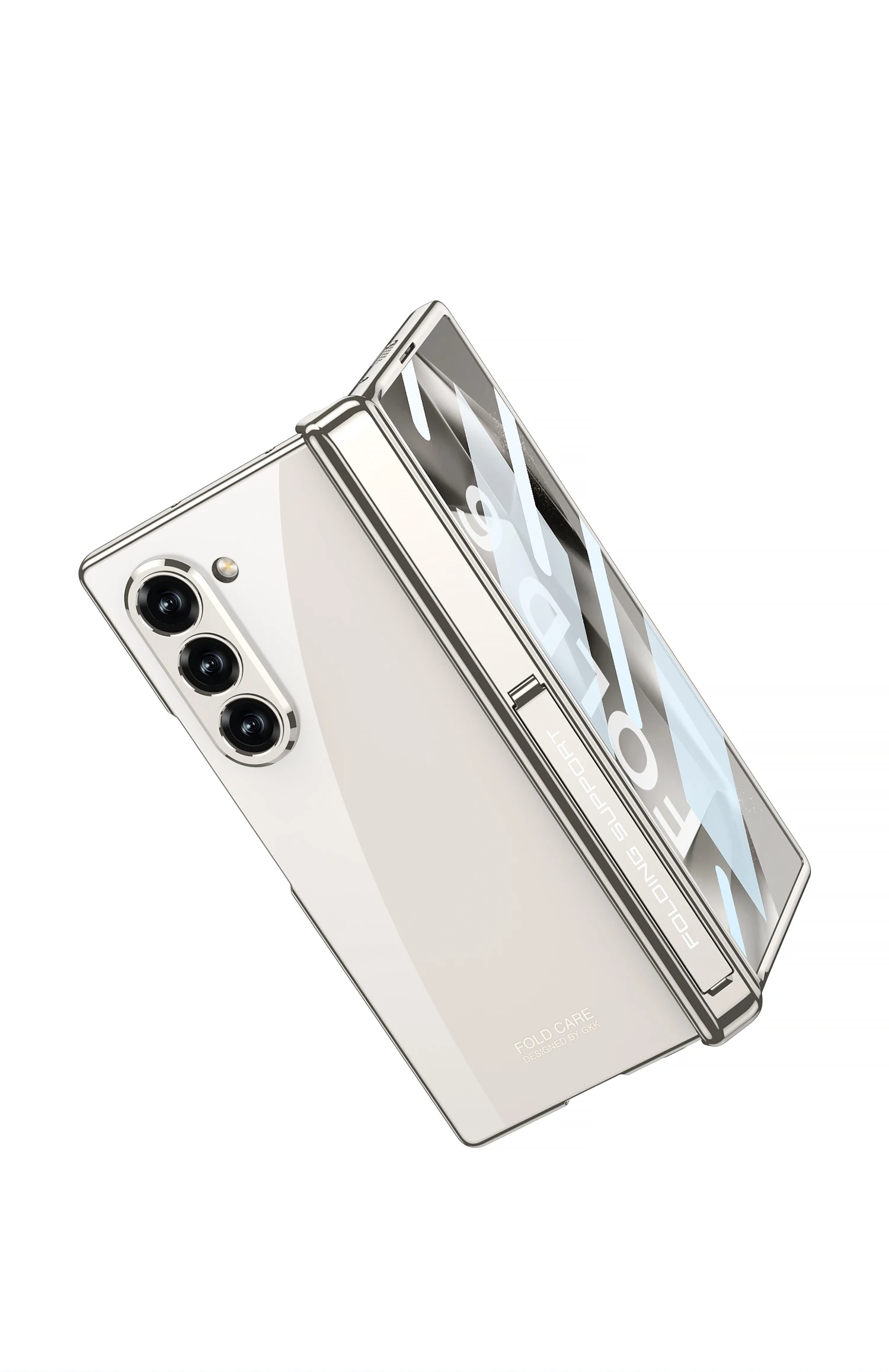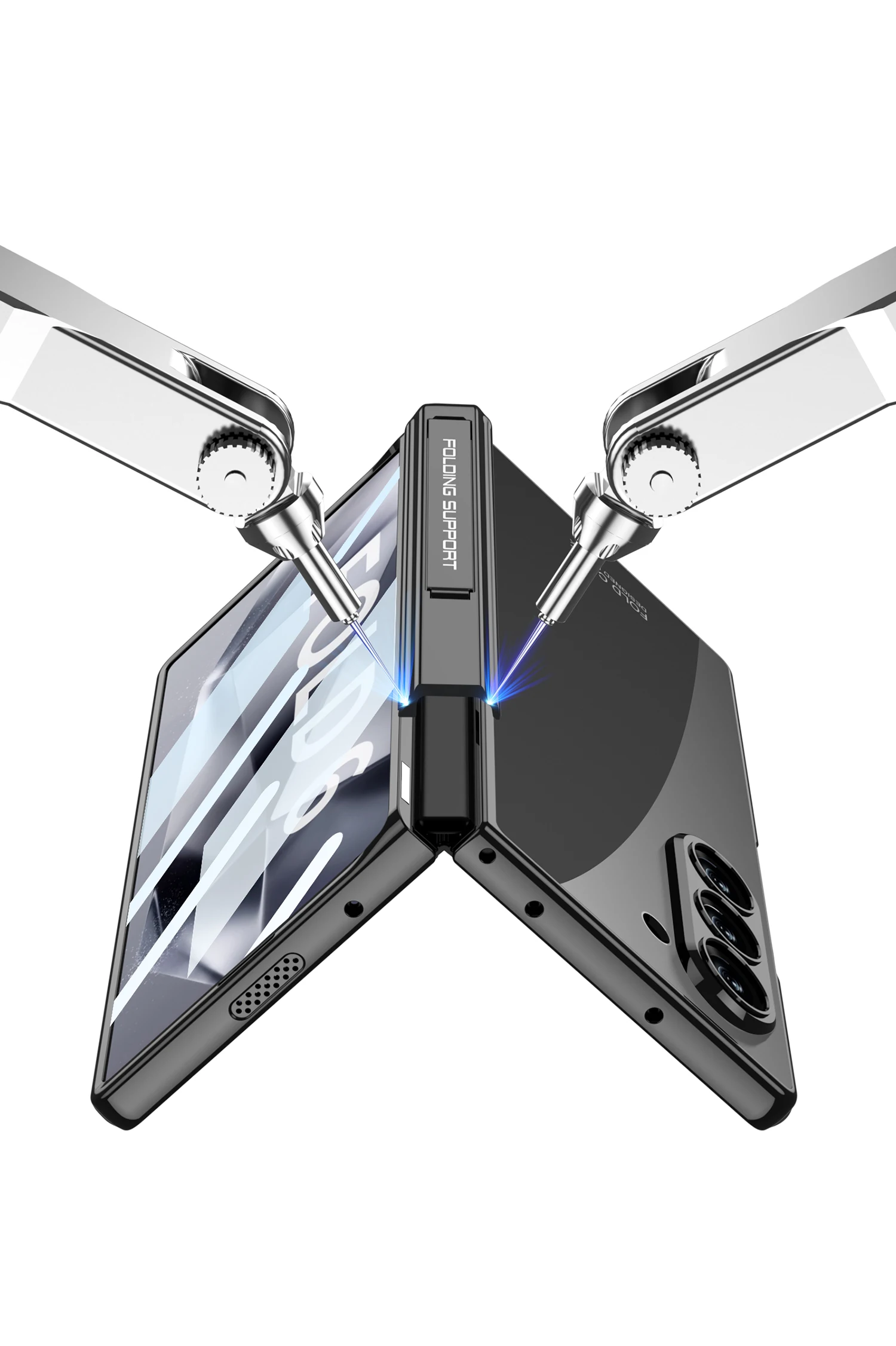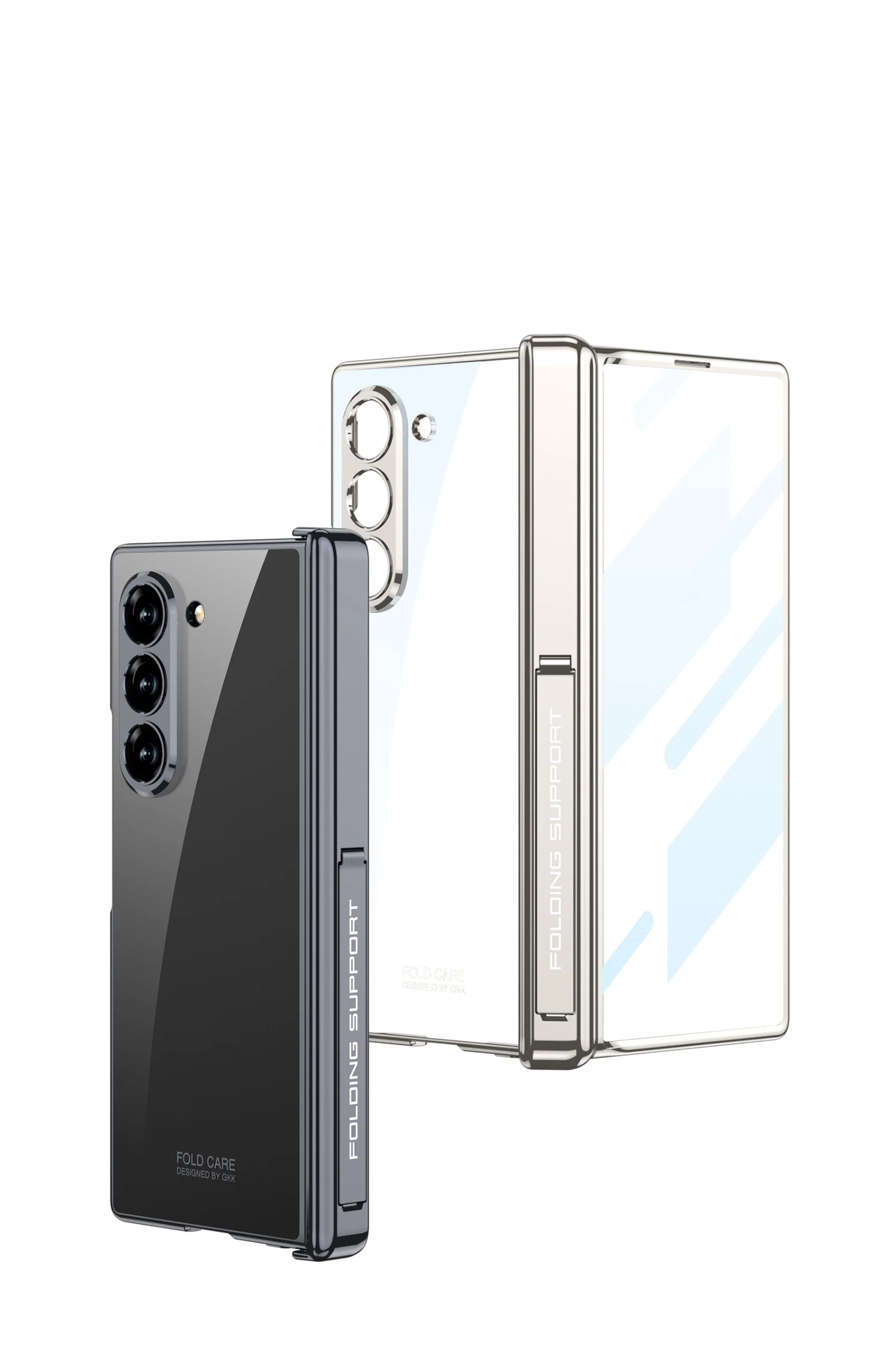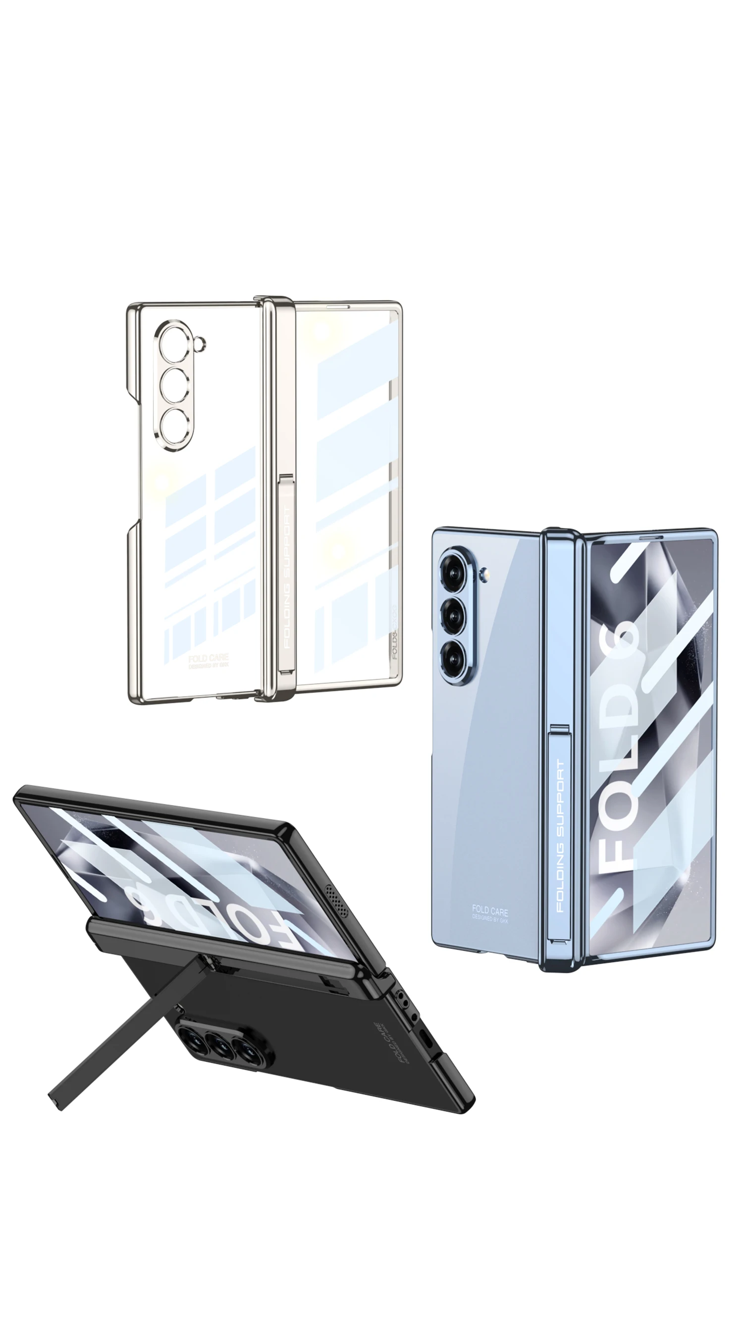 삼성 갤럭시 Z 폴드 6 외부 화면 유리 보호 홀더 커버 갤럭시 Z Fold6 케이스 용 마그네틱 힌지 도금 클리어 케이스