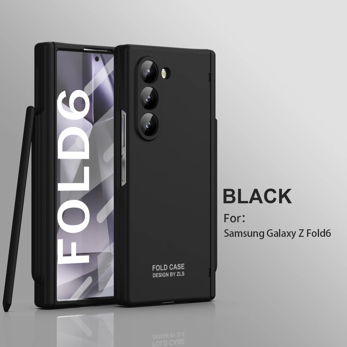 삼성 갤럭시 Z 폴드 6 5 4 3 2 케이스 피부 친화적 매트 접이식 힌지 화면 강화 필름 터치 펜 충격 방지 커