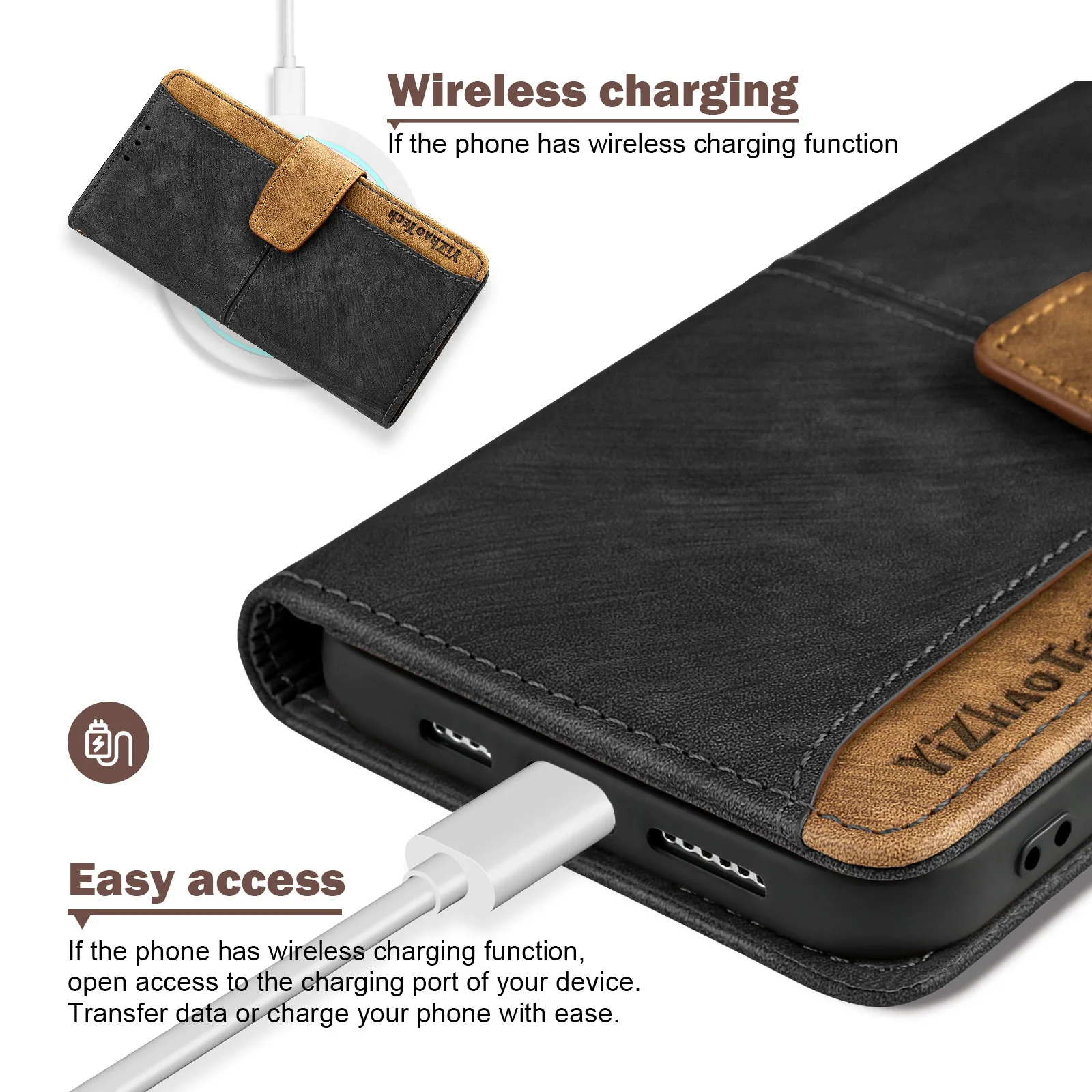 디자인: 마그네틱 걸쇠가있는 다기능 카드 슬롯 지갑 케이스 플립 폰 홀더 북 커버