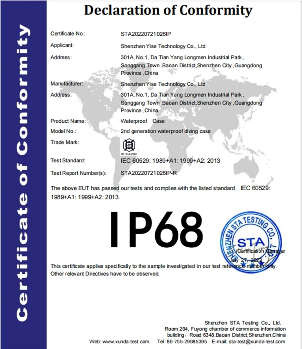 IP68 방수 적합성 인증