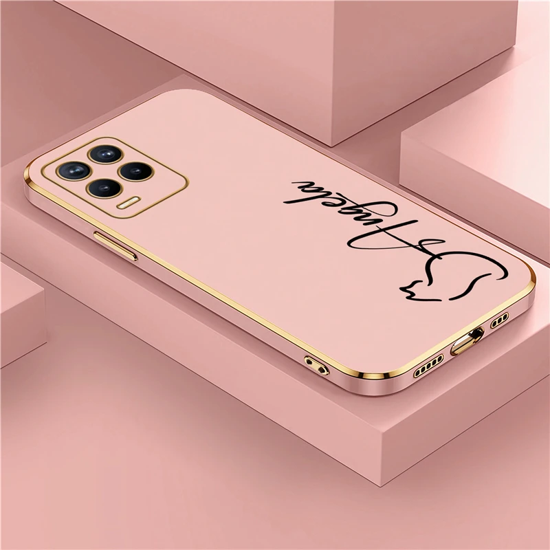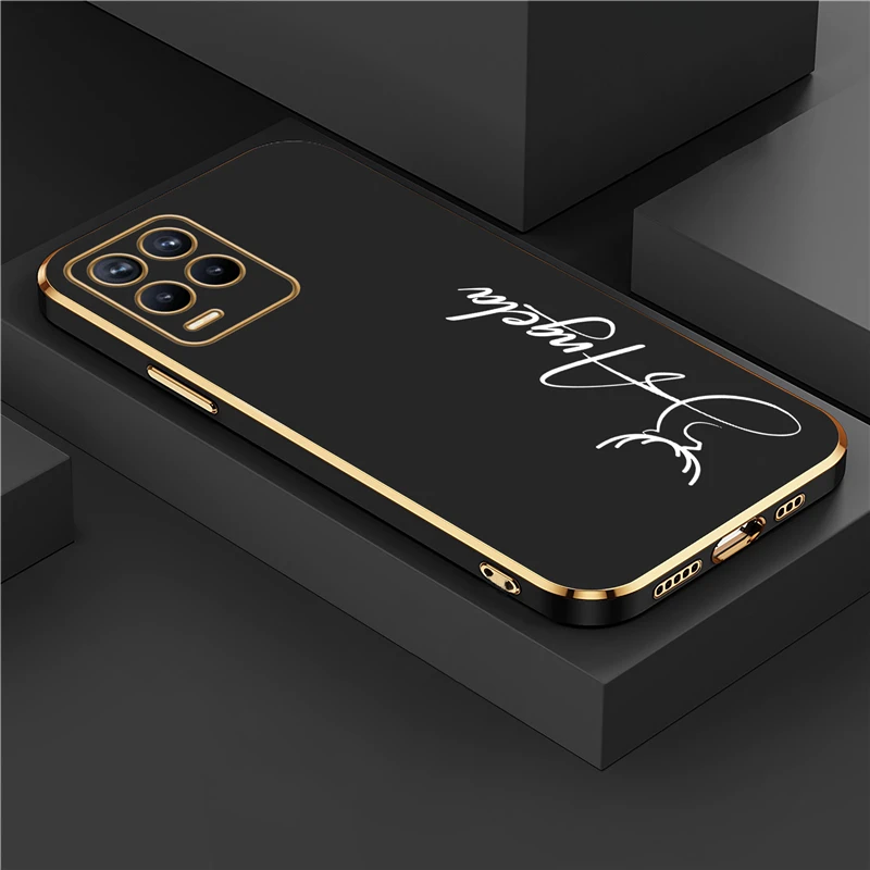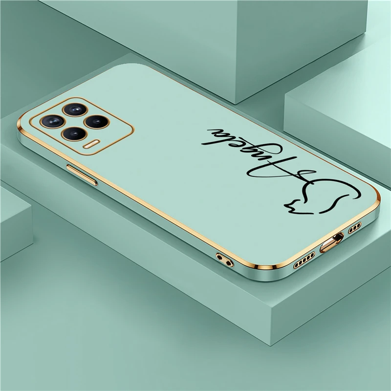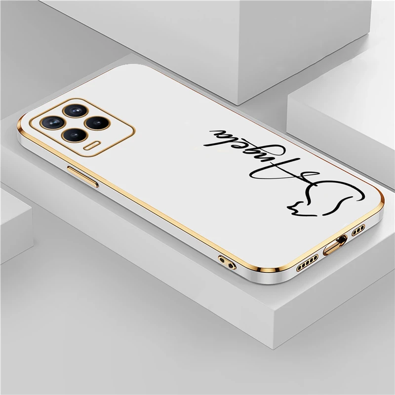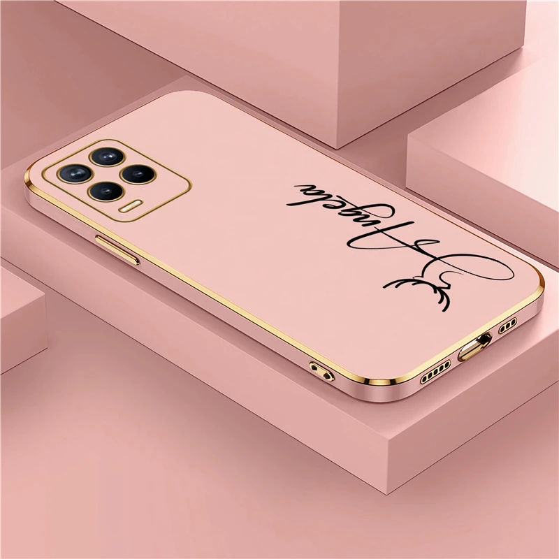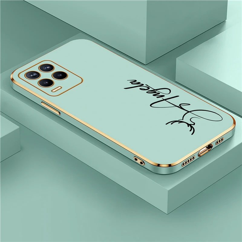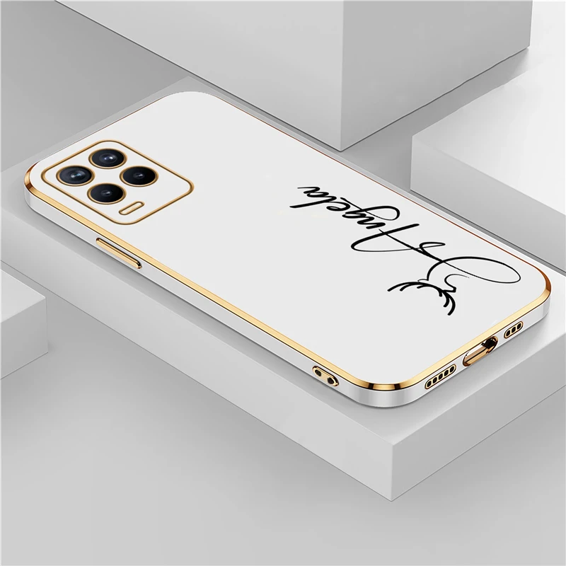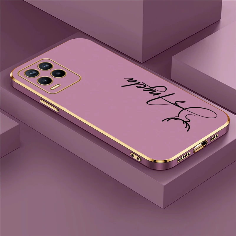 OPPO Realme 8 7 6 3 10 9 Pro 플러스 8i 9i 5i 5s 6s 도금 충격 방지 실리콘 커버에 대한 개인화 된 사용자 정의 이름 DIY 편지 케이스