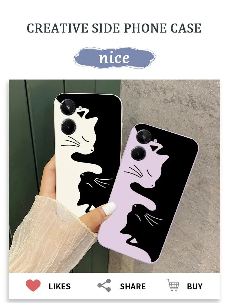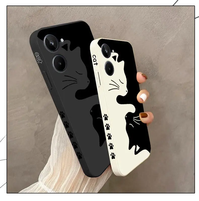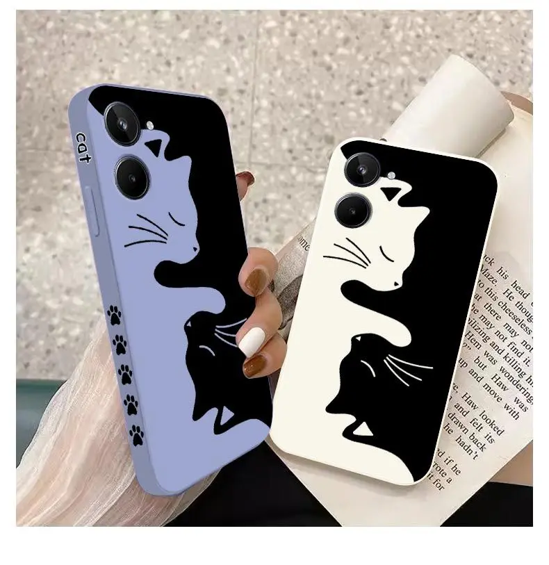 Realme 10 9 9i 8 8i 7 7i 6 프로 플러스 C35 C30 C31 C25S C20 C21Y 커버에 대한 포옹 새끼 고양이 실리콘 전화 케이스