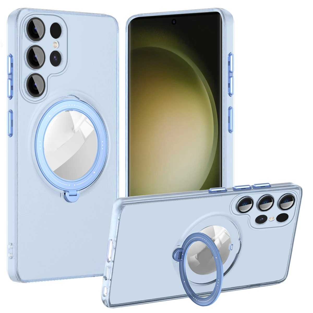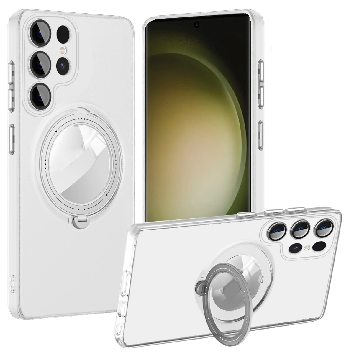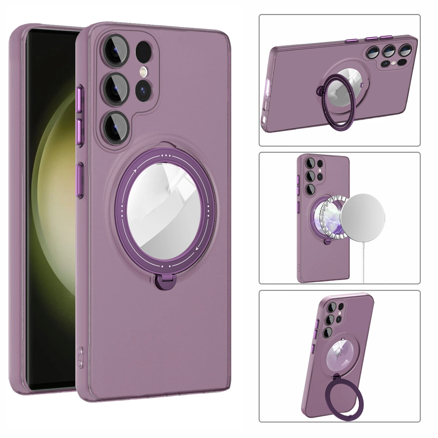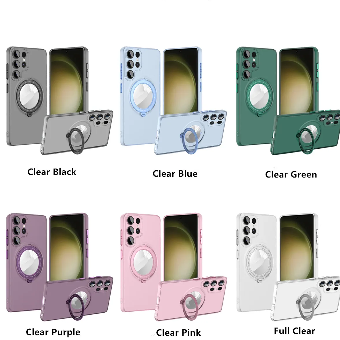 삼성 S22 울트라 S23 플러스 갤럭시 S24 울트라 S22 플러스 투명 접이식 스탠드 홀더 커버 용 매트 투명 Magsafe 마그네틱 케이스