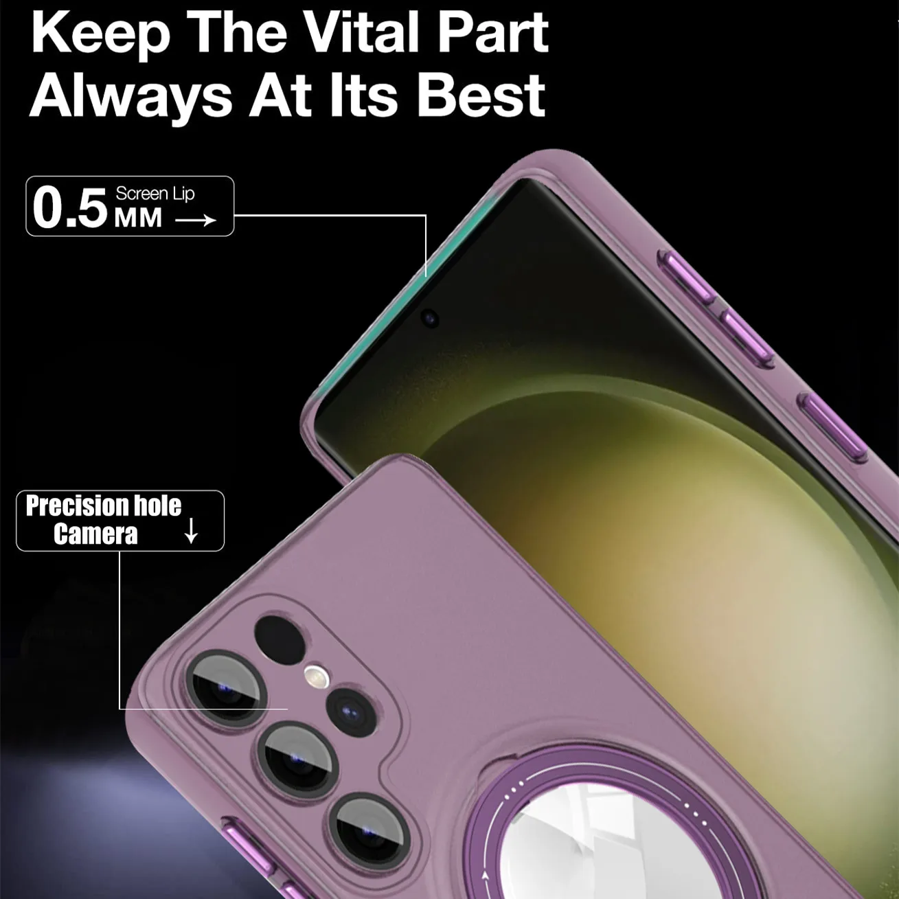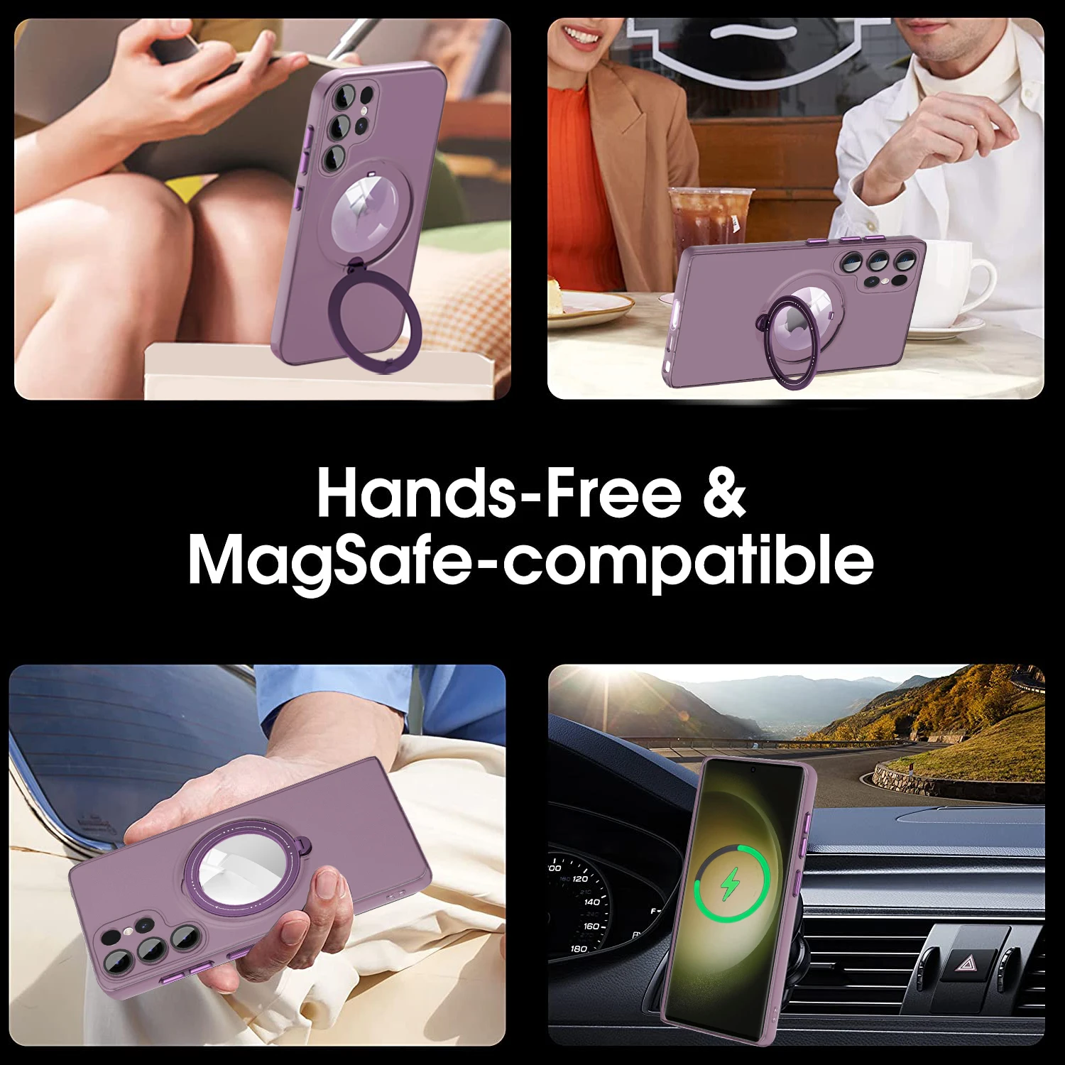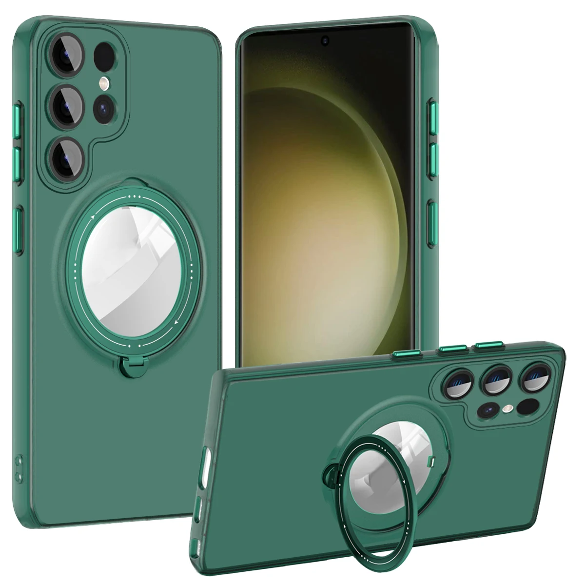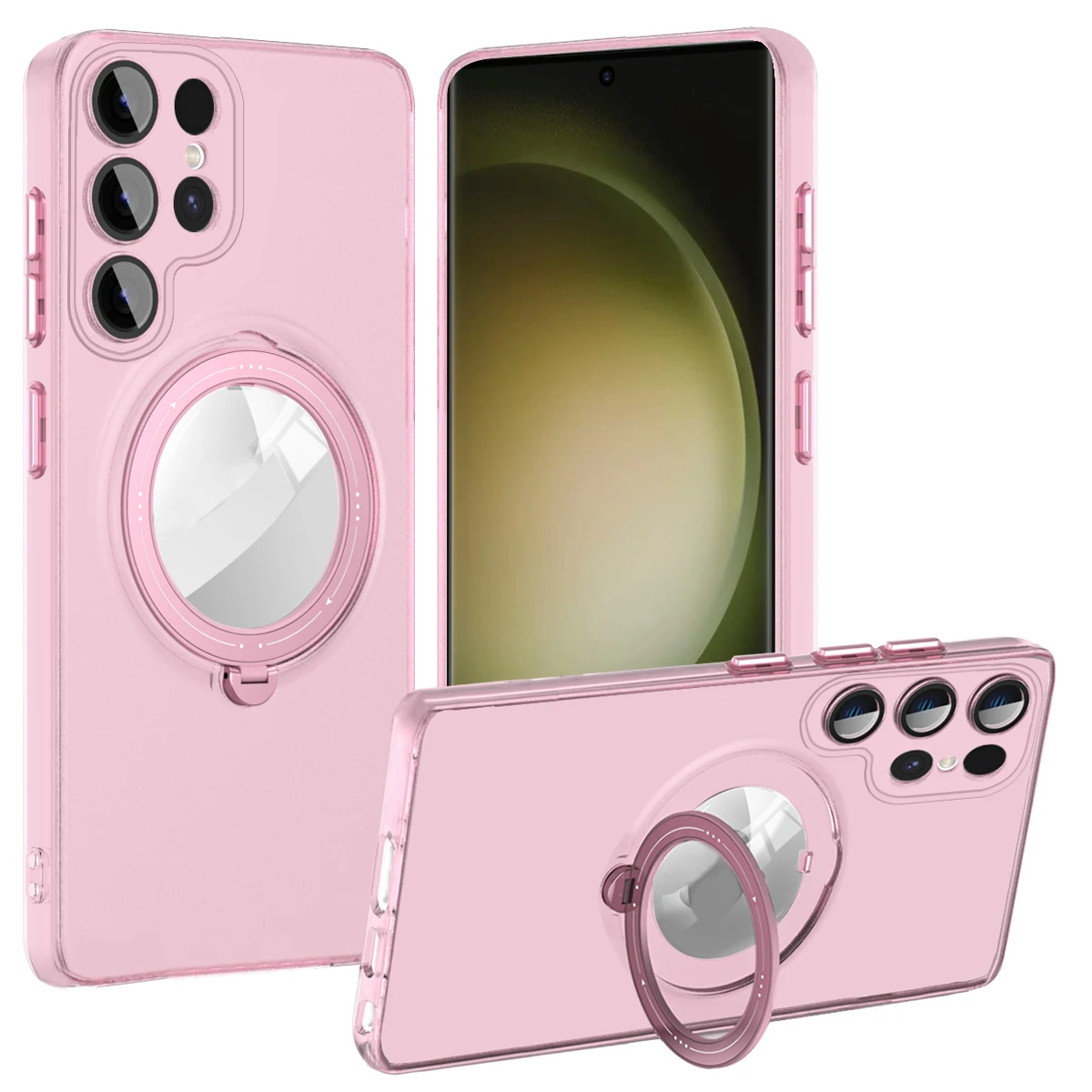 삼성 S22 울트라 S23 플러스 갤럭시 S24 울트라 S22 플러스 투명 접이식 스탠드 홀더 커버 용 매트 투명 Magsafe 마그네틱 케이스