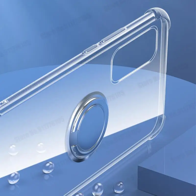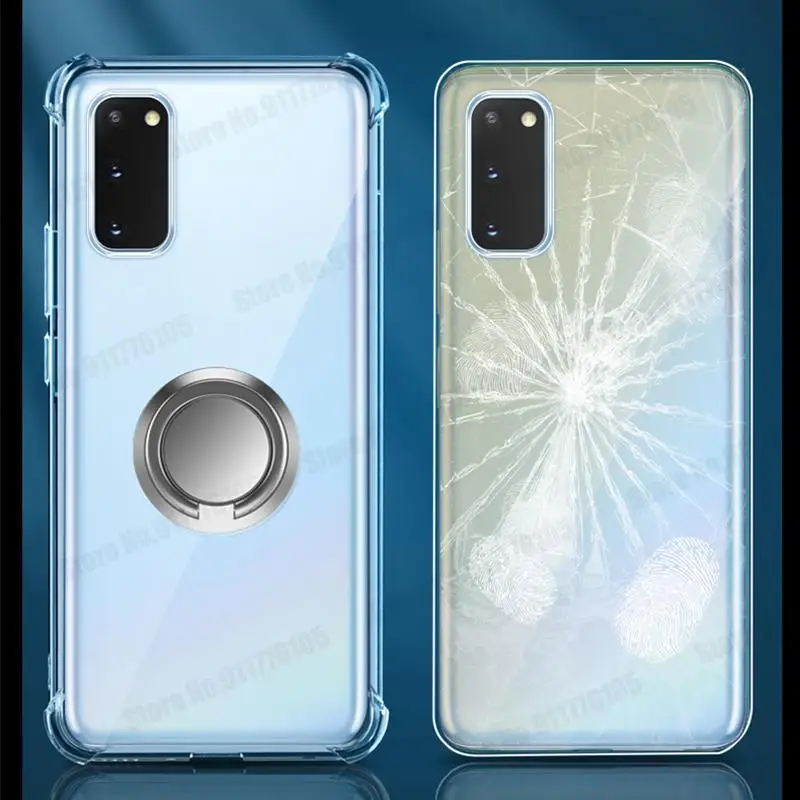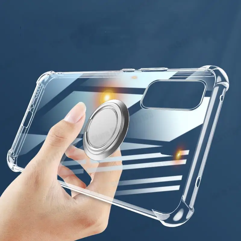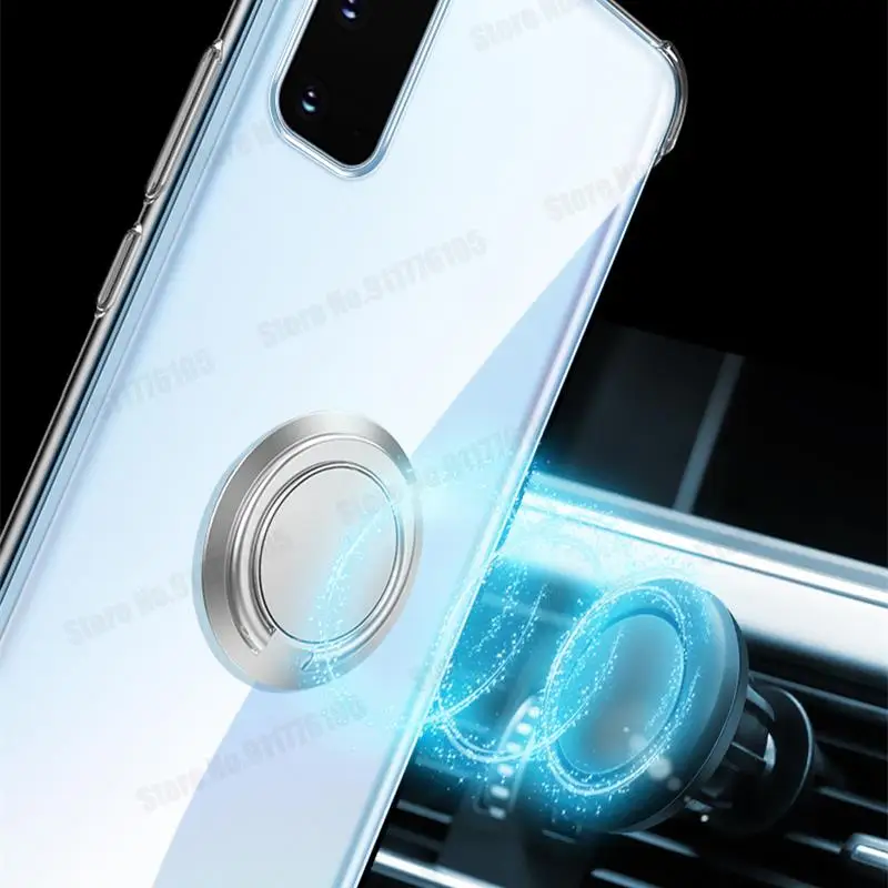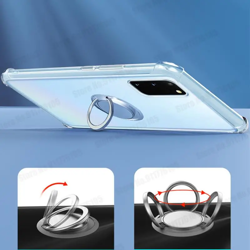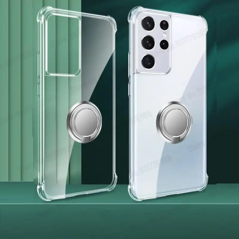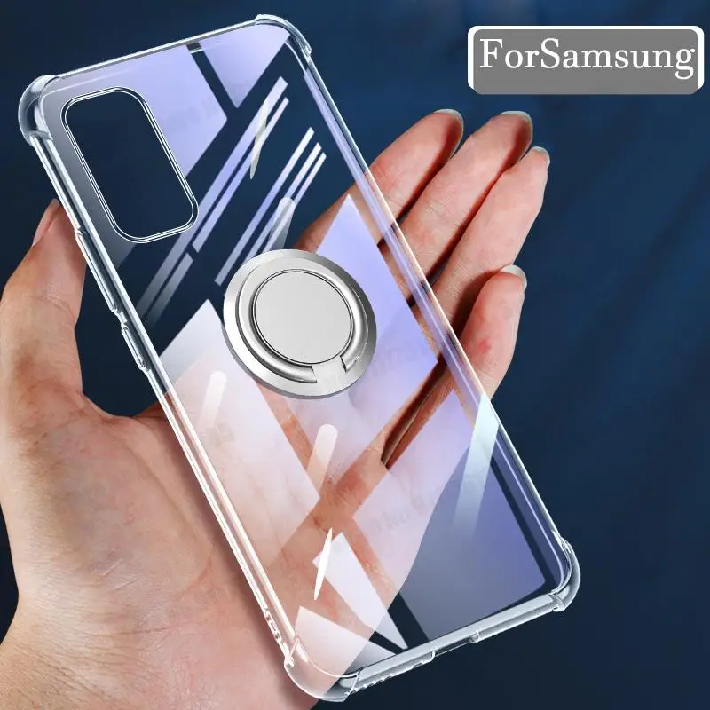 삼성 S22 S21 갤럭시 S21 FE S20 라이트 노트 20 울트라 S10 5G S9 플러스 링 스탠드 커버 용 울트라 클리어 폰 충격 방지 케이스