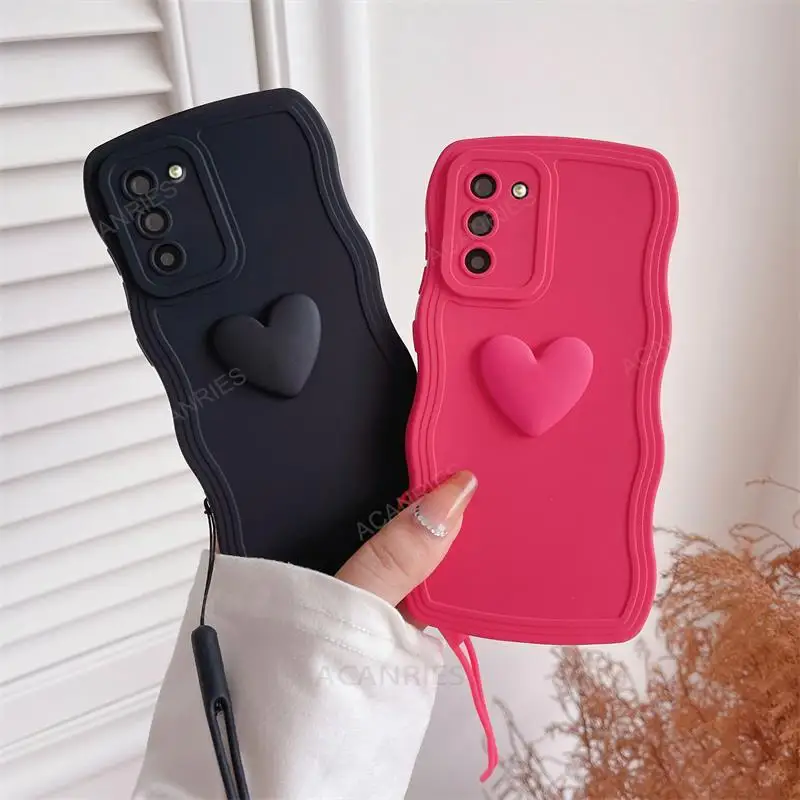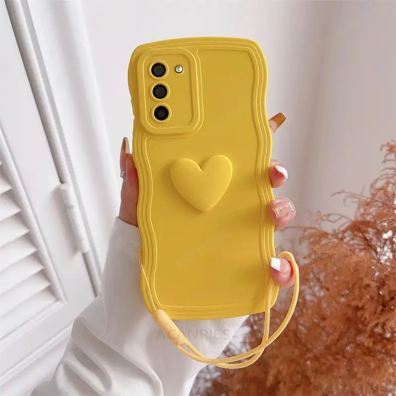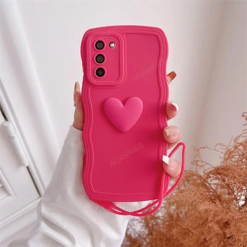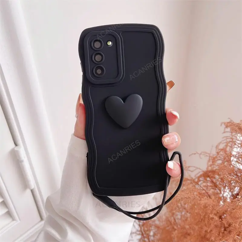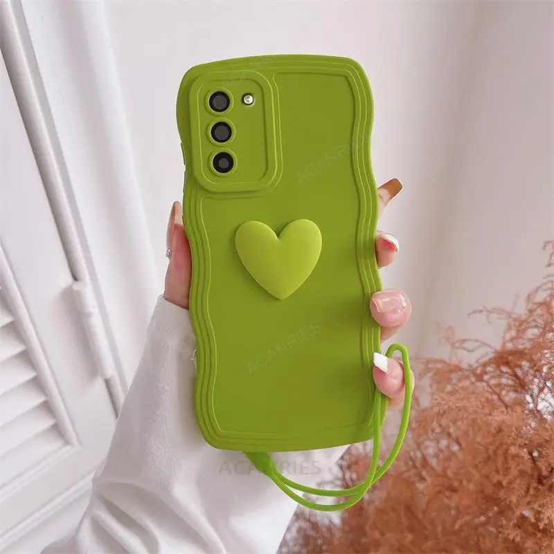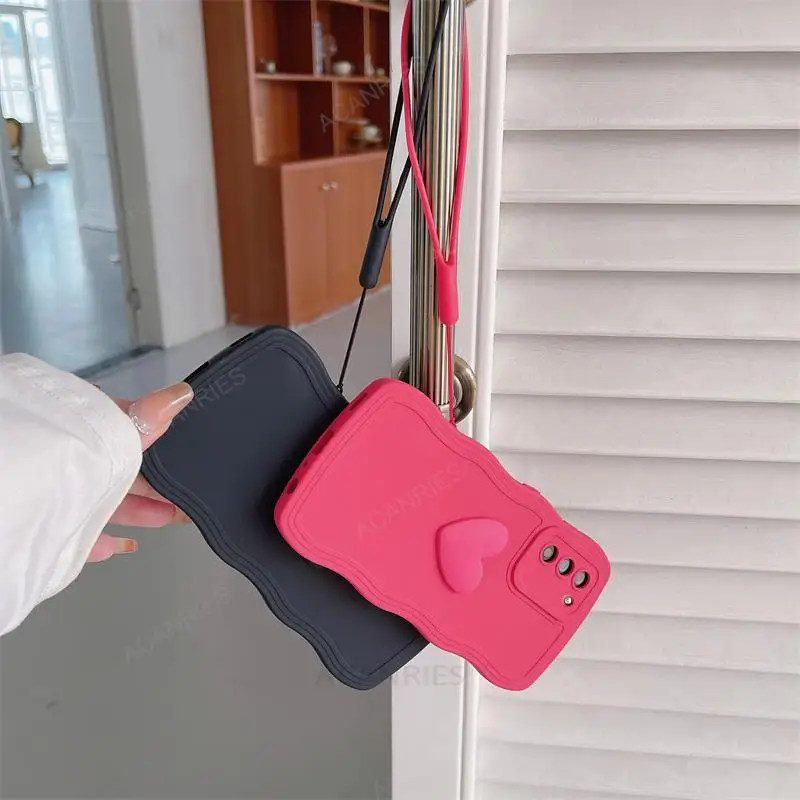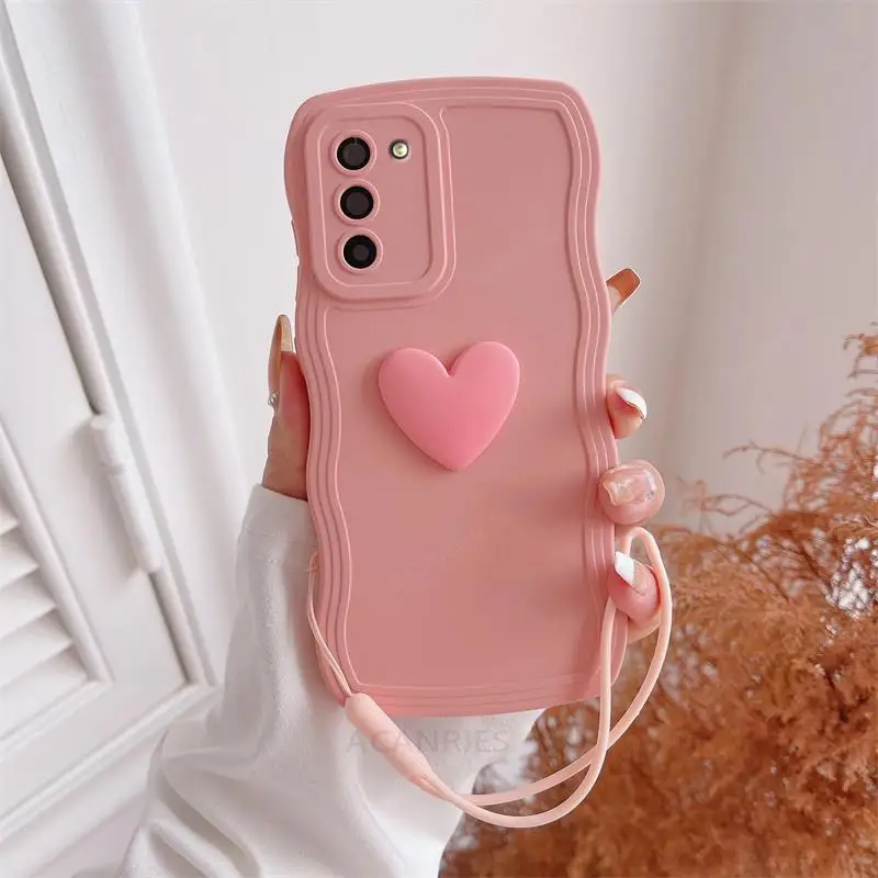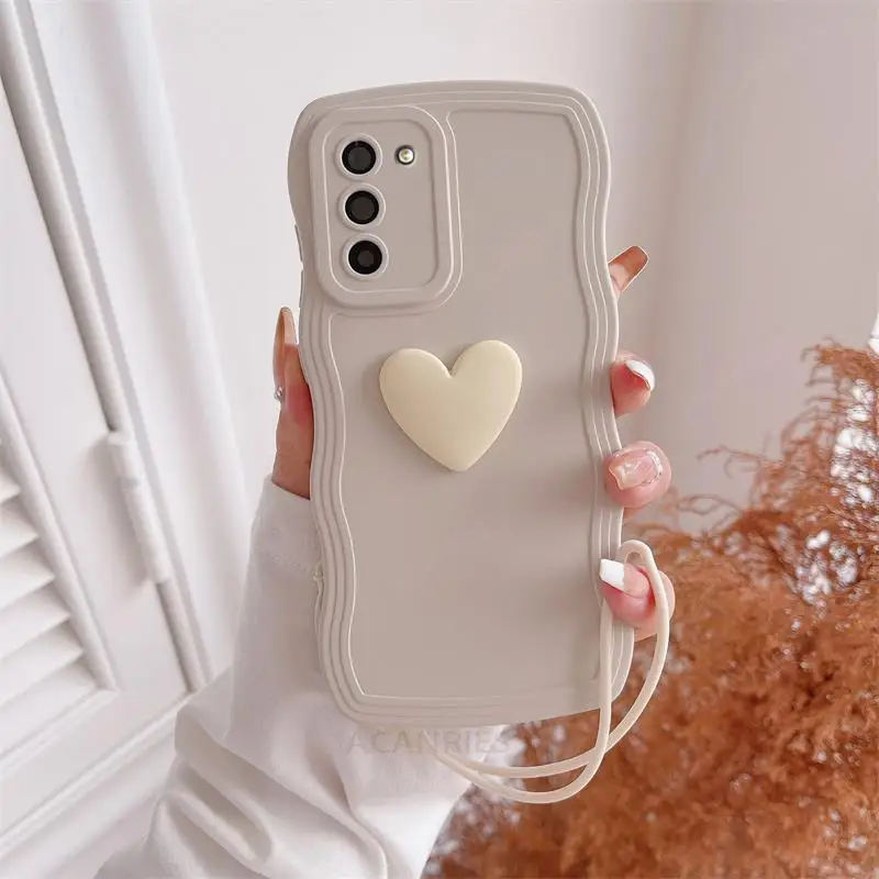 S 21 23 22 사랑 하트 물결 모양의 손목 스트랩 실리콘 케이스 삼성 갤럭시 S23 S21 S22 플러스 울트라 S20 Fe S21fe 랜야드 커버 S20fe