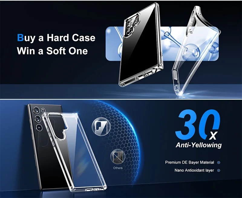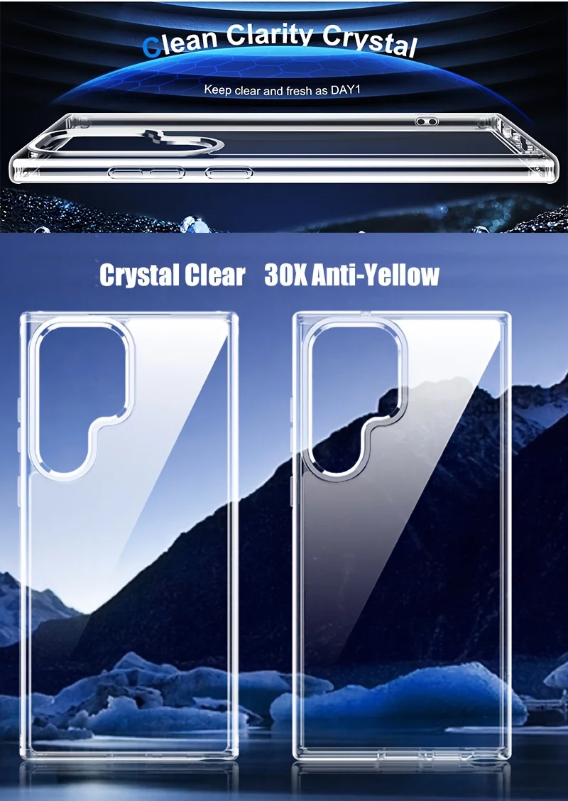 삼성 갤럭시 S23 S24 울트라 플러스 22 용 투명 휴대폰 케이스 부드러운 범퍼 후면 커버 하드 PC