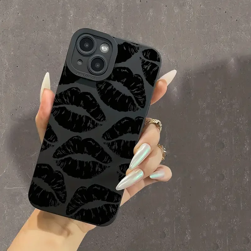 고딕 스타일 블랙 립 폰 케이스 삼성 갤럭시 A14 A34 A54 A13 A33 A53 A32 A52 S24 S23 울트라 S22 플러스