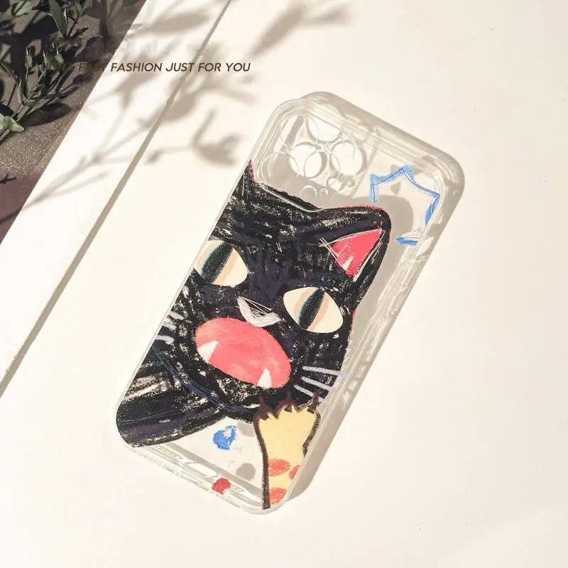 낙서 앵글 캣 케이스 삼성 갤럭시 S23 플러스 S22 울트라 S24 S21 S23 S20 FE A05 A05S A54 A14 M23 충격