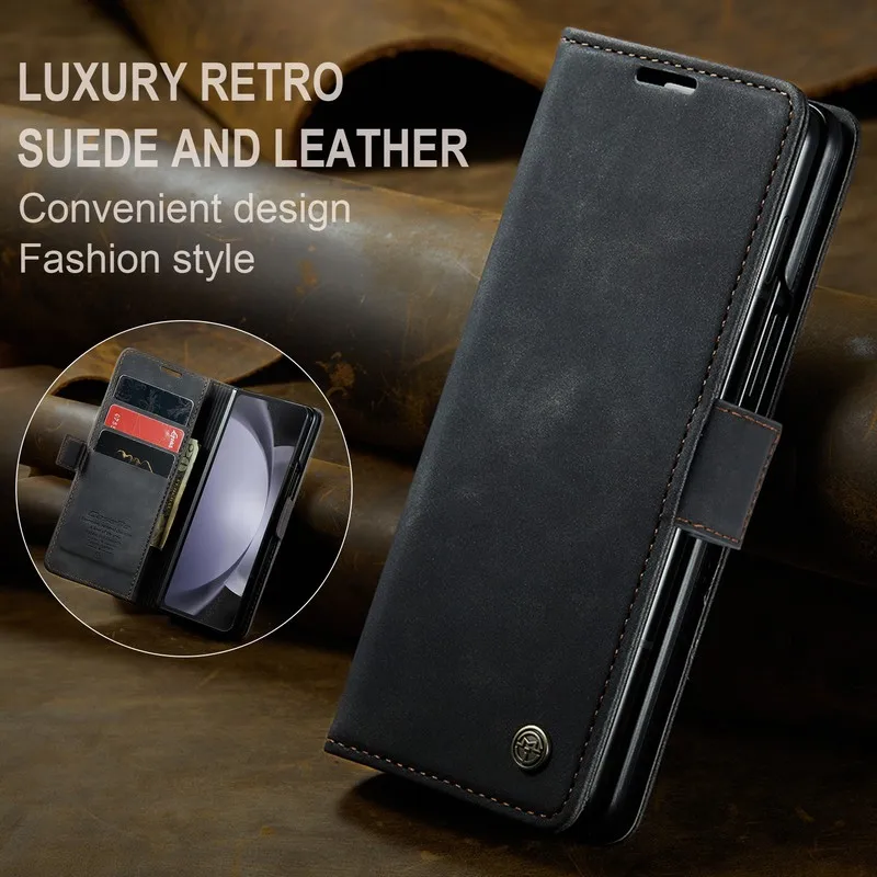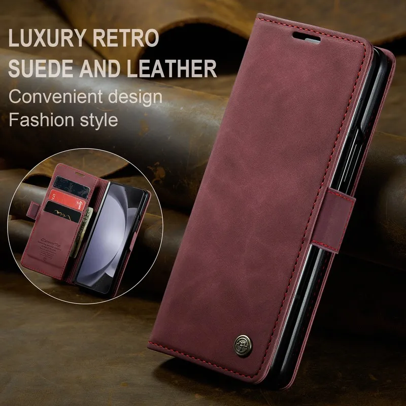 삼성 갤럭시 Z 폴드 5 케이스 커버 럭셔리 매트 마그네틱 버클 가죽 지갑 Zfold 5 플립 커버에 충격 방지 전화 가방