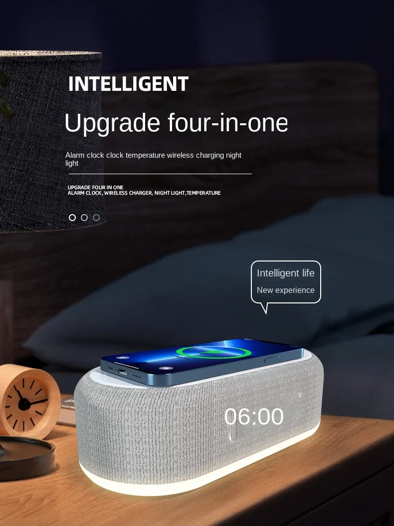 소형 야간 램프 알람 시계 무선 충전기 전기 시계 올인원 무선 충전기 4 인 1