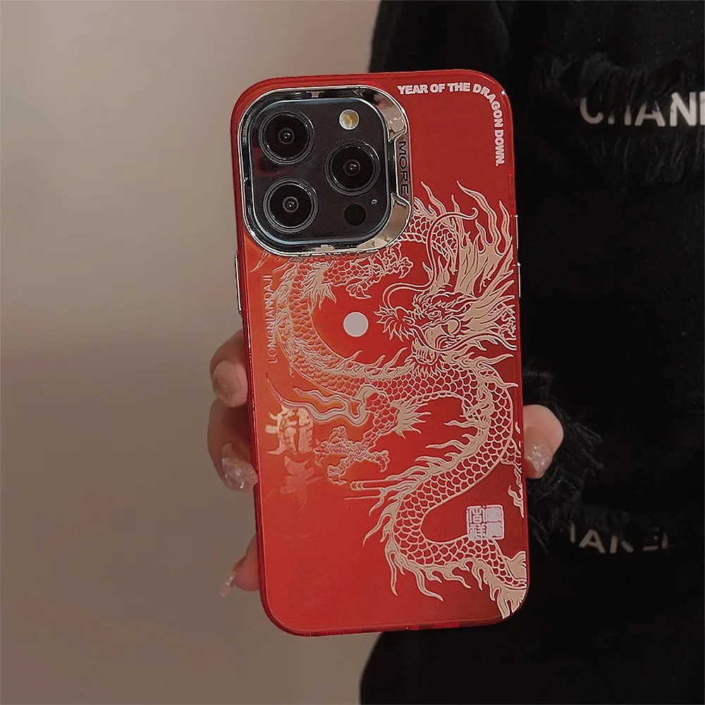 드래곤 2024 해피 뉴 이어 쉘 아이폰 11 12 프로 맥스 15 플러스 14 13 프로 맥스 릴리프 3D 풍부한 행운의
