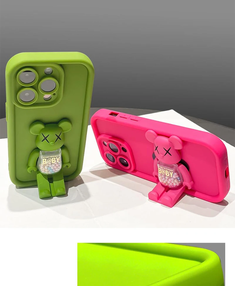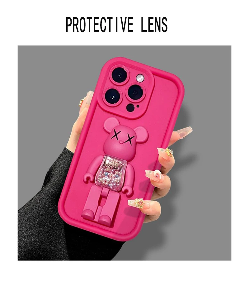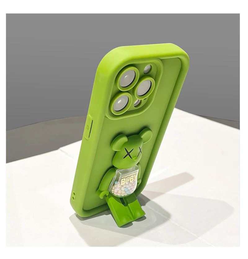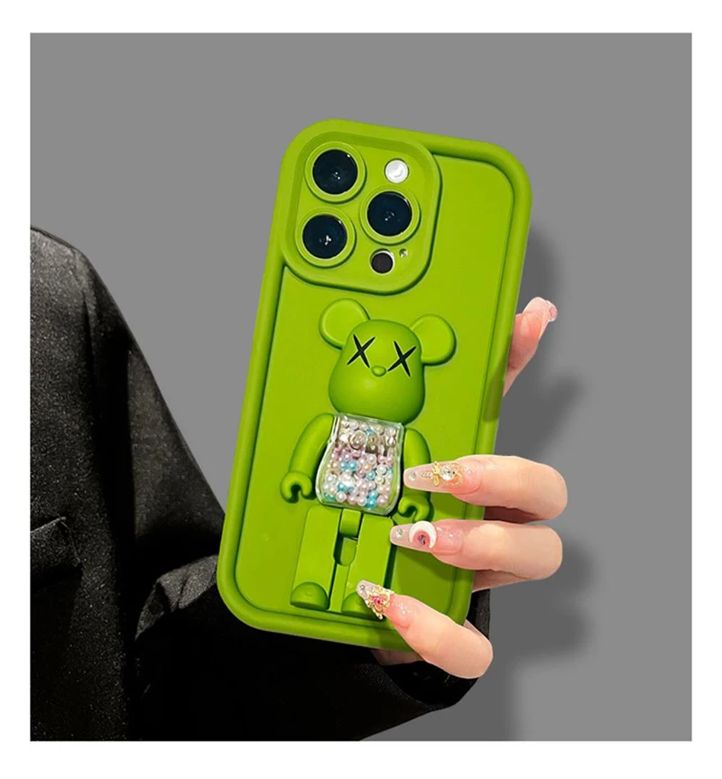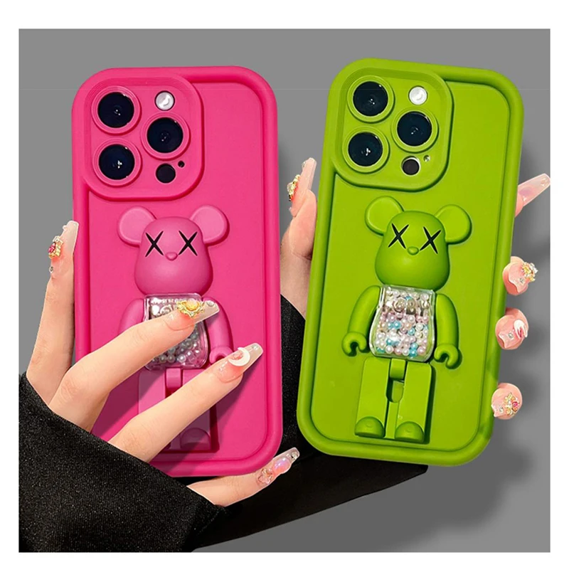 귀여운 3D 곰 브래킷 TPU 휴대폰 케이스 아이폰 15 14 13 12 11 프로 맥스 XR XS X 8 7 플러스 SE 2020 실