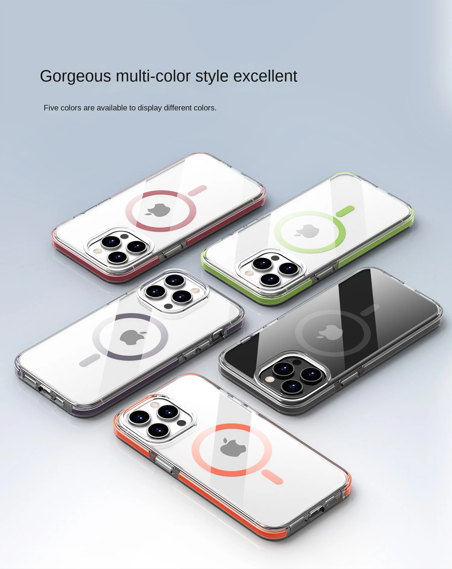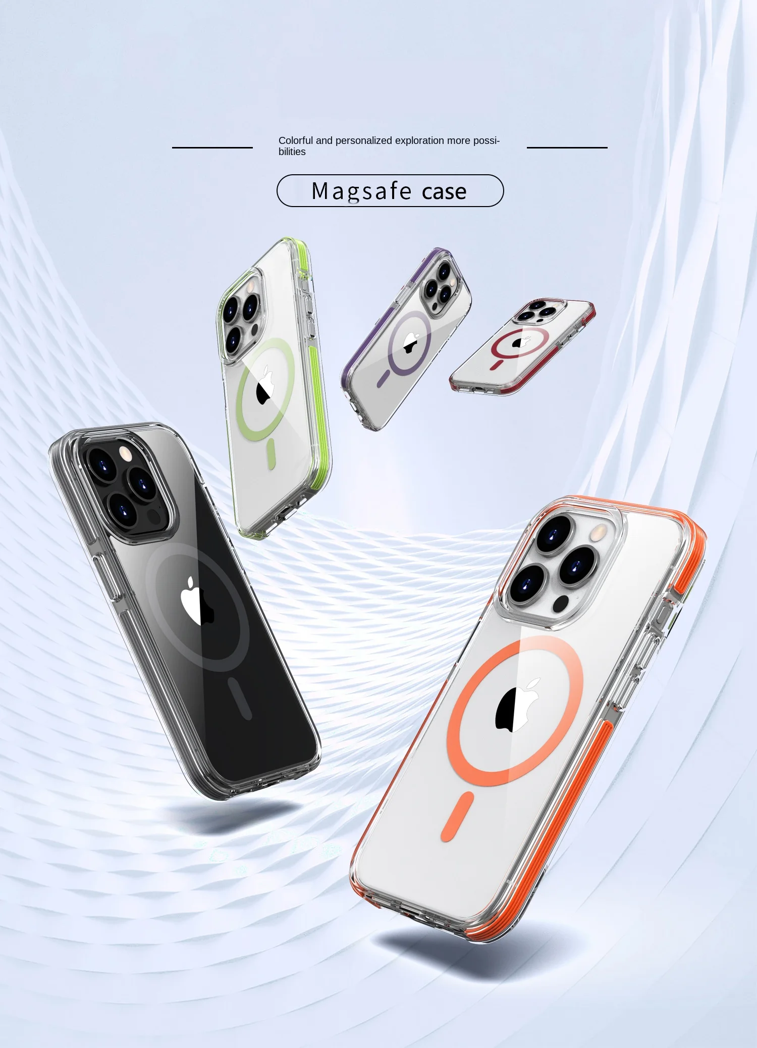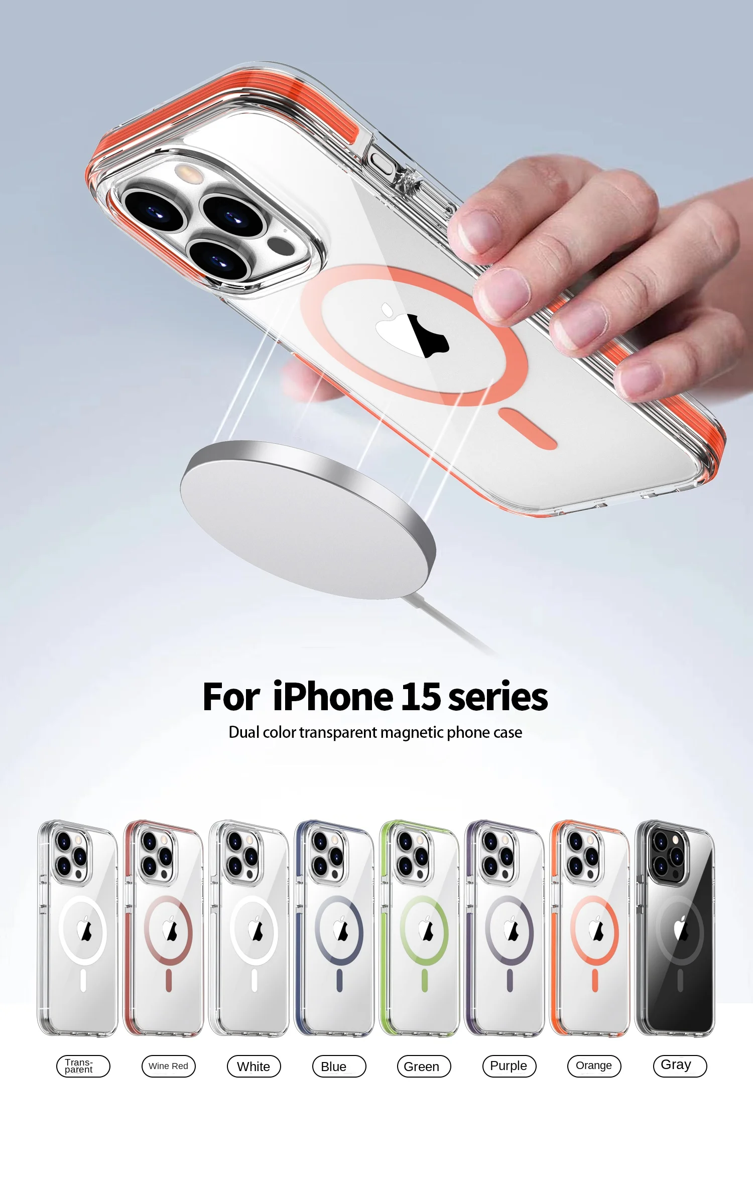 IPhone 15 14 Pro Max 15 Plus HD 컬러 프레임 Magsafe 무선 충전 충격 방지 커버 용 투명 마그네틱 소프트 폰 케이스