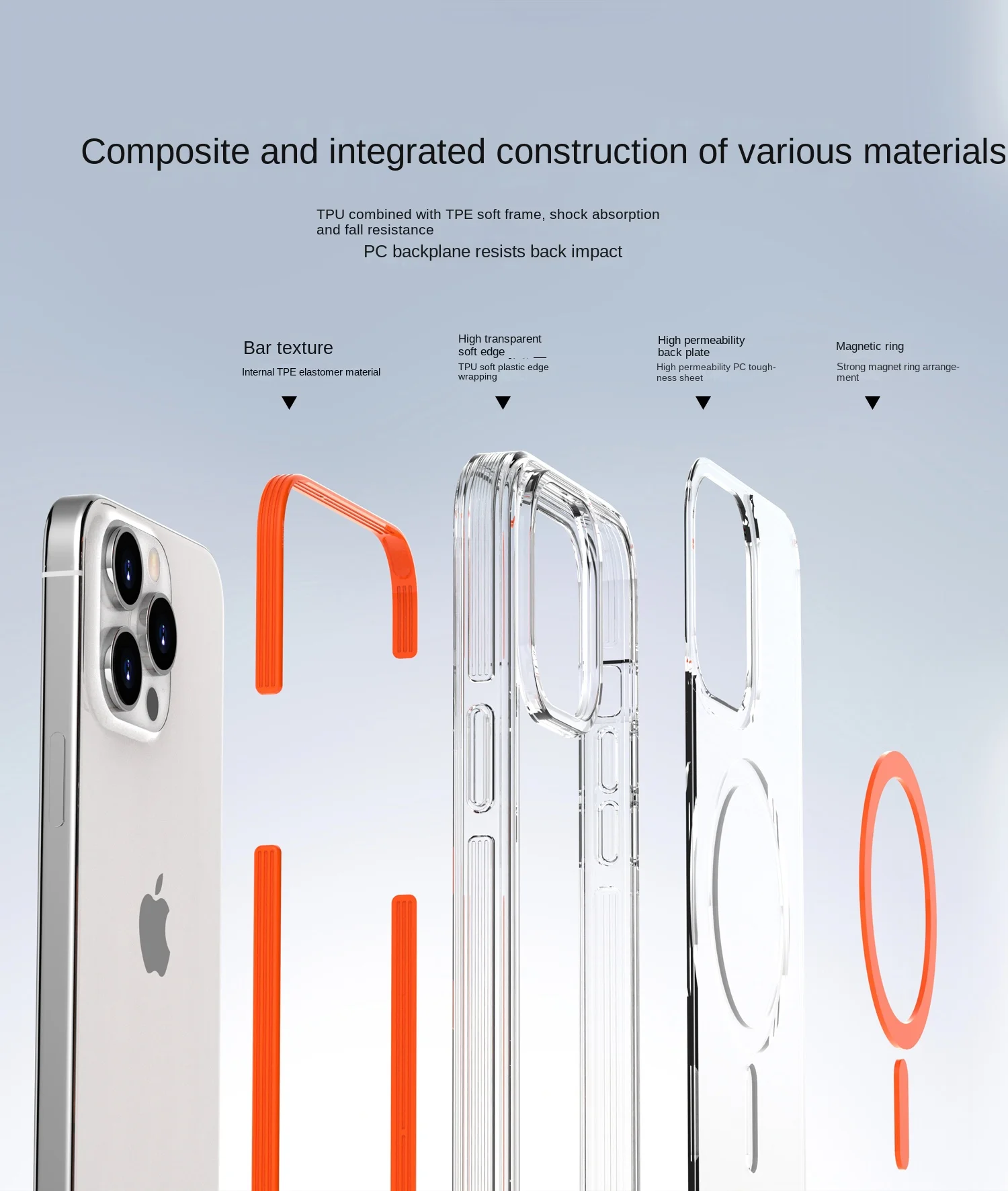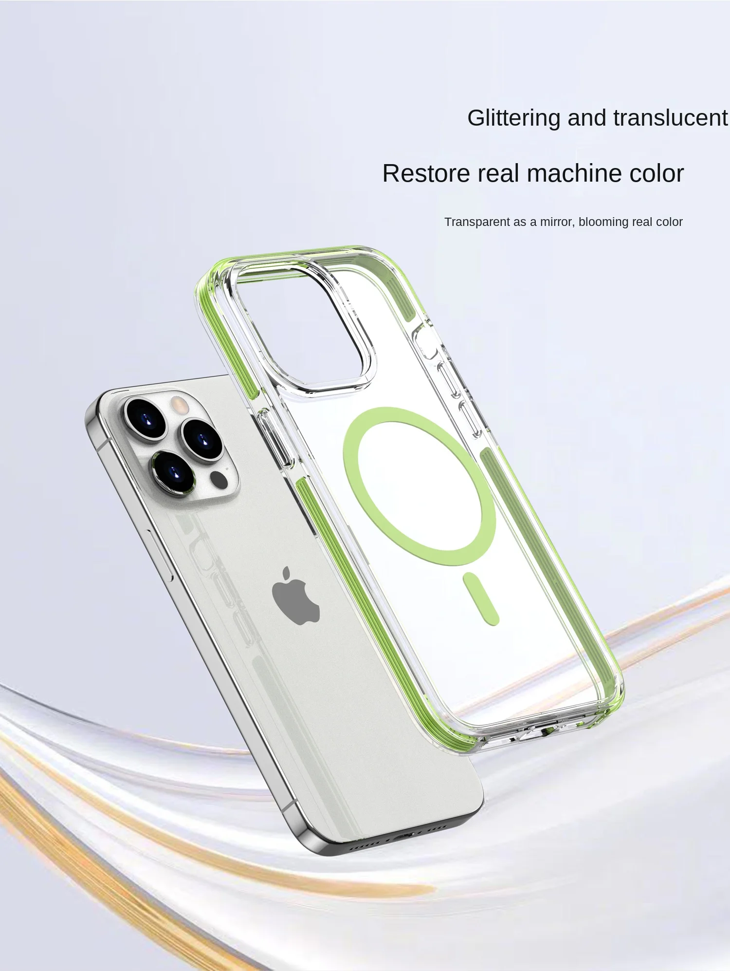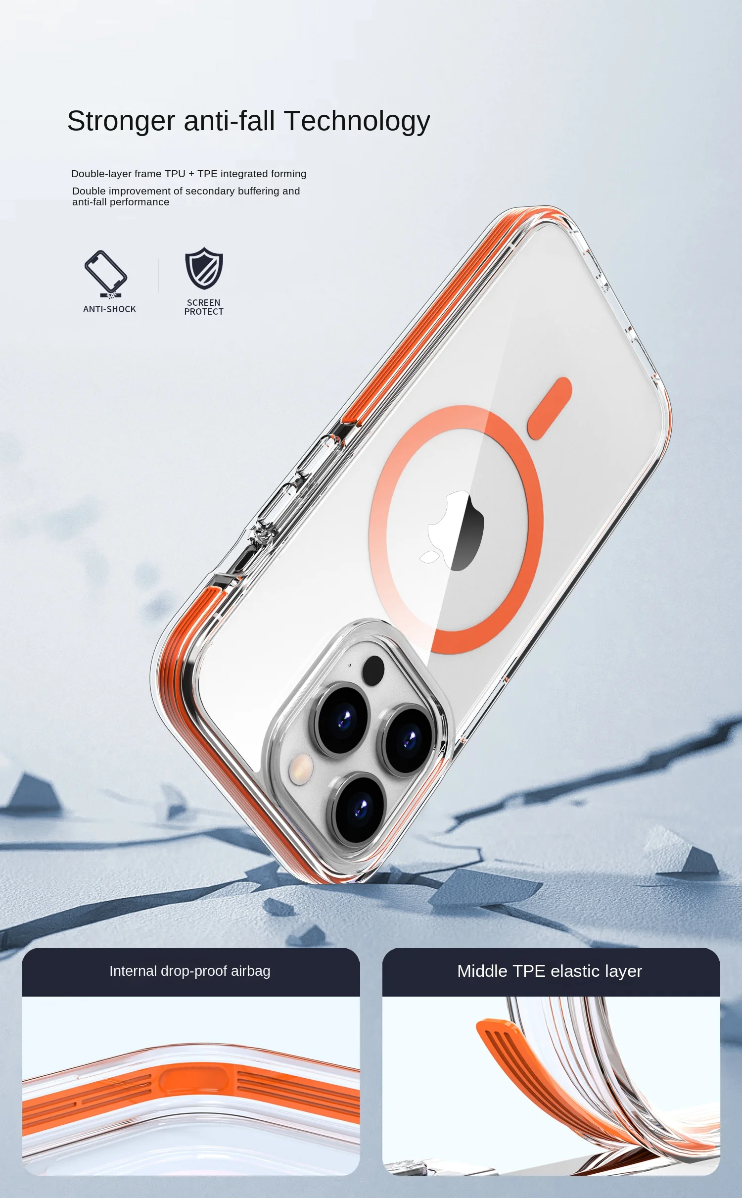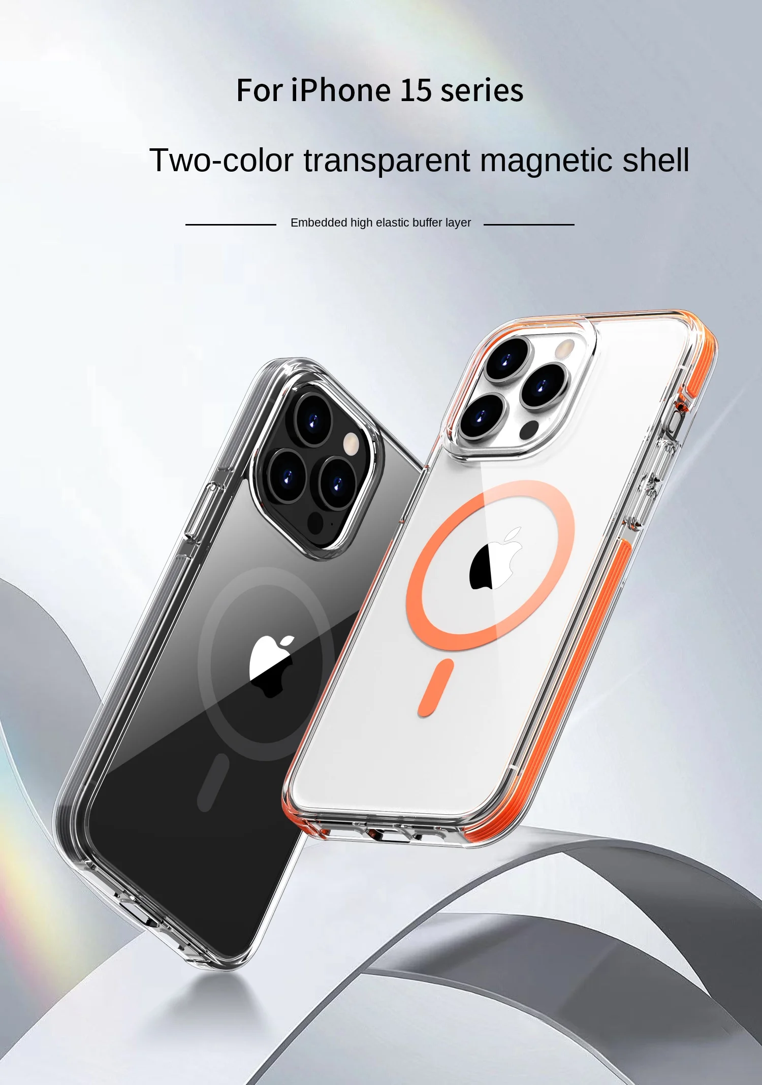IPhone 15 14 Pro Max 15 Plus HD 컬러 프레임 Magsafe 무선 충전 충격 방지 커버 용 투명 마그네틱 소프트 폰 케이스