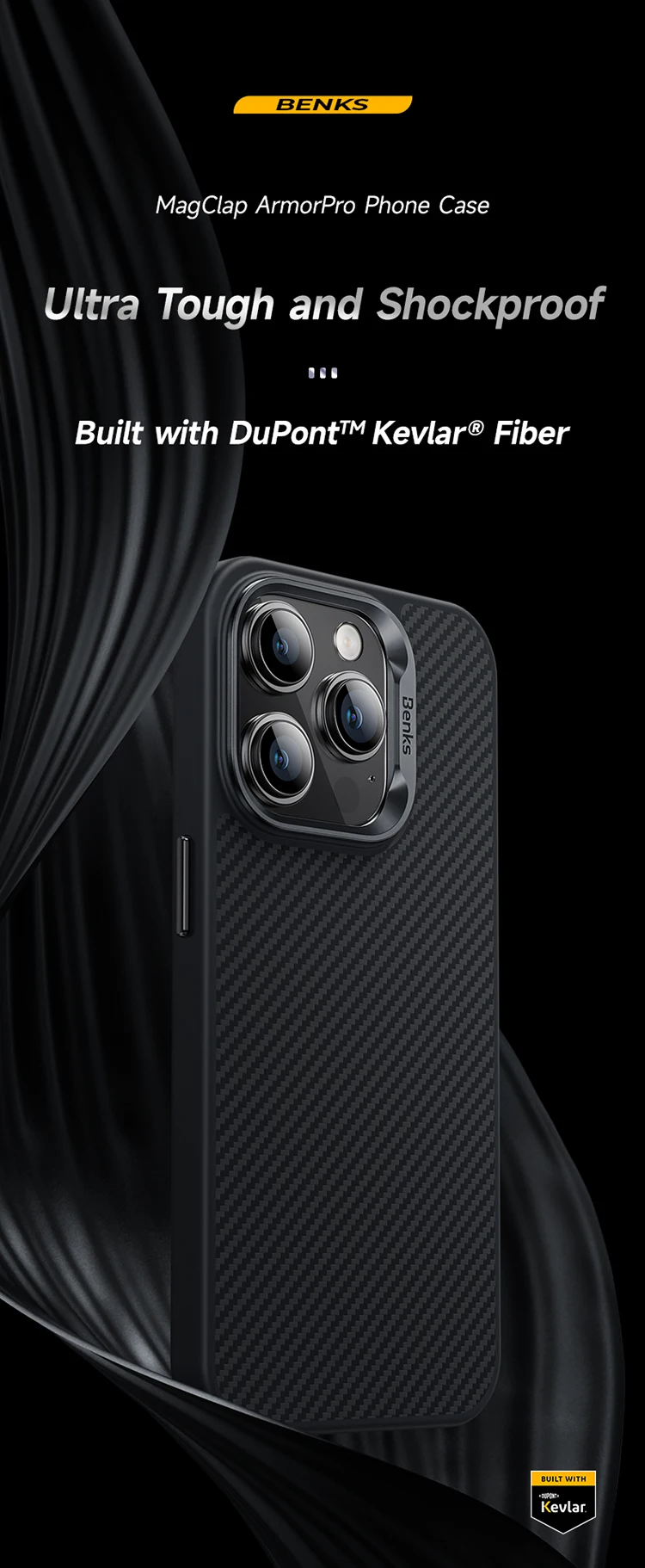 600D 듀폰으로 제작™Kevlar® 섬유, Banks ArmorPro 케이스는 iPhone에 대한 강력한 보호 기능과 최소한의 스타일을 제공합니다.