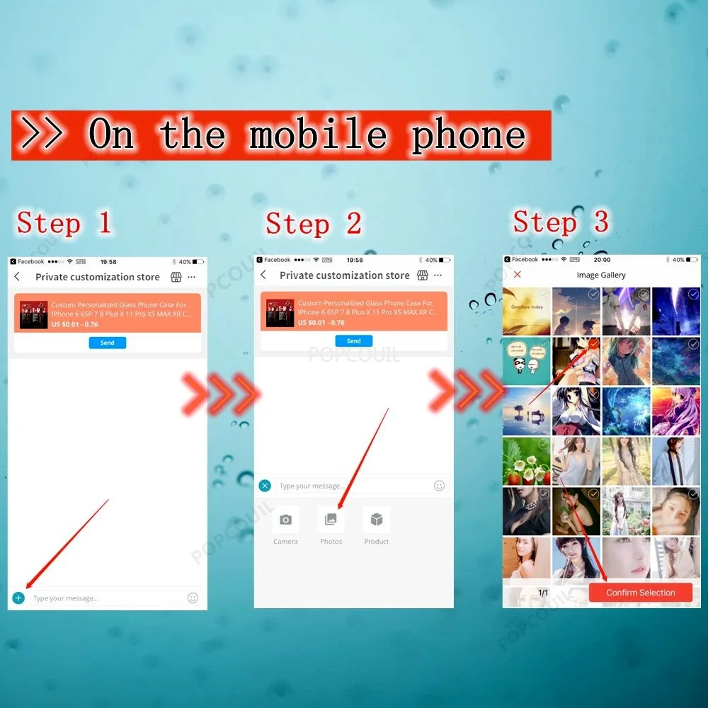 (카메라 구멍의 위치를 고려하여 사각형이 아닌 사진을 선택하십시오. 고품질 사진은 케이스에 고품질 결과를 제공합니다. 스크린 샷을 사용하지 마십시오.)