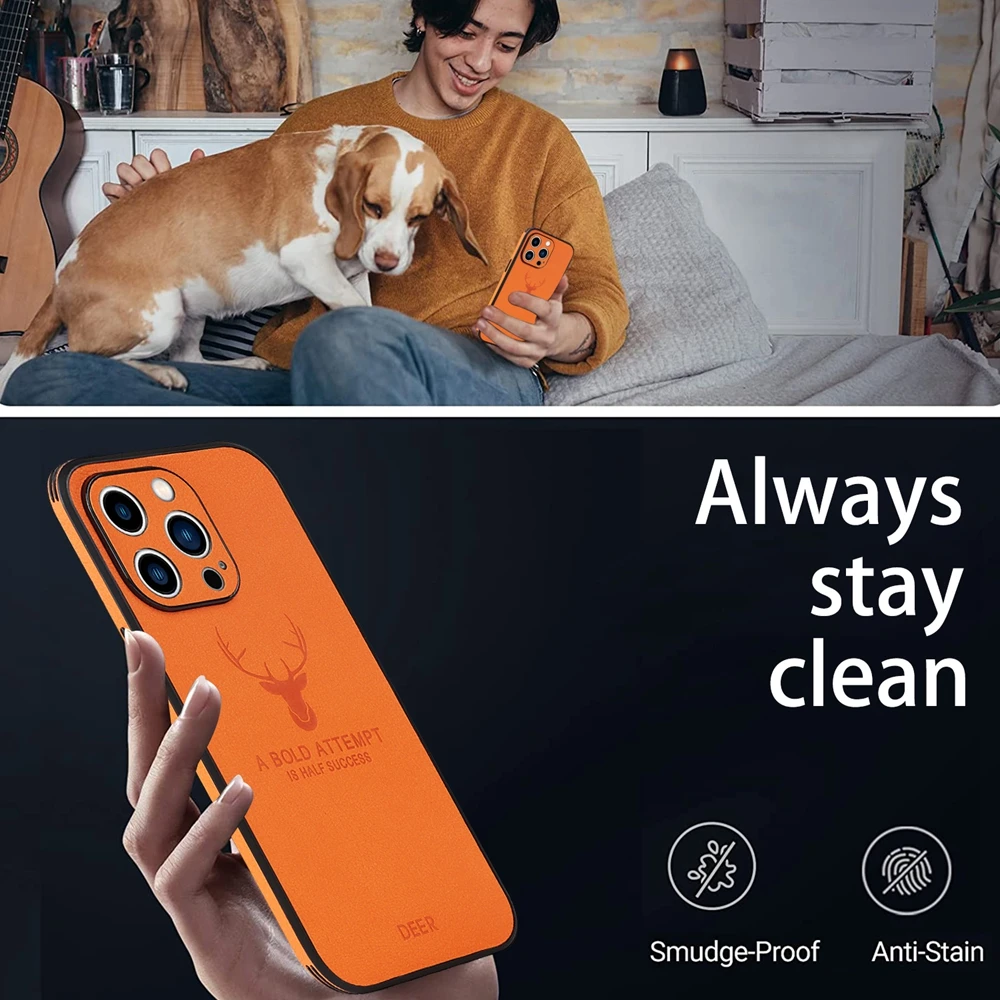 레트로 PU 가죽 케이스 아이폰 14 15 플러스 13 11 12 프로 맥스 XR X XS 7 8 사슴 패턴 소프트 비즈니스
