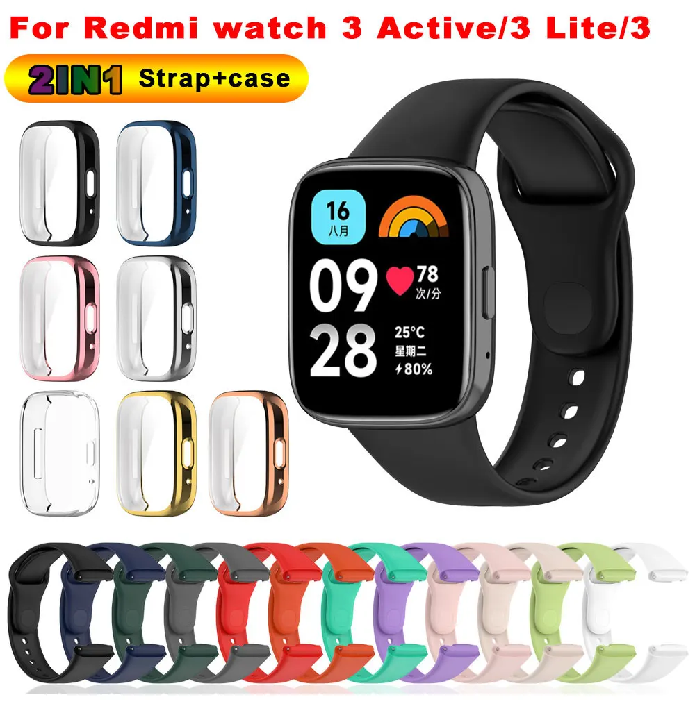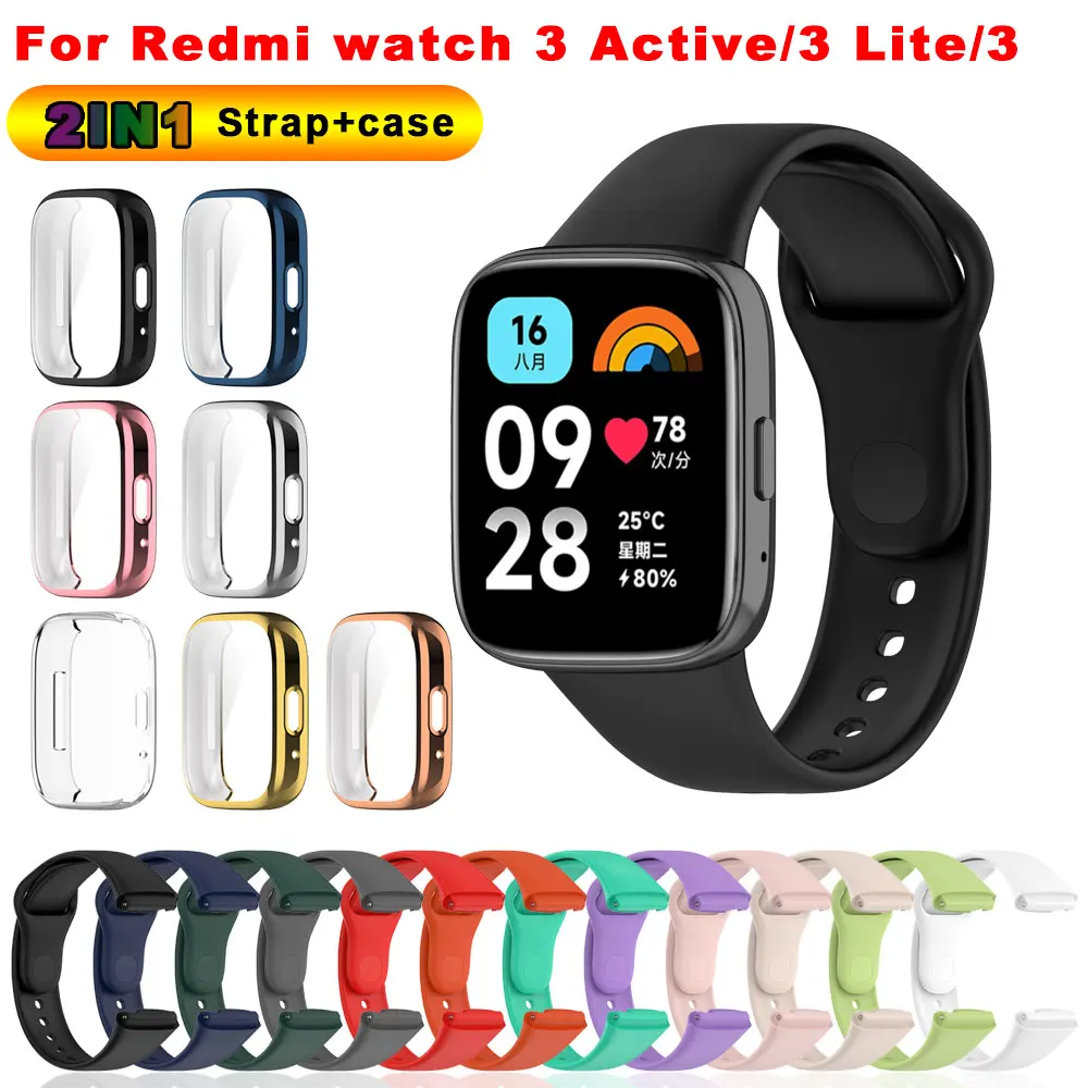 Redmi Watch 3 용 시계 밴드 + 케이스 Redmi Watch 3 lite Correa 팔찌 케이스 커버 용 활성 스트랩 교체 실리콘 스트랩