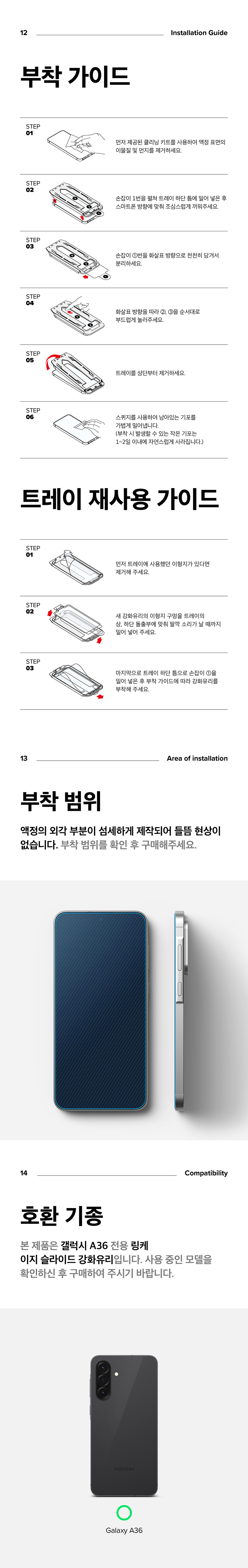 갤럭시A36 액정 보호 필름 링케 이지슬라이드 강화유리 풀커버 2매