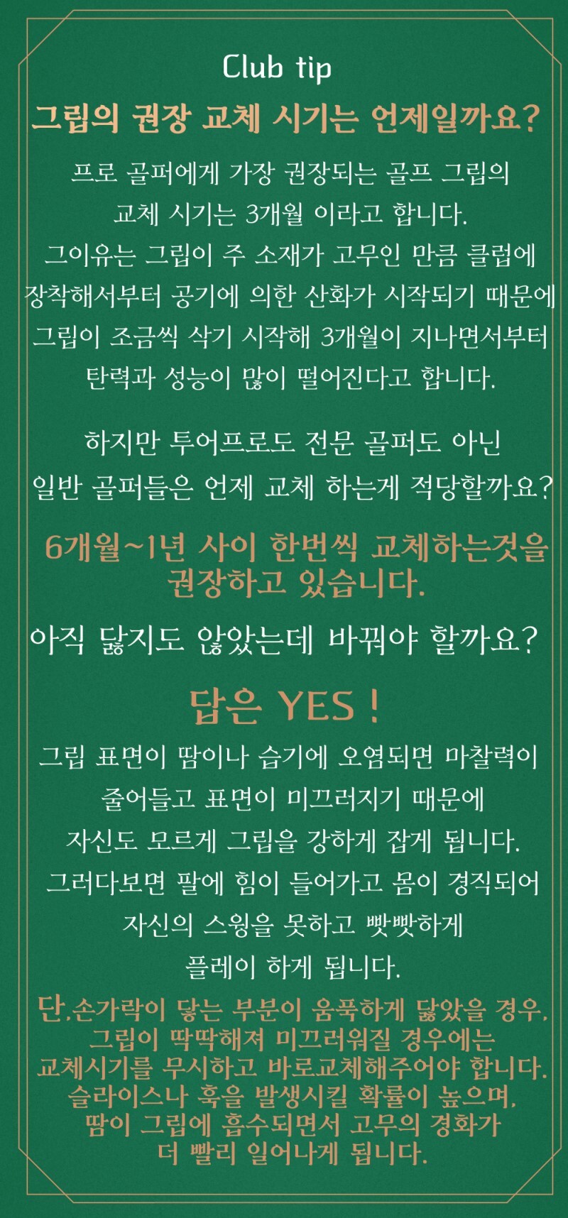 손과 그립의 밀착력을 높여 클럽과의 일체성을 느낄수 있습니다.