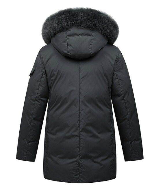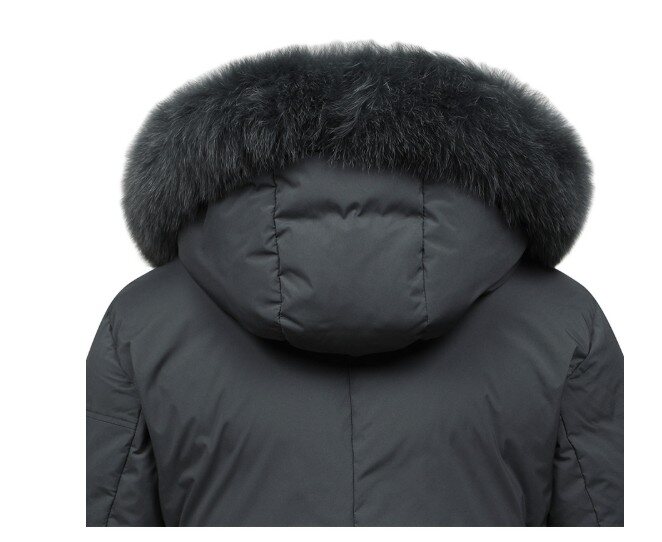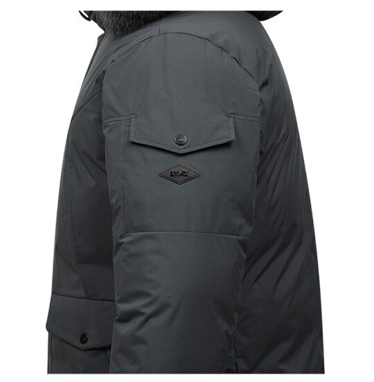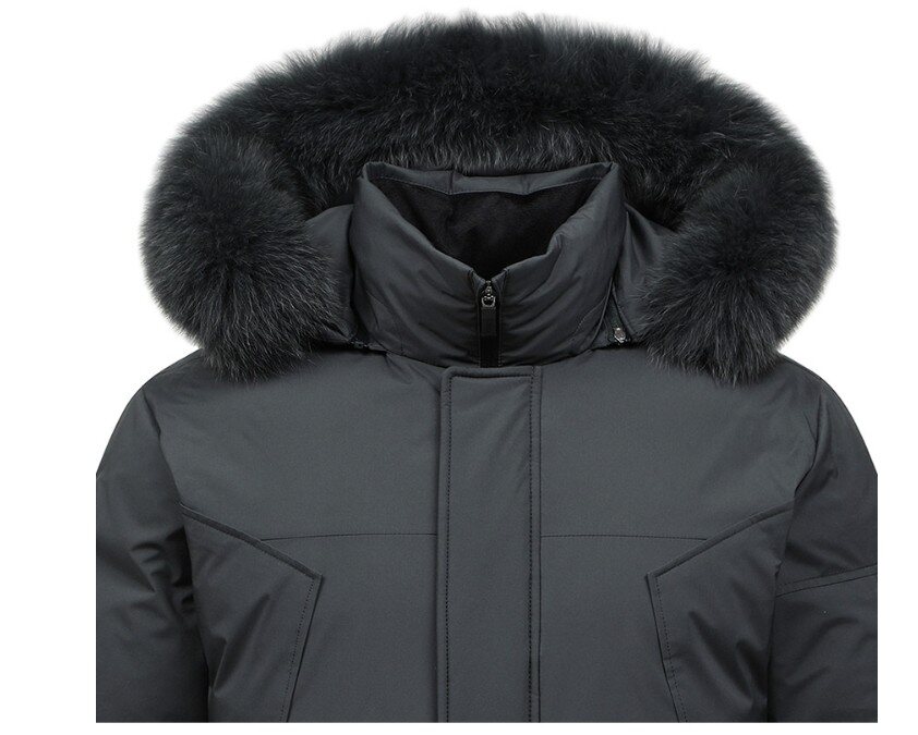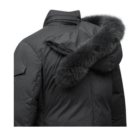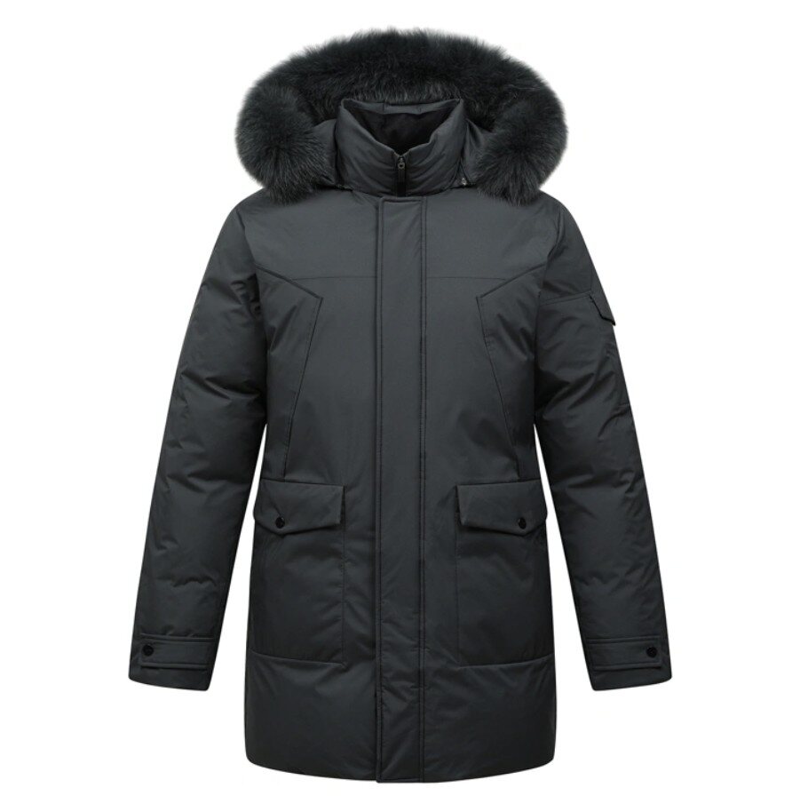 최소한 절개와 논퀼팅 기법을 적용한 고급스러운 무드의 폭스 긴기장 덕 다운 점퍼 폭스 탈부착 후드와 앞 중심에 이중 여밈, 소매단 2겹 마무리로 보온성을 극대화한 방한 아이템