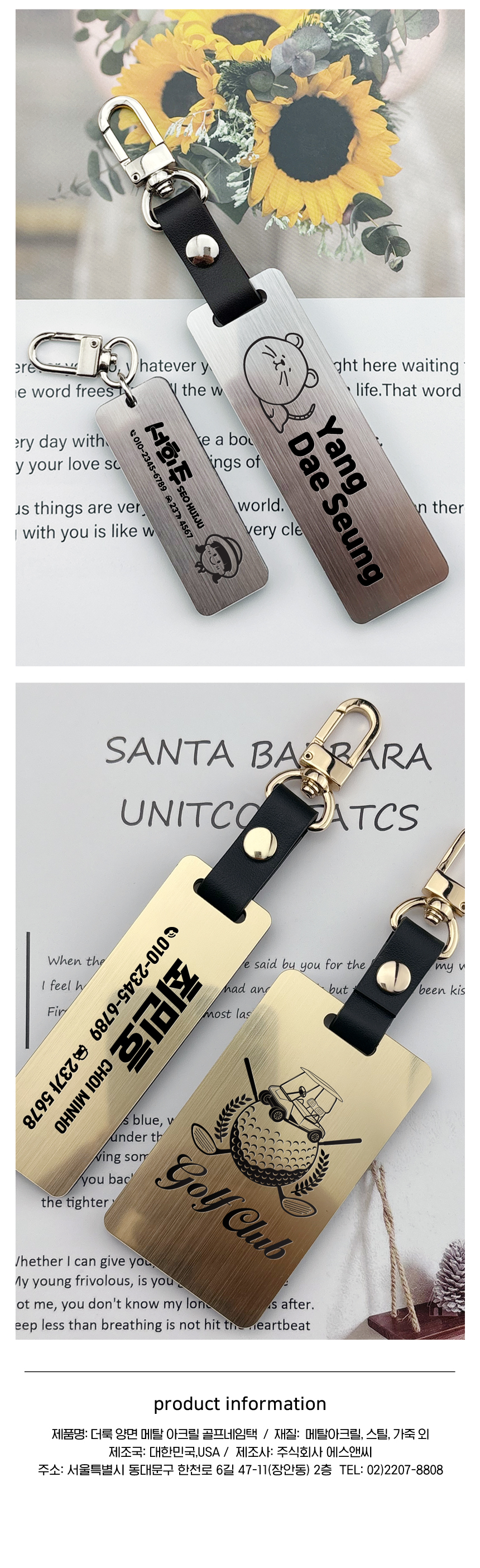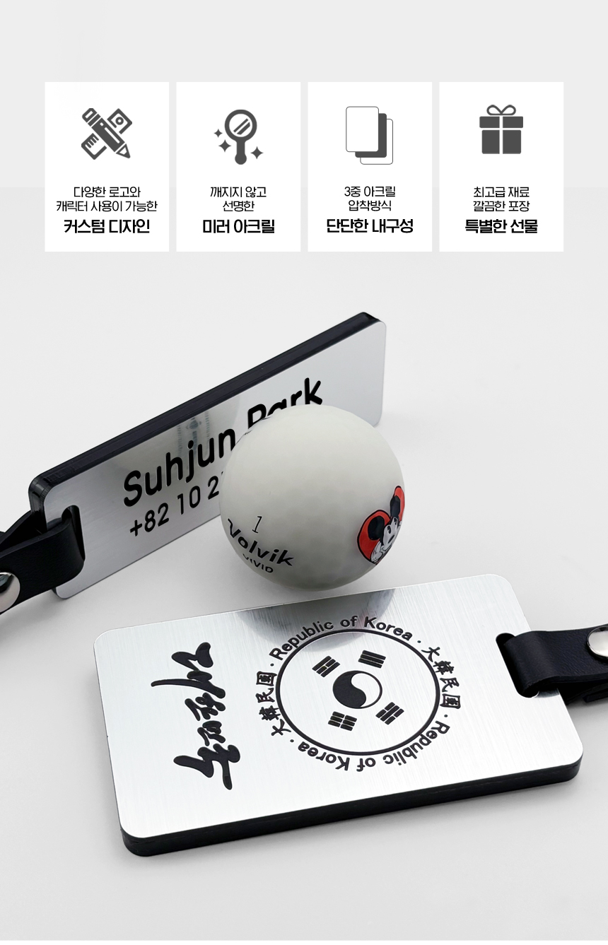 주문제작 골프네임택 이름표 캐디백 보스턴백 캐리어 여행가방 각인전용 메탈아크릴 와이드(대형) 실버