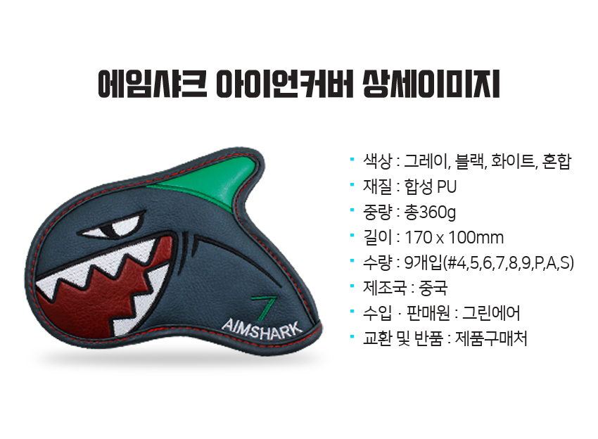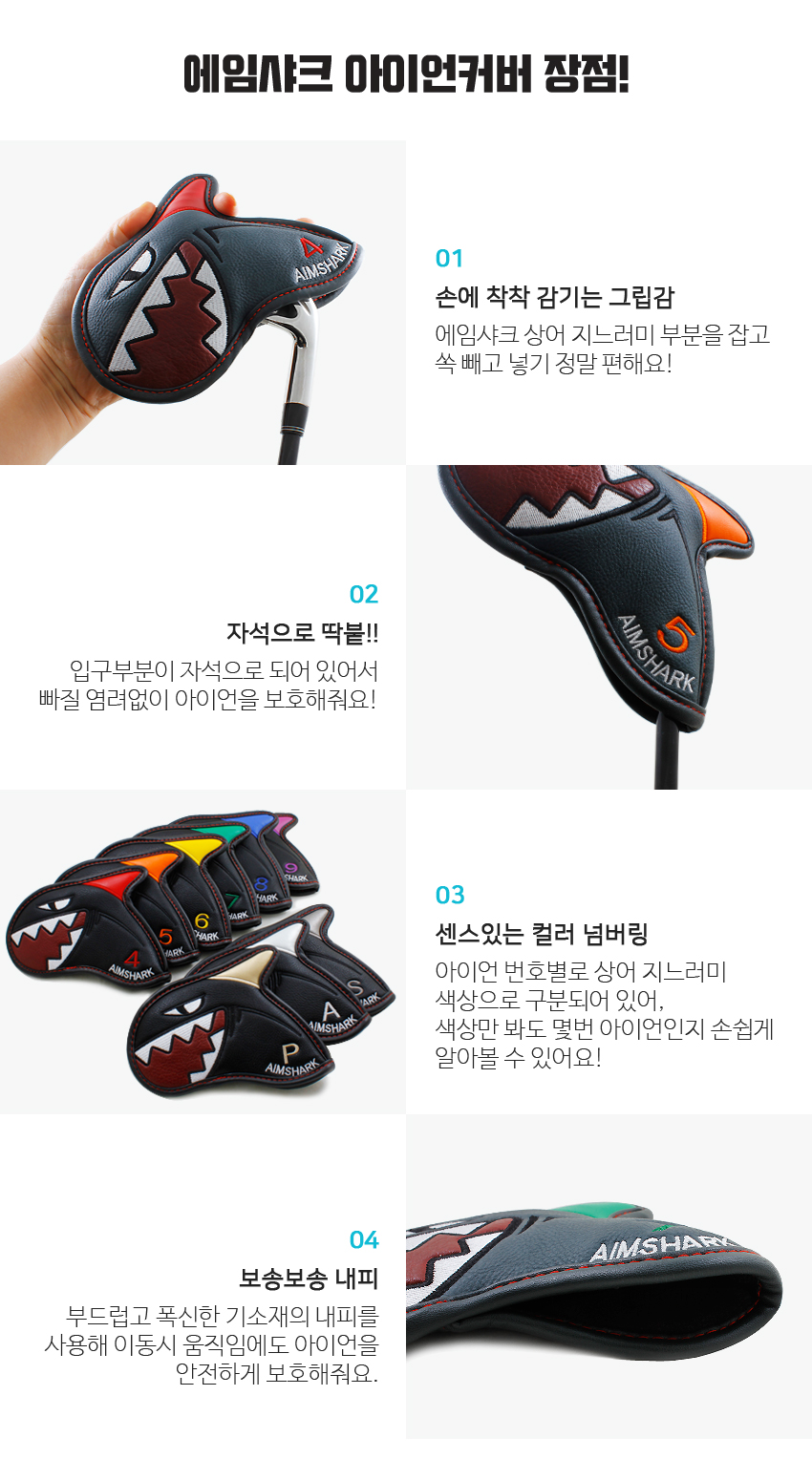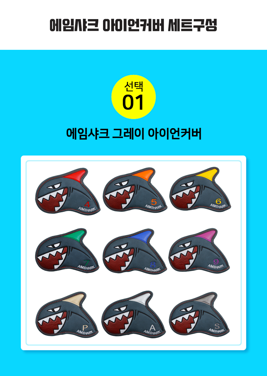 에임샤크 상어 골프 아이언 헤드 커버 세트