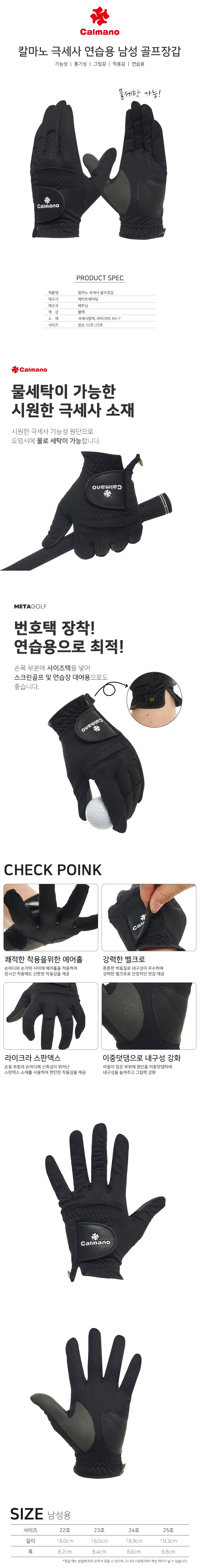 칼마노 극세사 남성 골프장갑 (왼손/오른손) 블랙색상